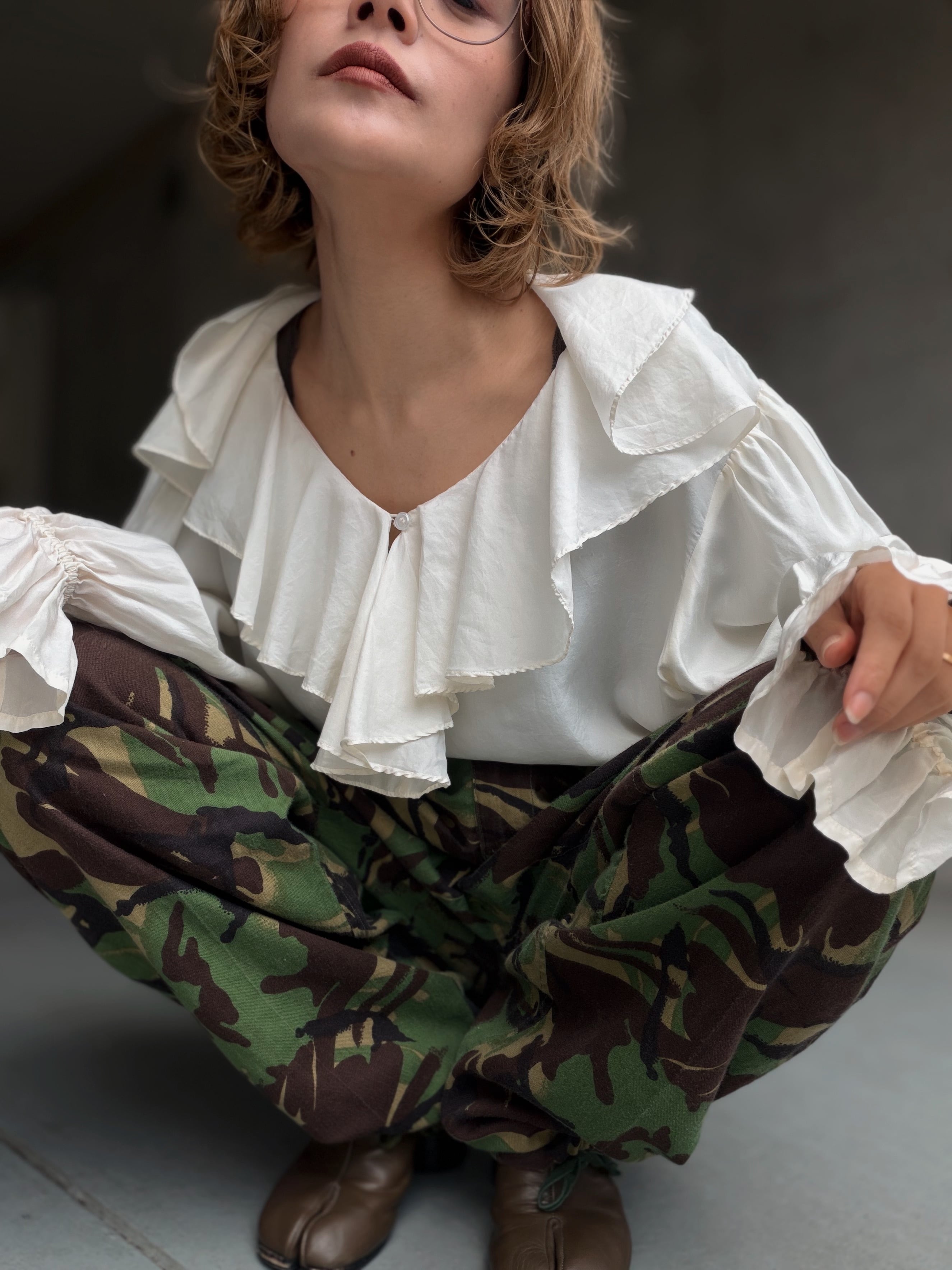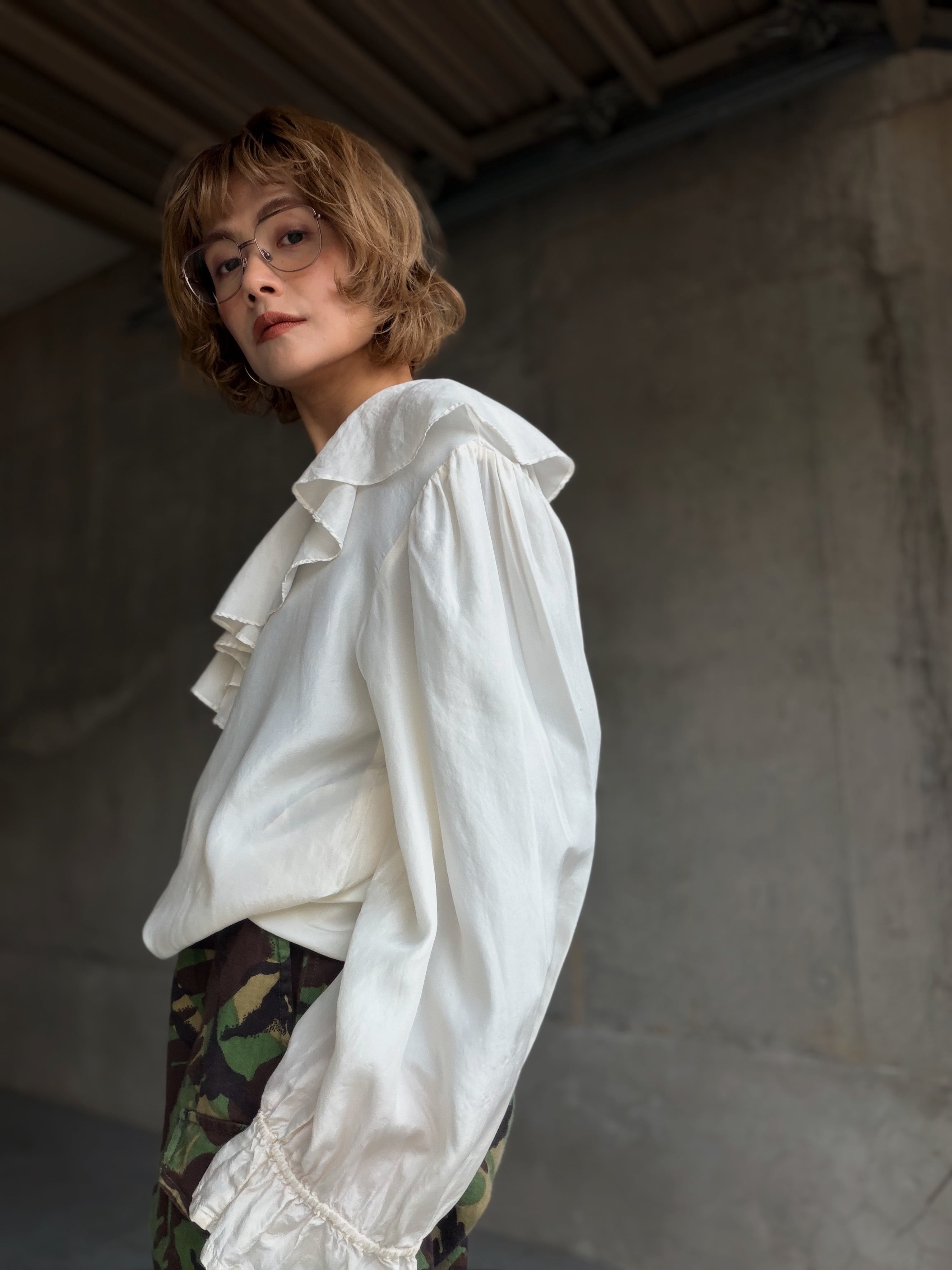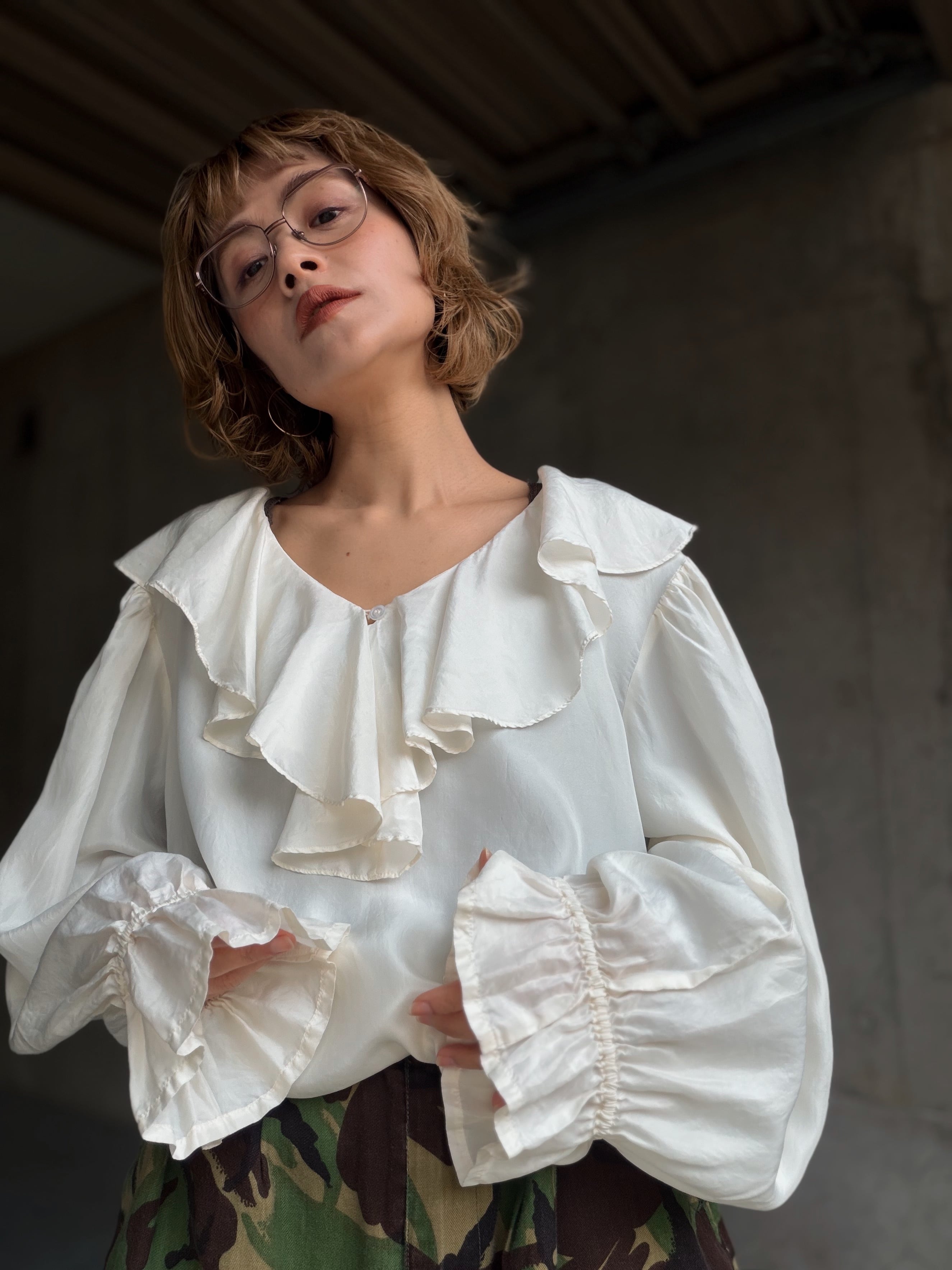 (SH1231)Silk fril blouse