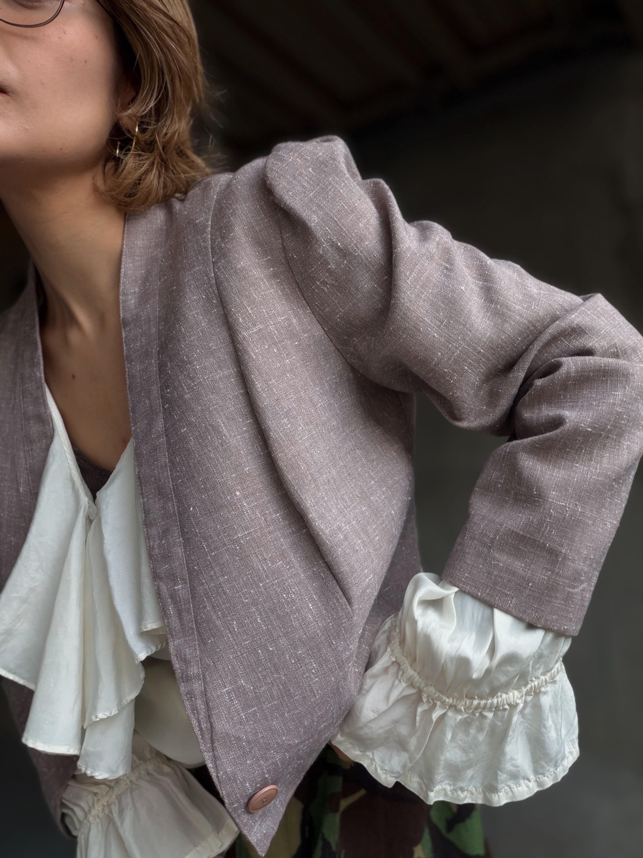 ネップ感のあるリネン混のような表情ある生地。
