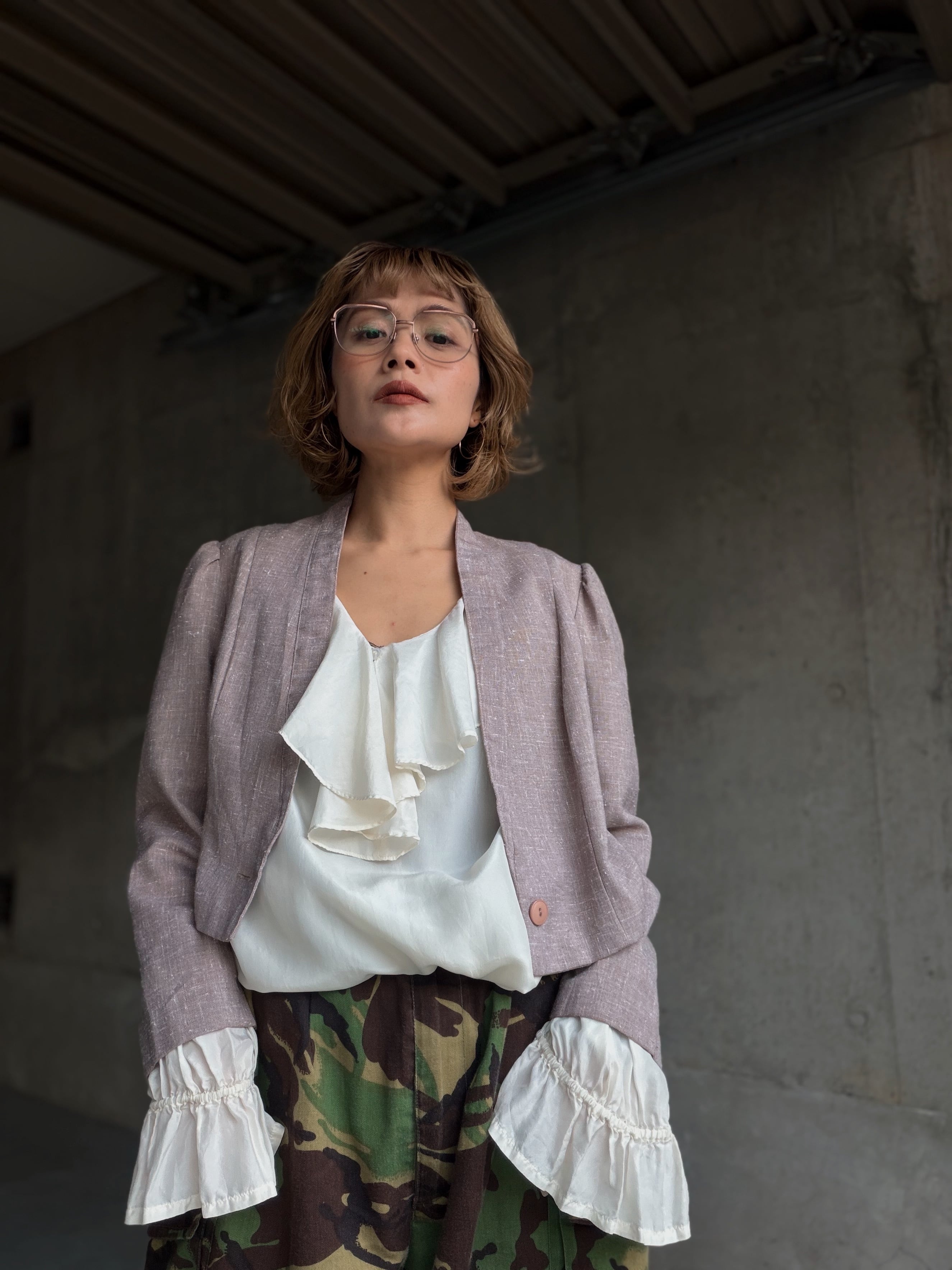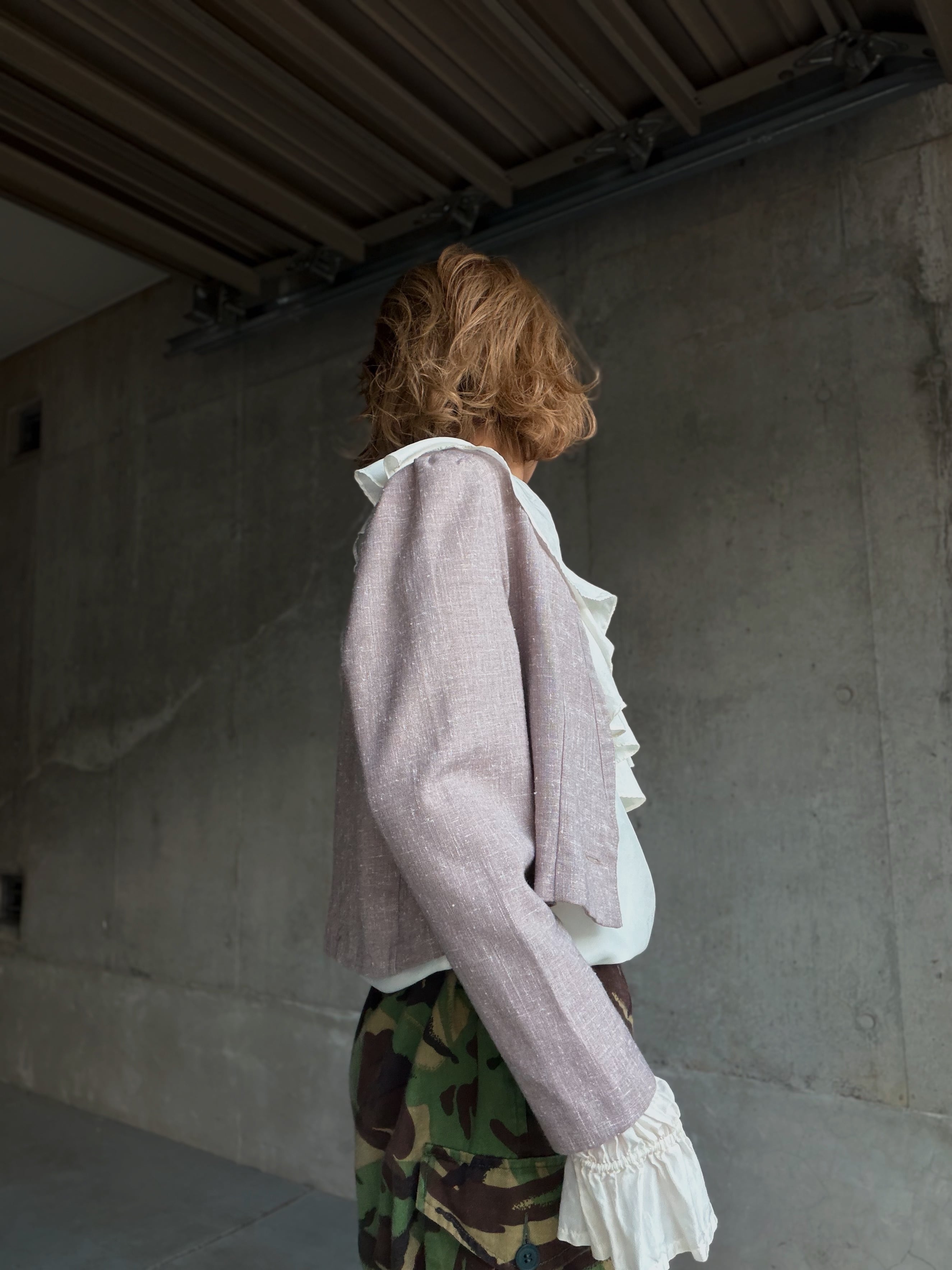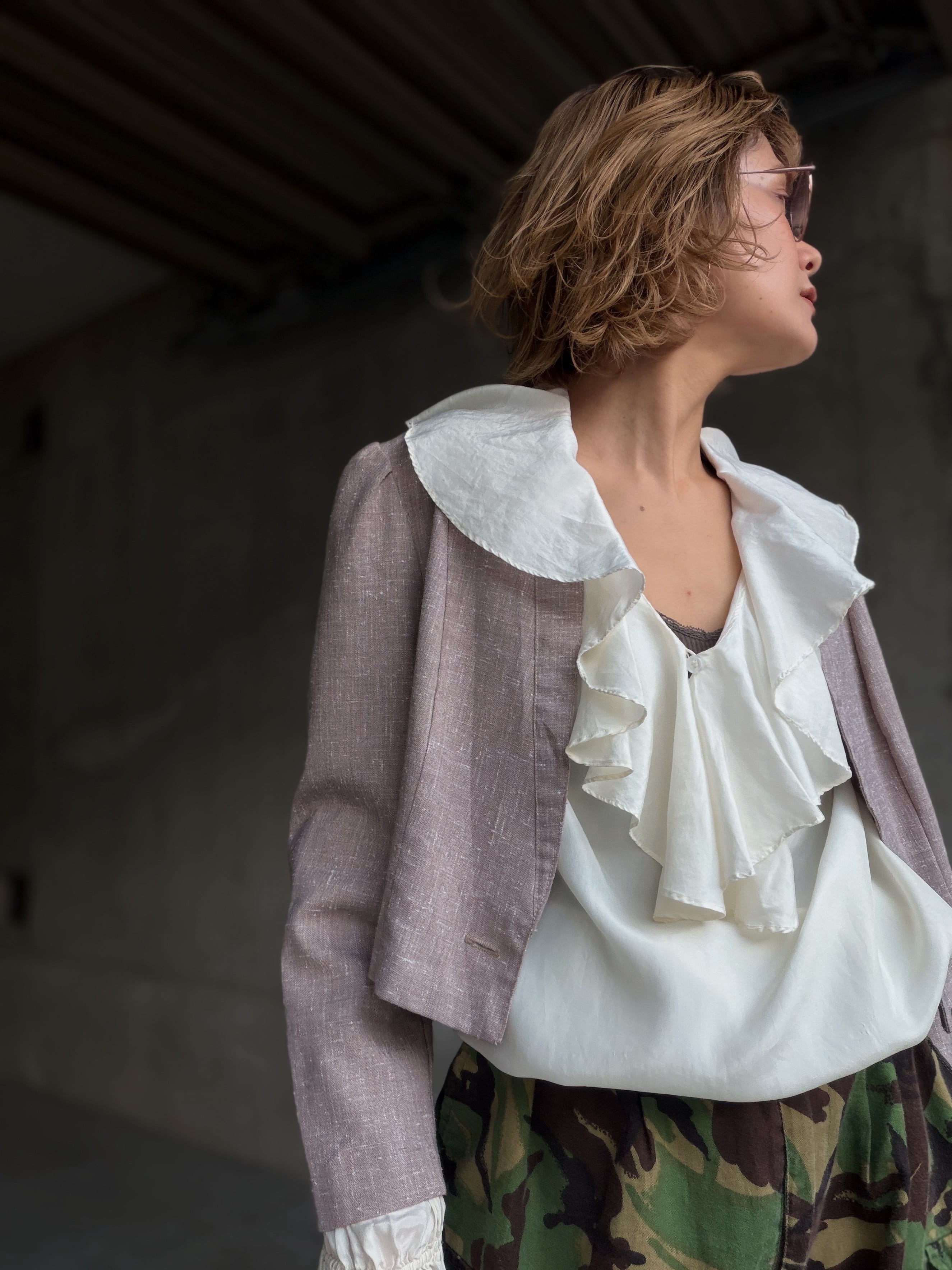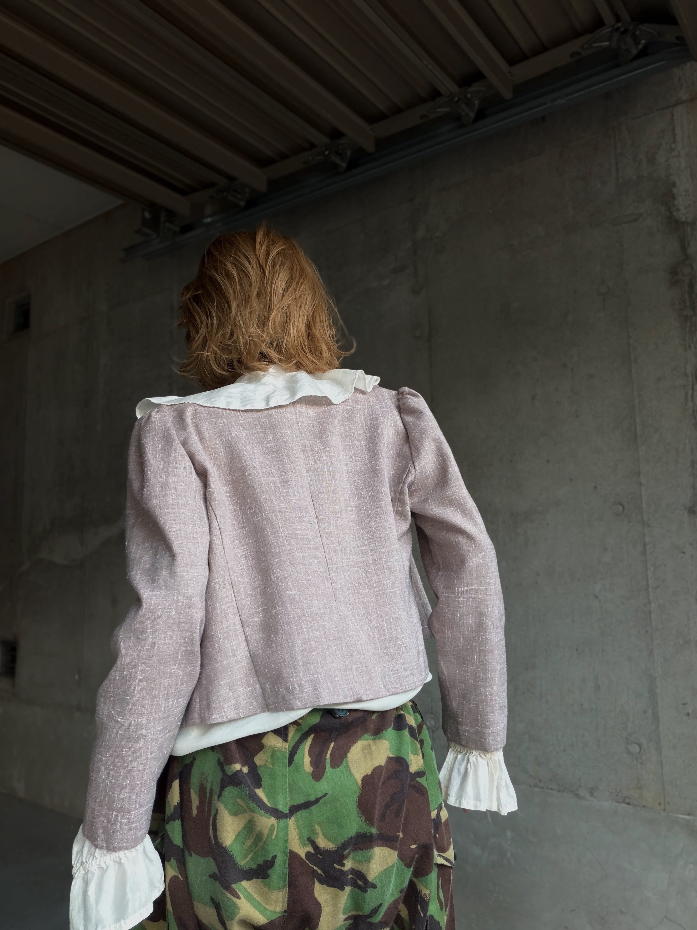 ノーカラーのコンパクトな丈感は80年代のアメリカの空気感を感じます。