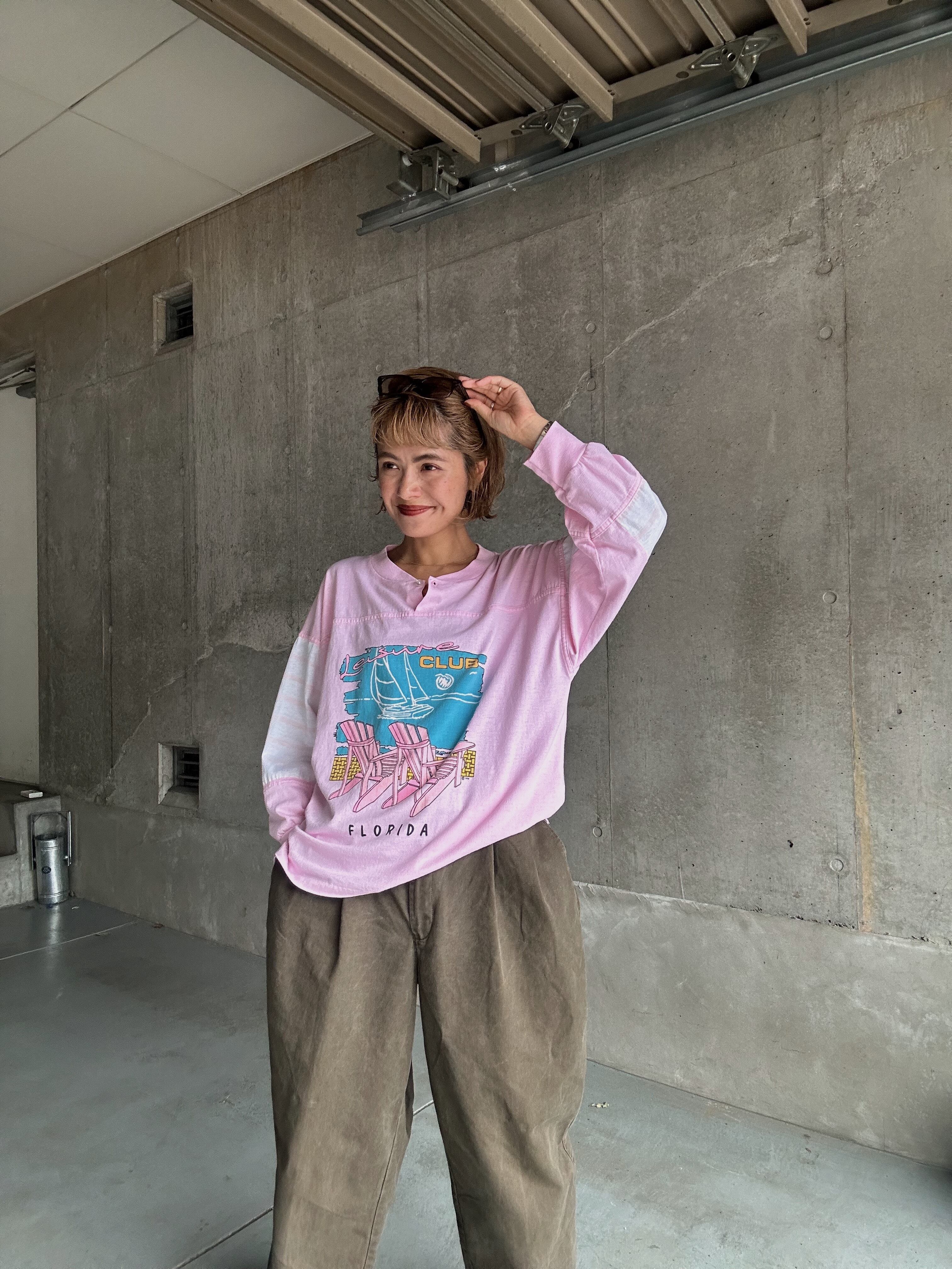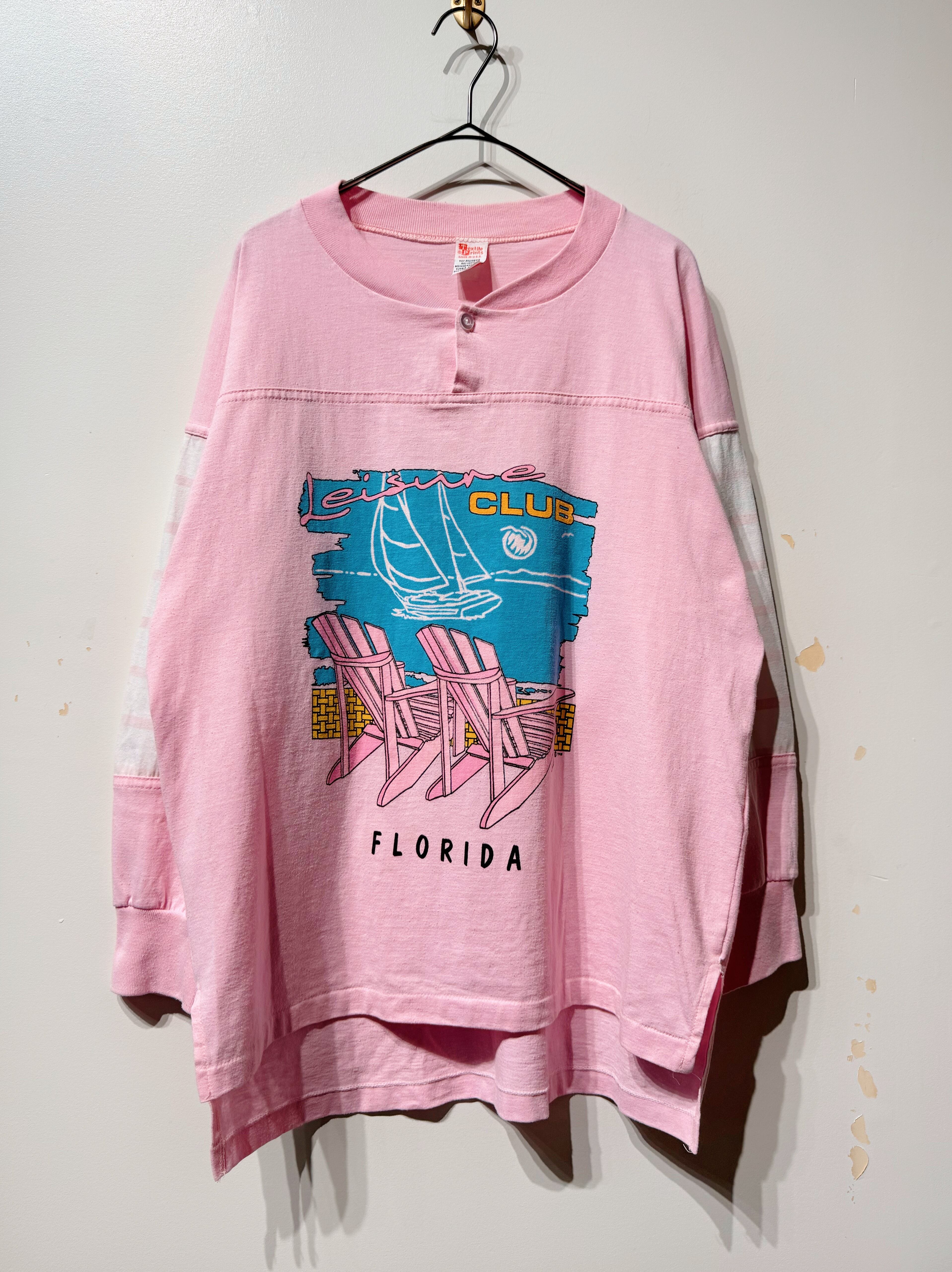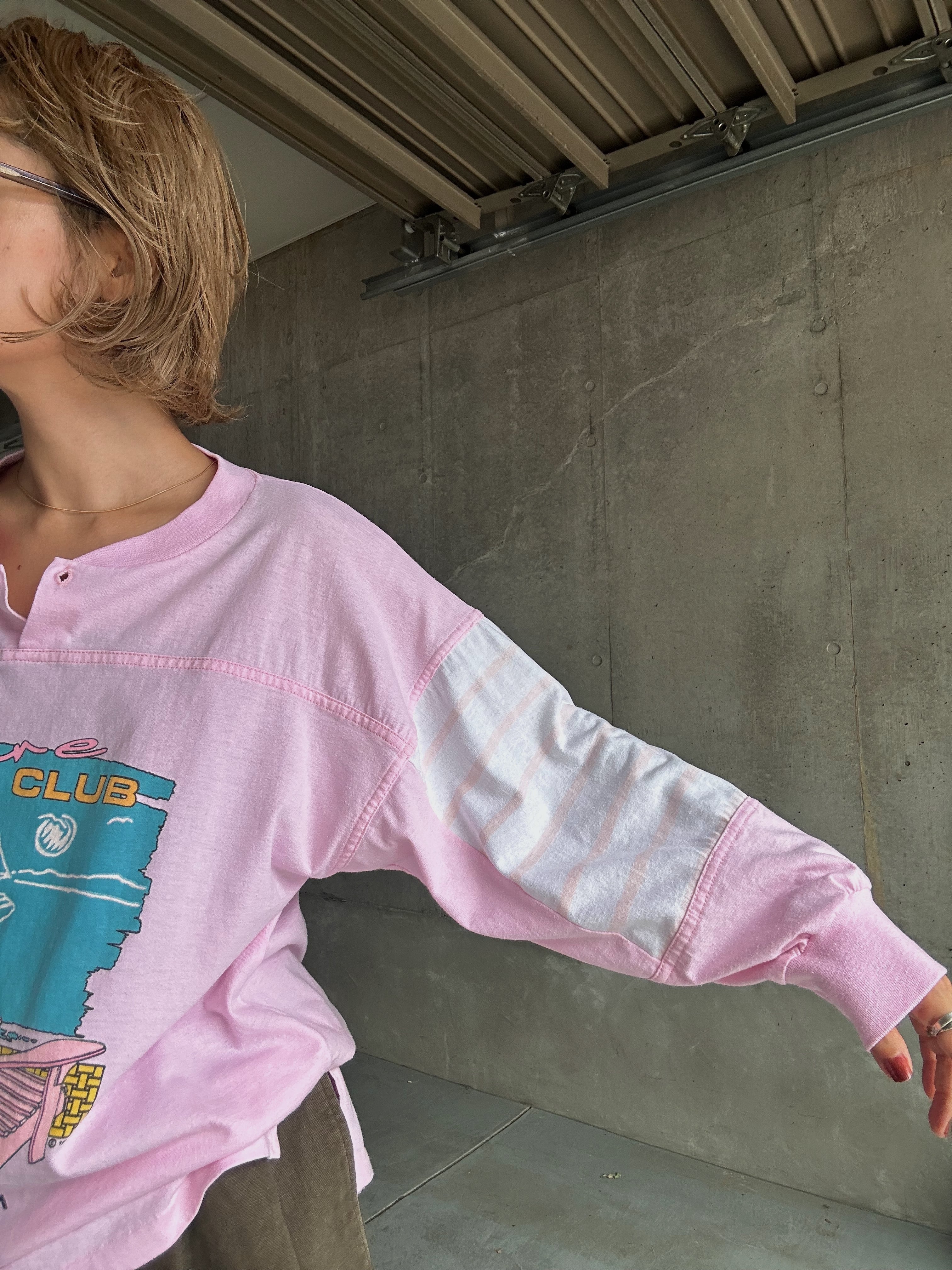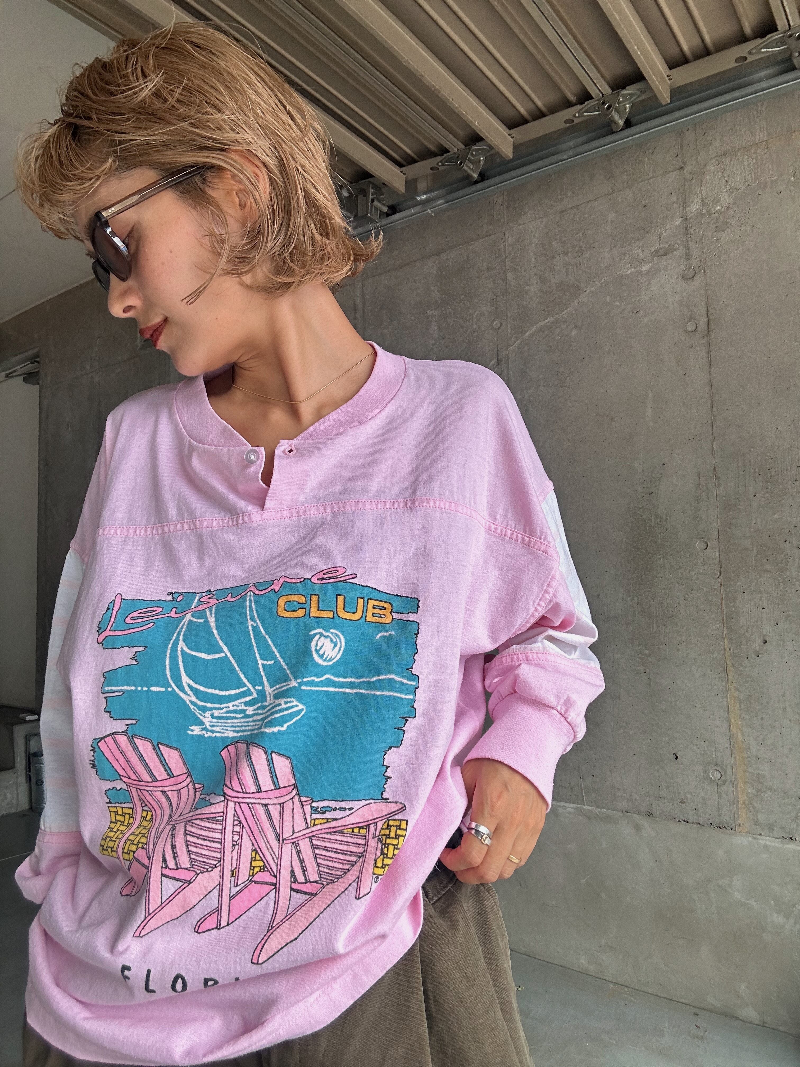 (CS2104)90‘s Henry neck printed long tee “Leisure CLUB“ made in USA