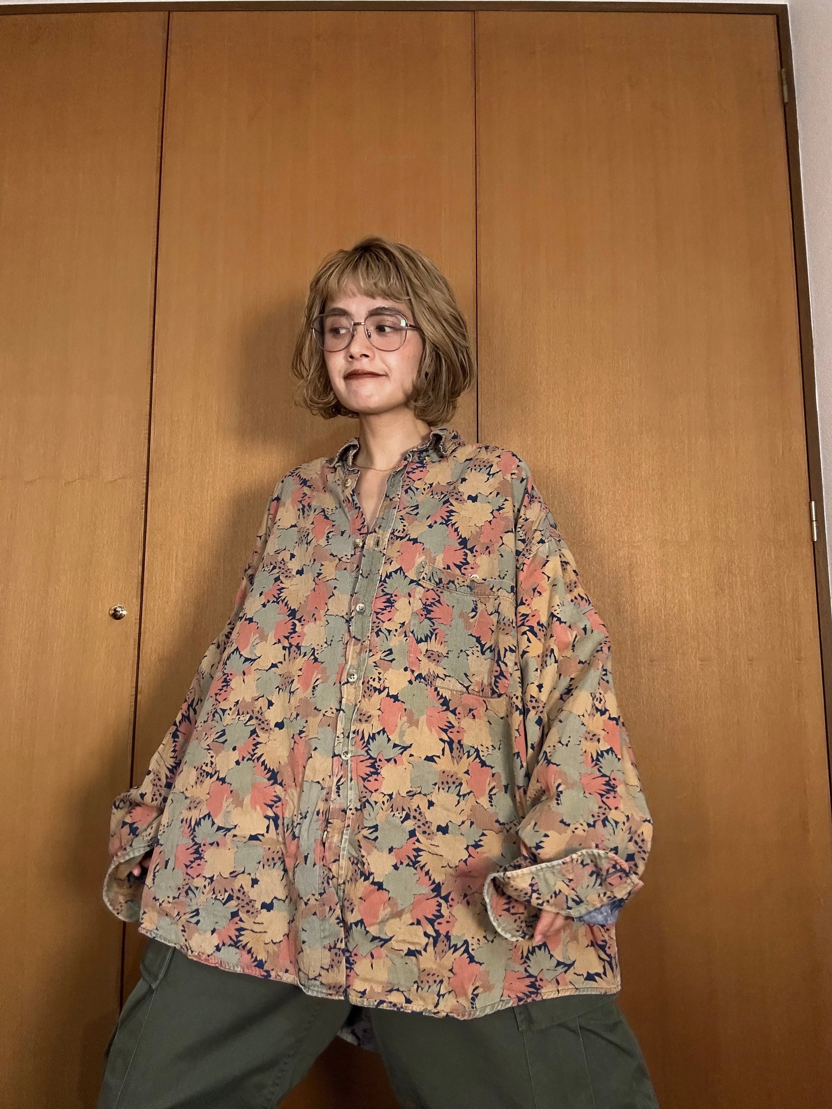 (SH1262)Flower pattern dolman sleeve BD shirt