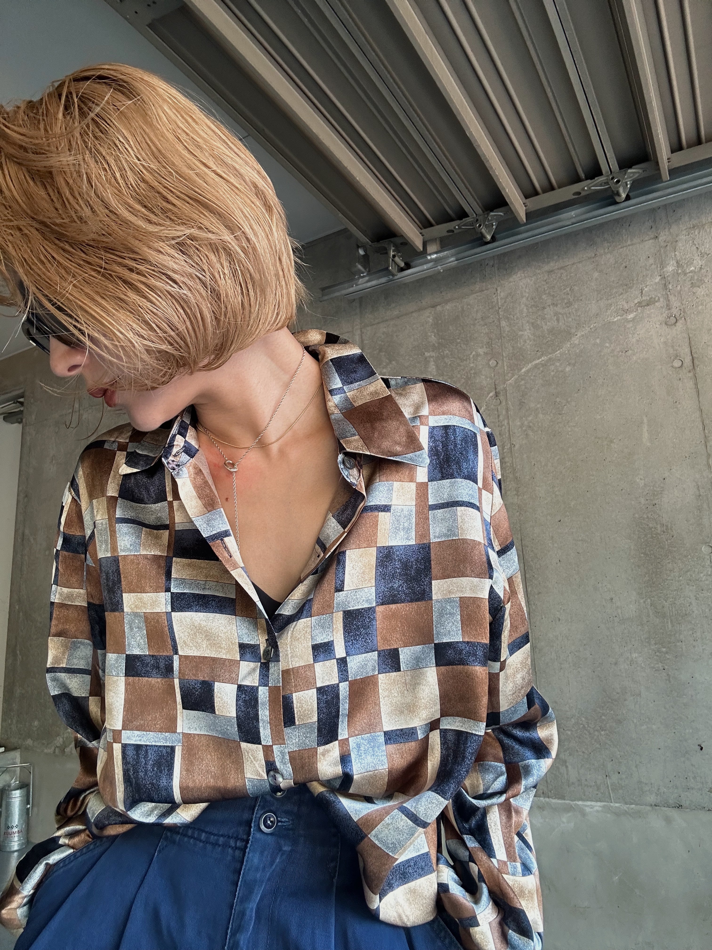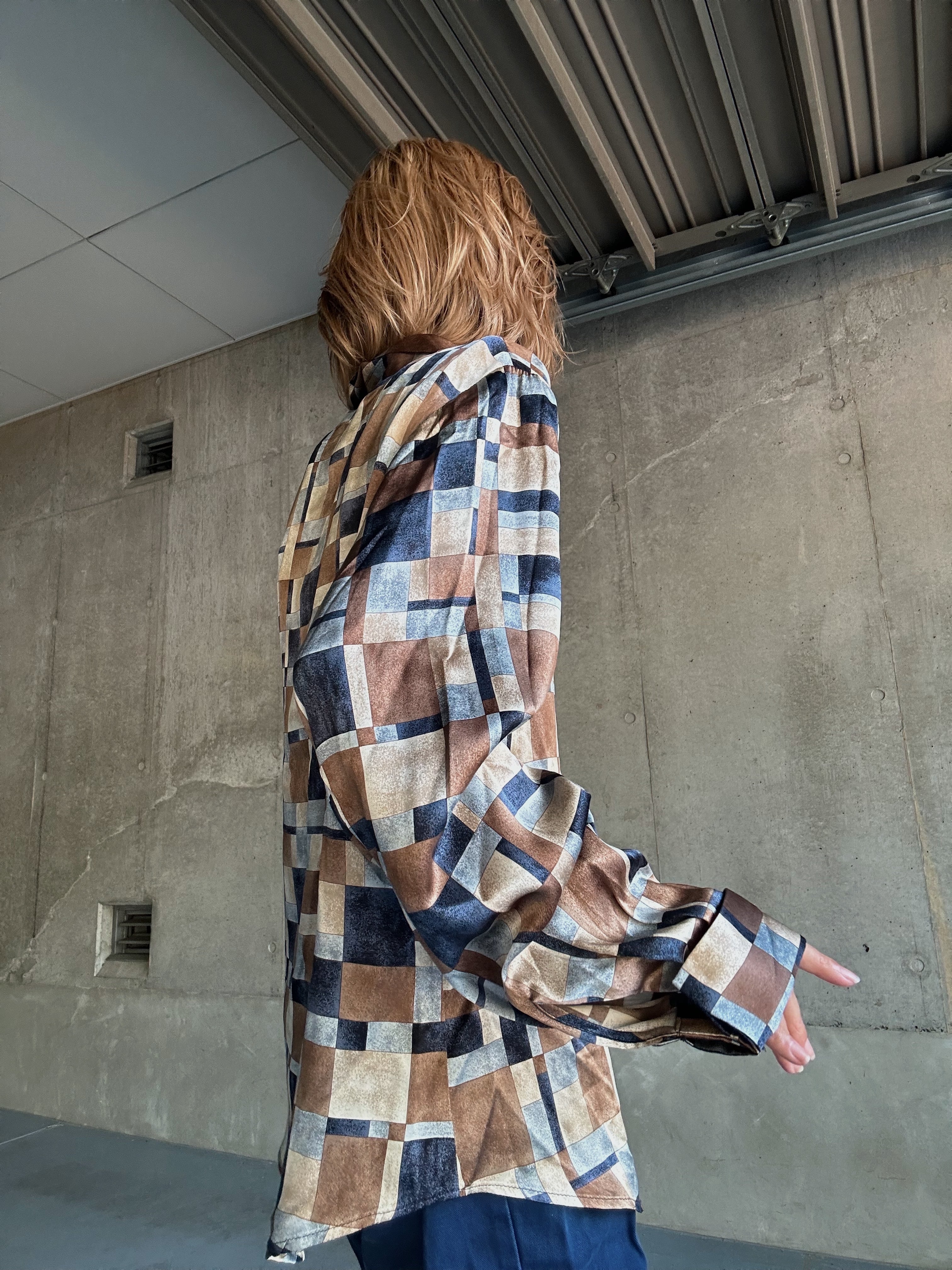 (SH1265)Geometric pattern silk shirt