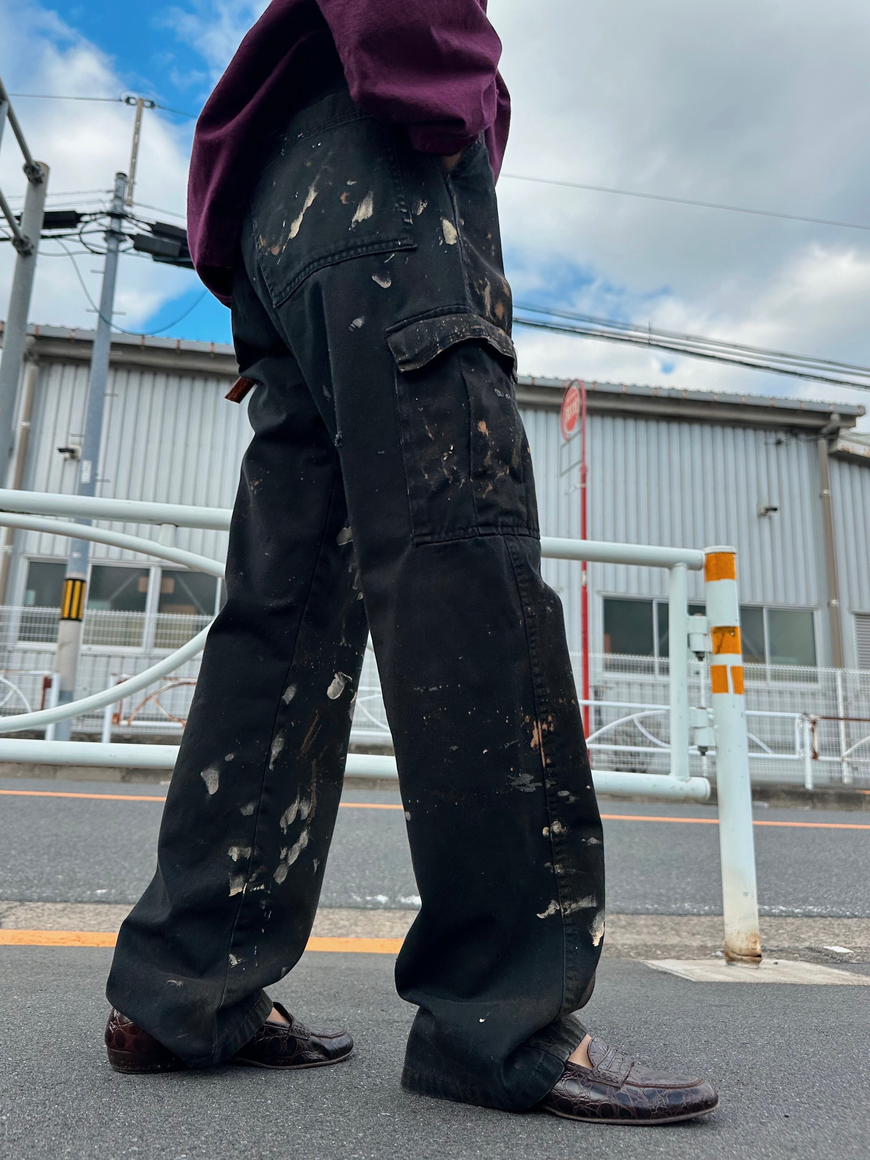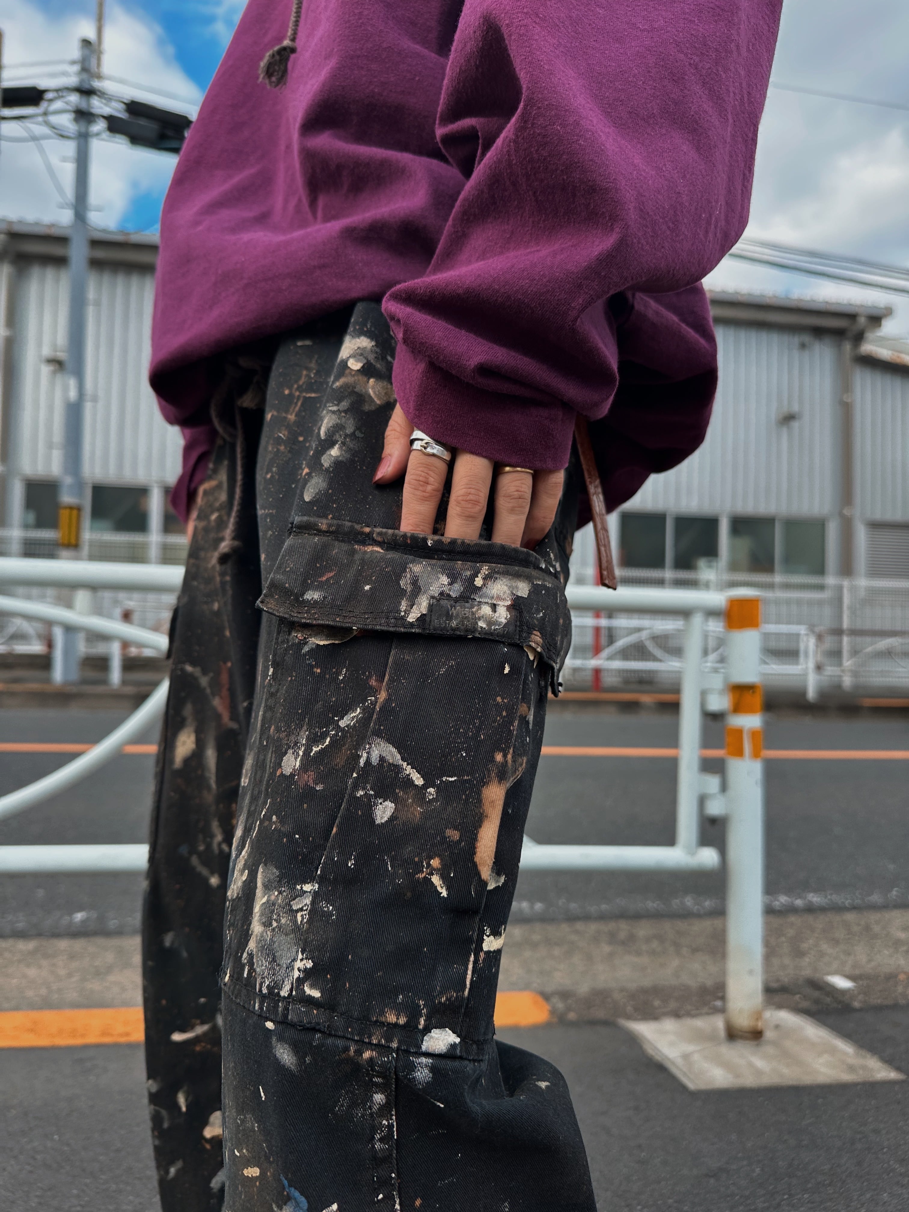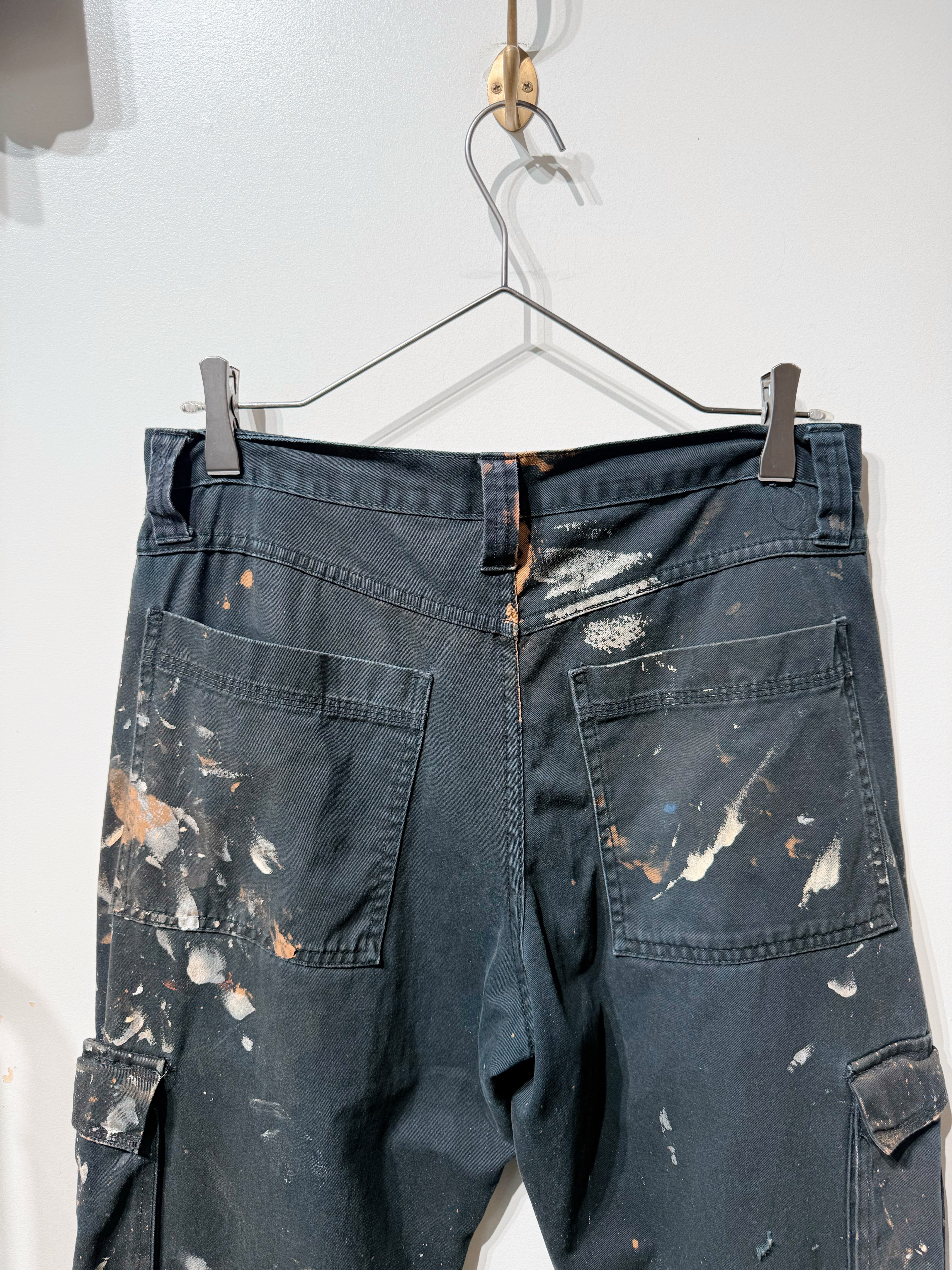 おそらくハンドメイドでペインティングが施されたベイカータイプのラングラーのカーゴパンツ。