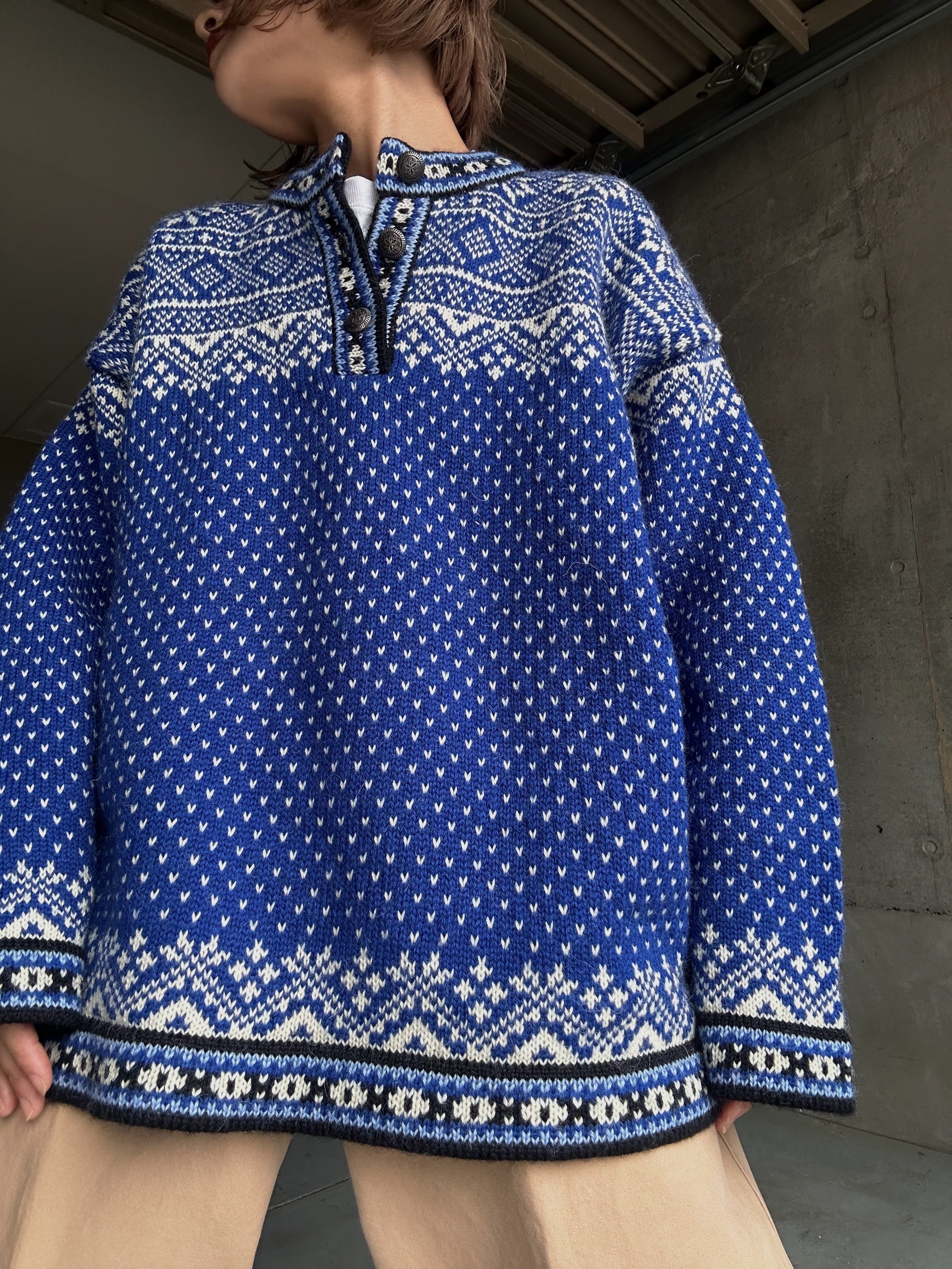 (KN550)L.L. Bean Nordic half button knit sweater made in Latvia