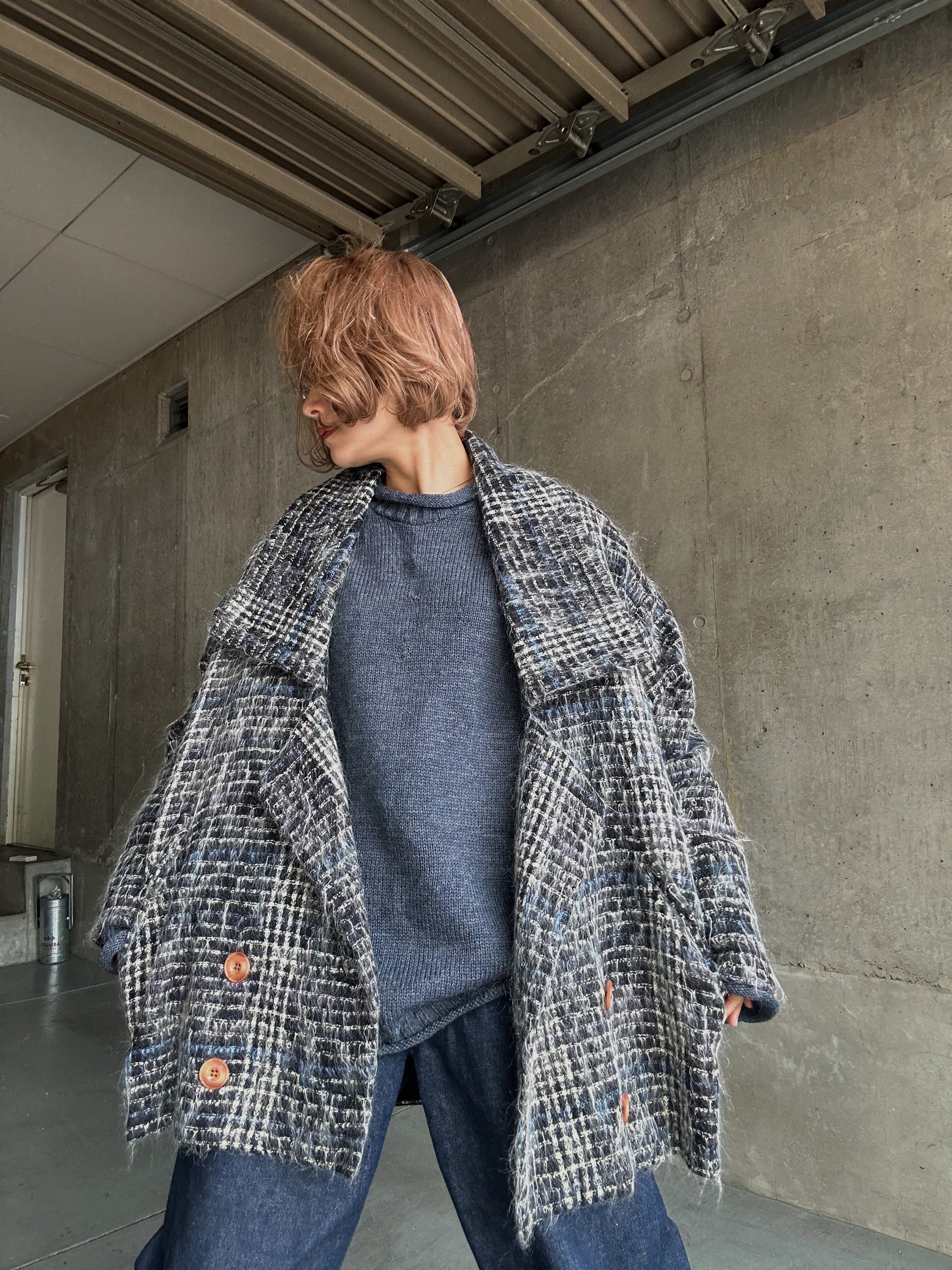 (OT1313)80‘s mohair check coat made in Canada