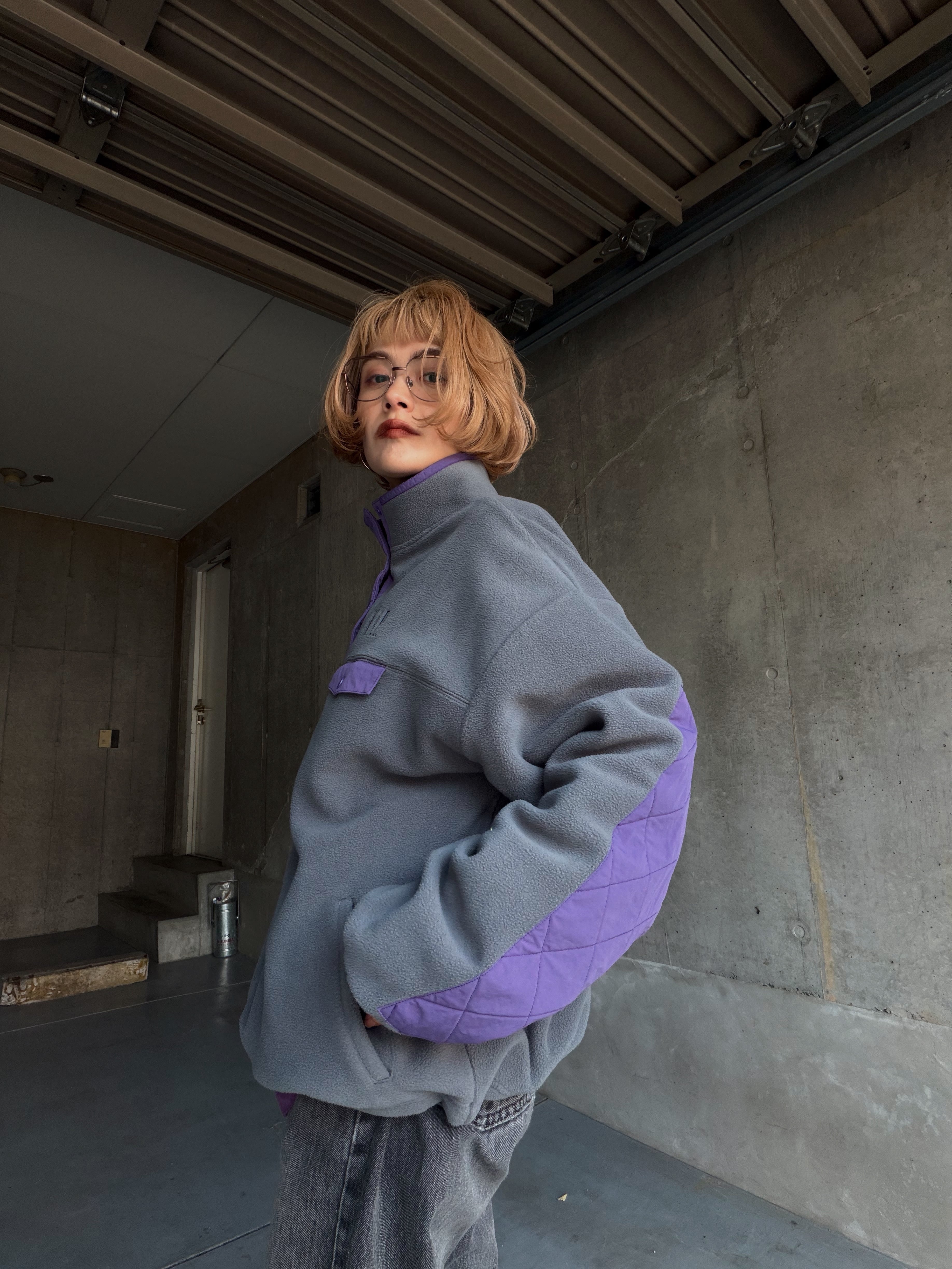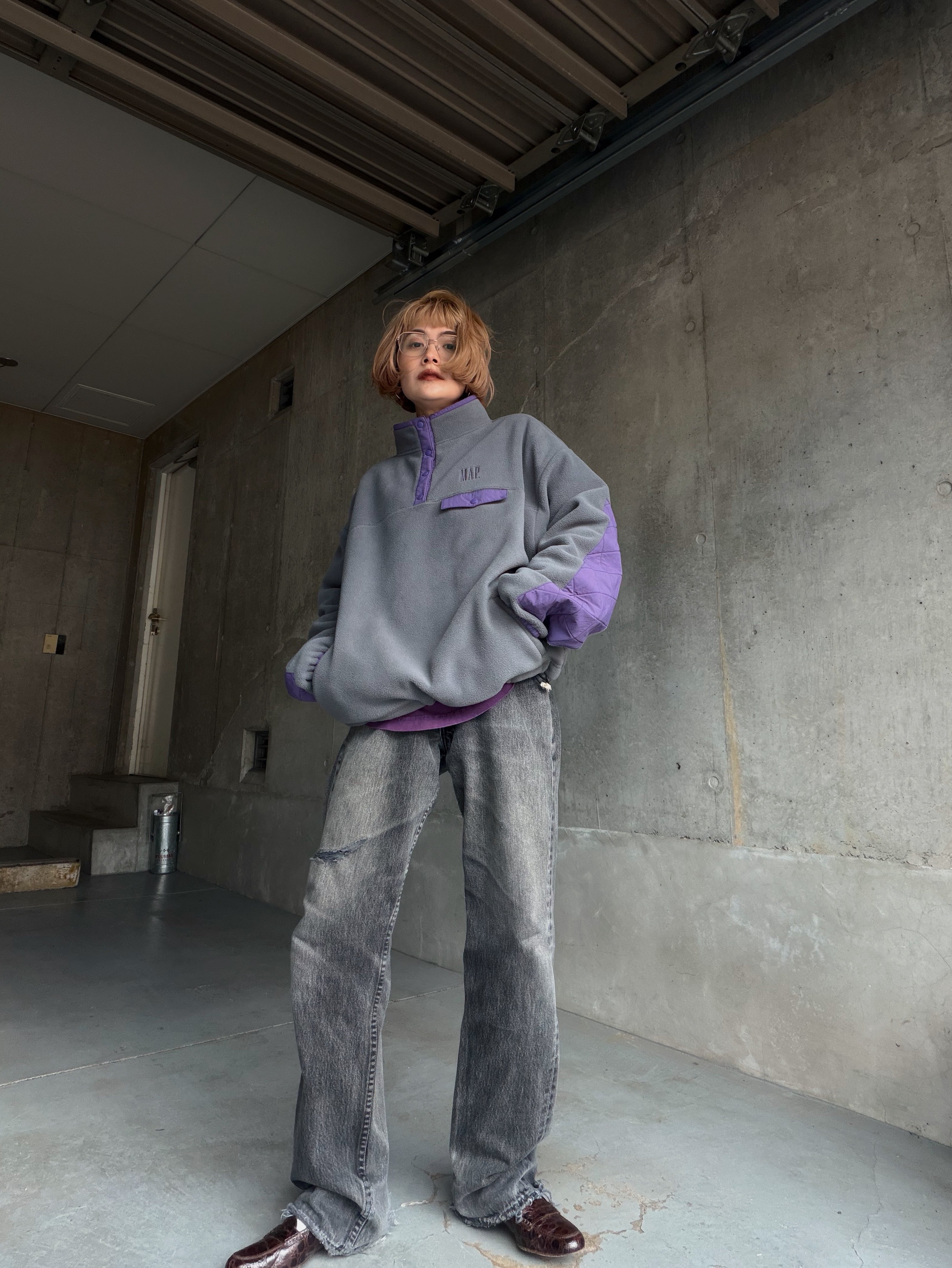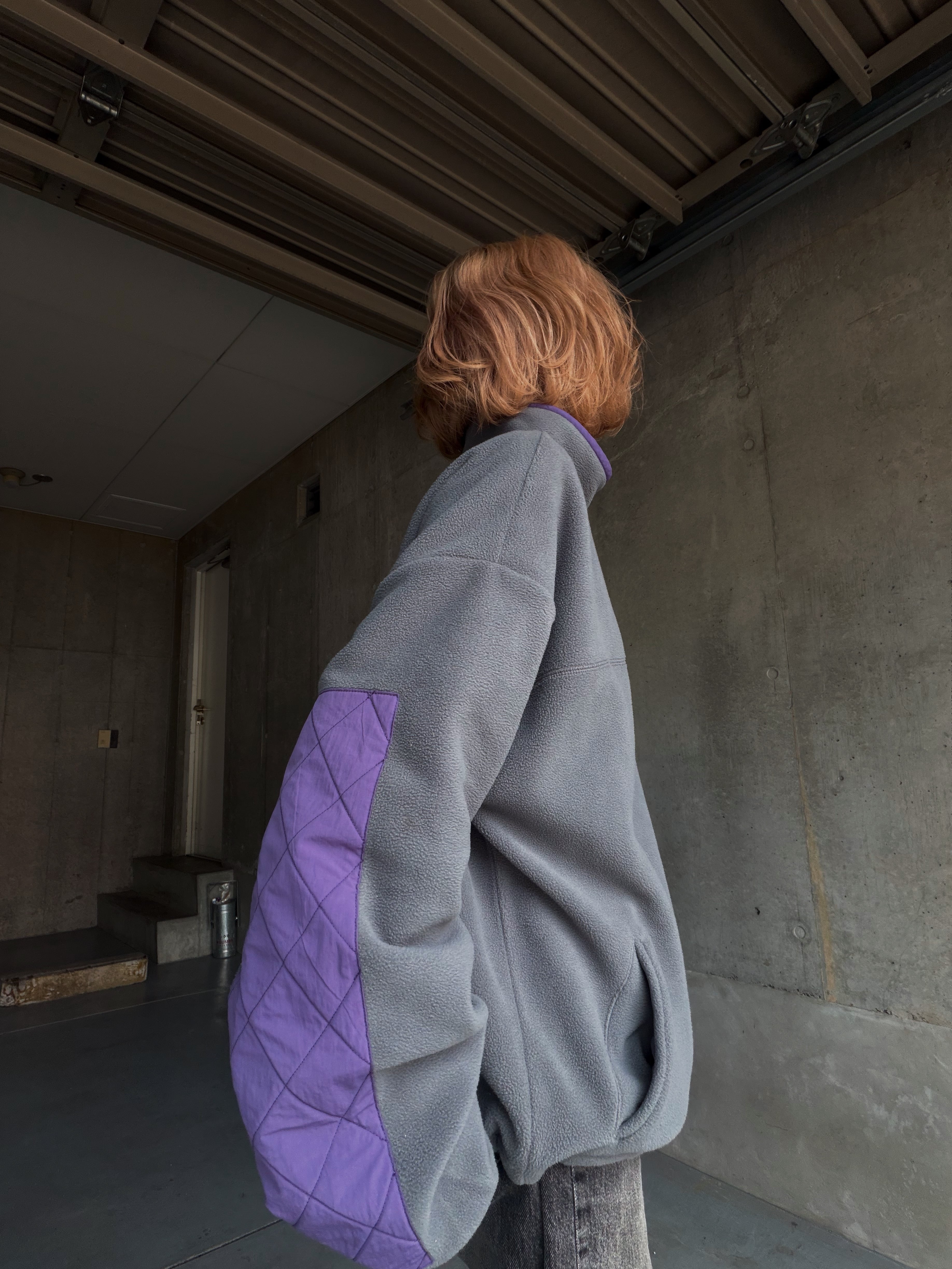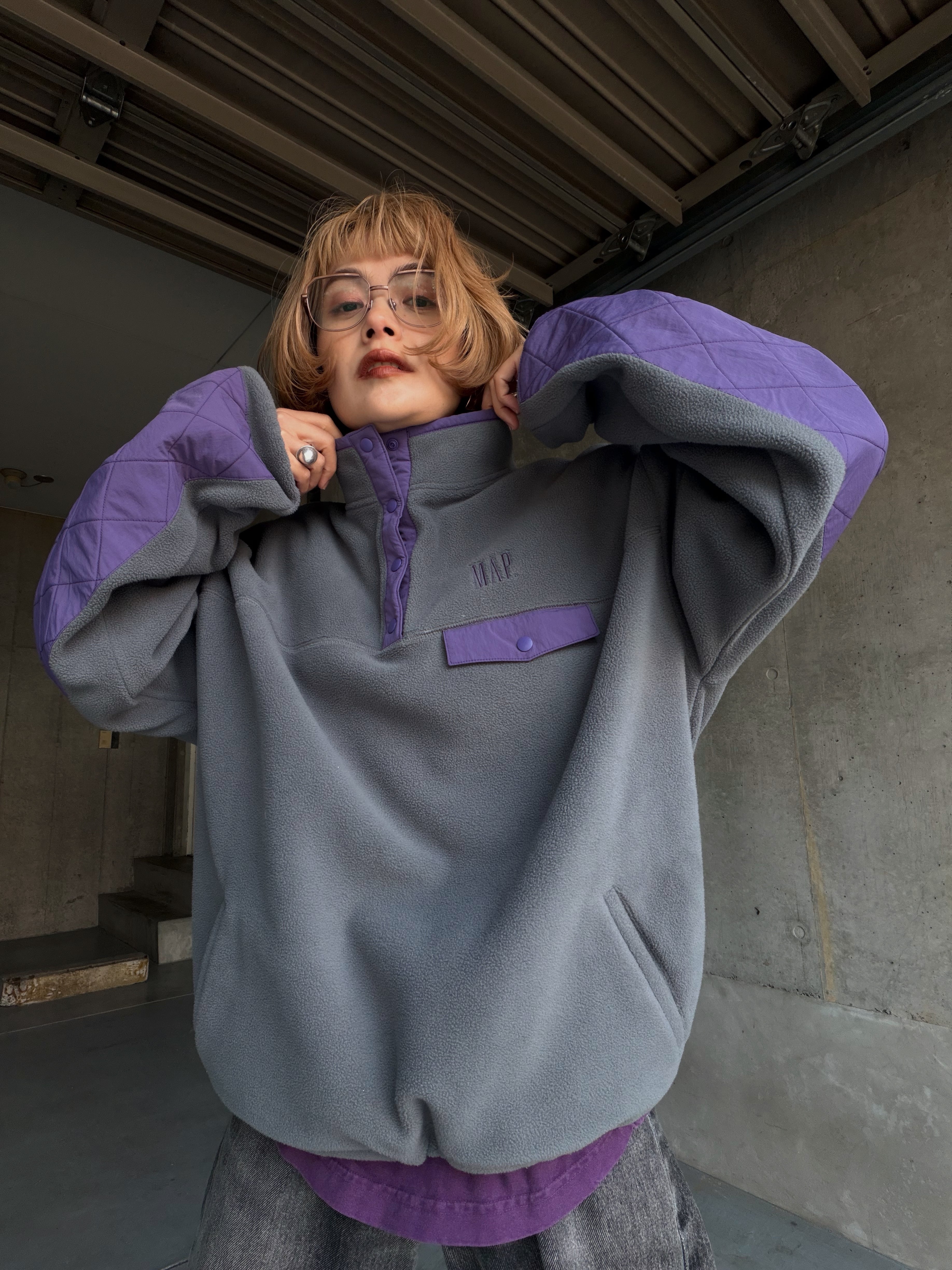 【map.】ELBOW PATCH FLEECE PULLOVER / GRAY × PURPLE