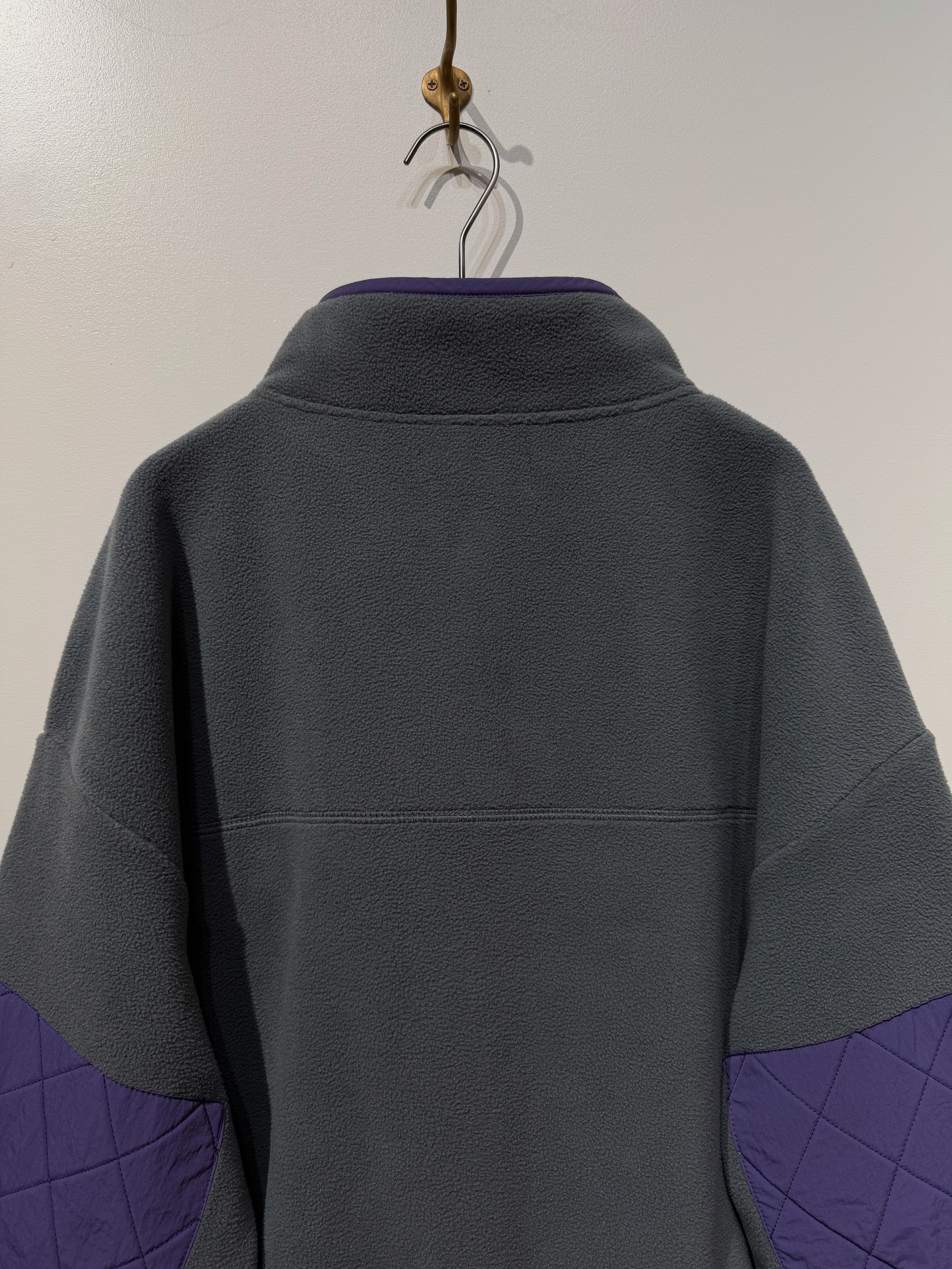 肘部分にはキルティングのエルボーパッチを大きく配置した、スナップボタンフリースプルオーバー。