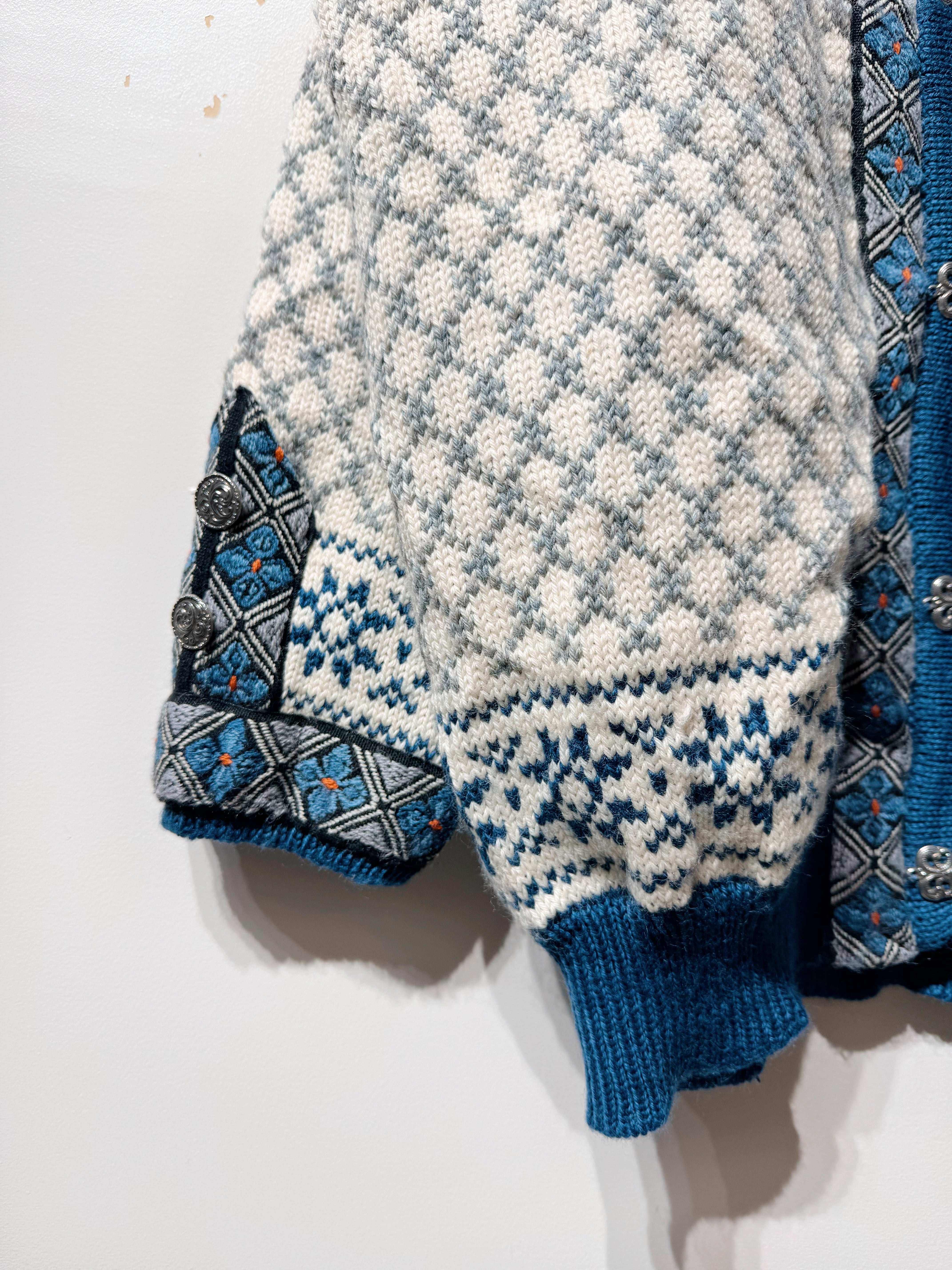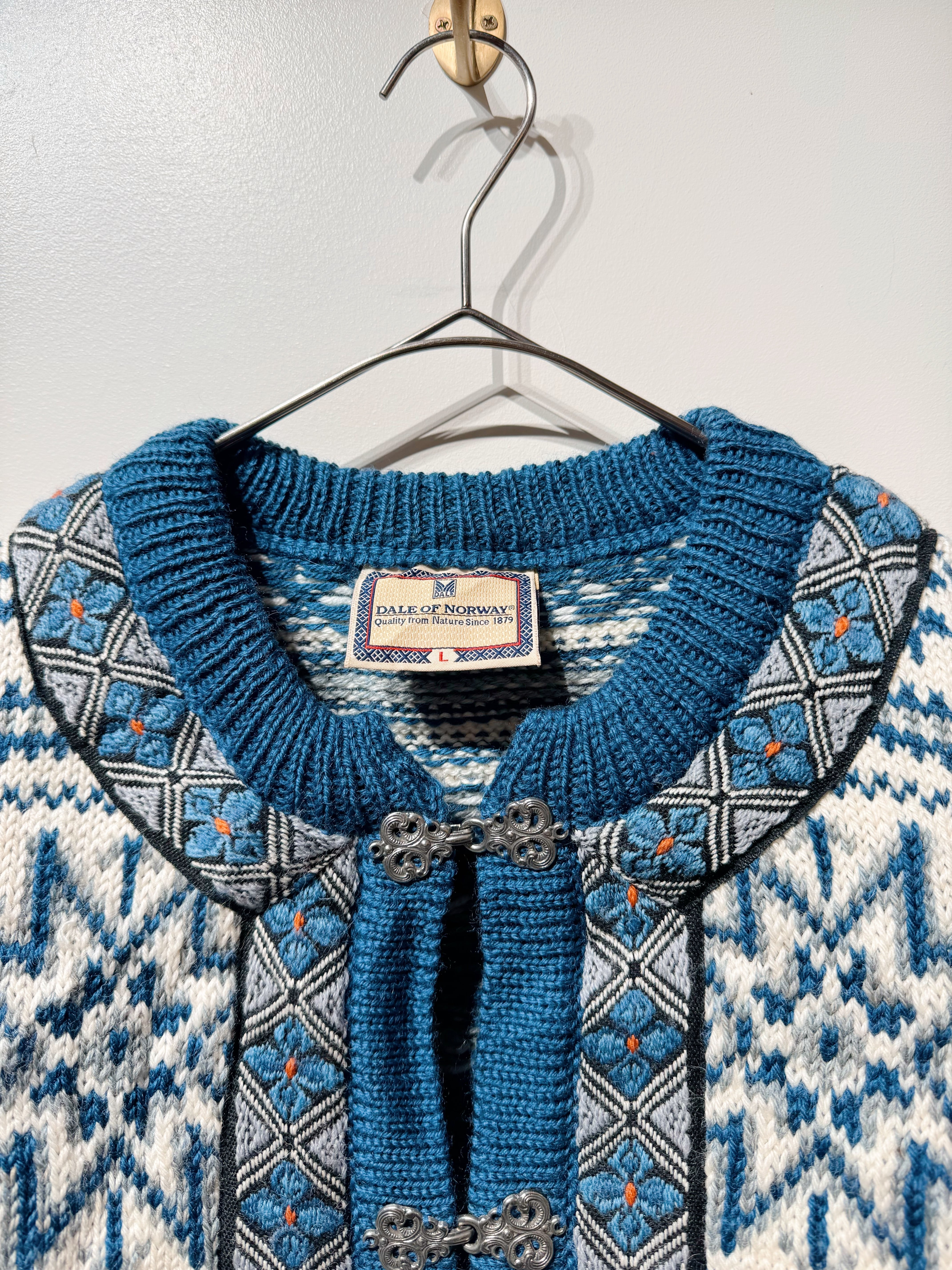 (KN575)80–90’s DALE OF NORWAY nordic pure new wool knit cardigan