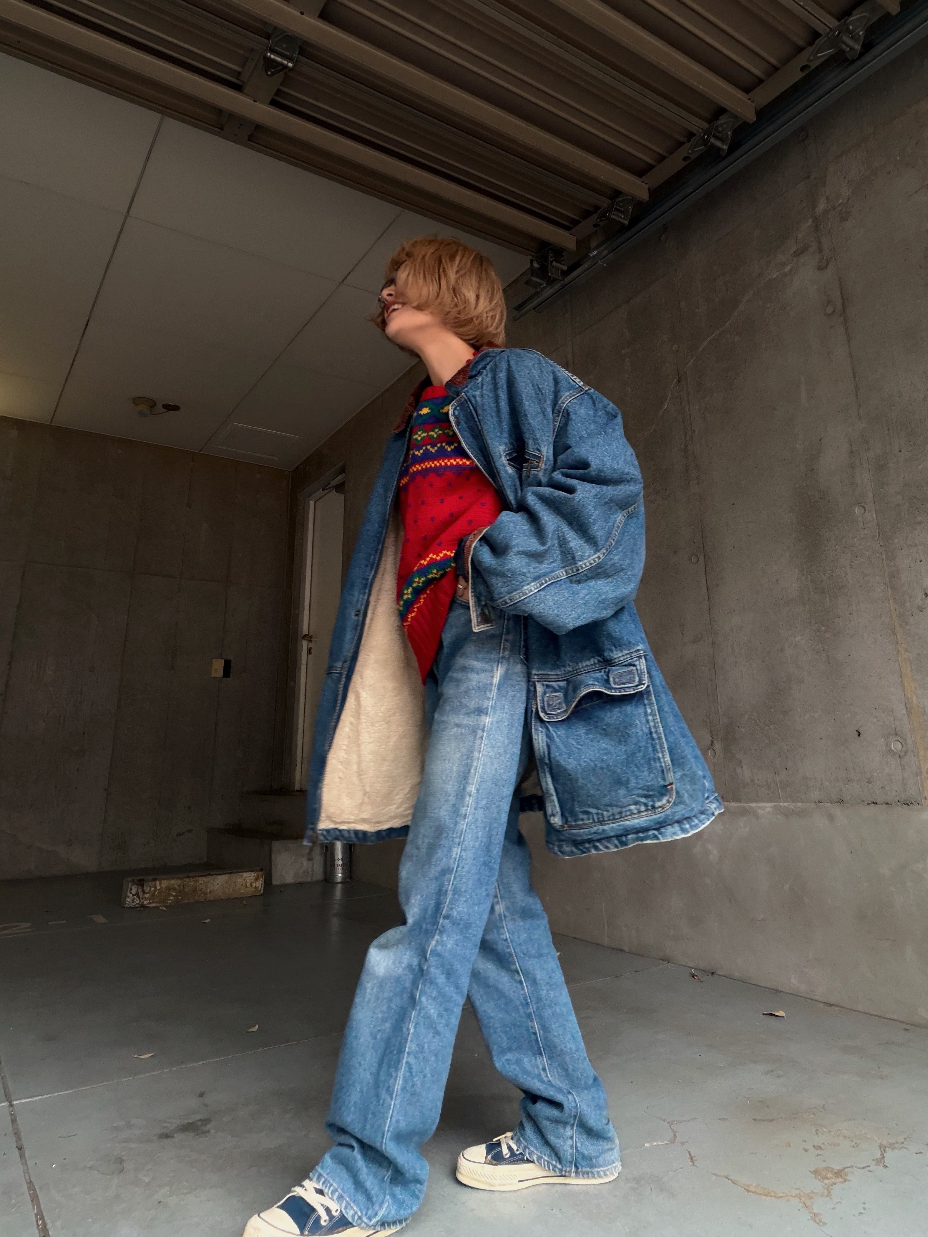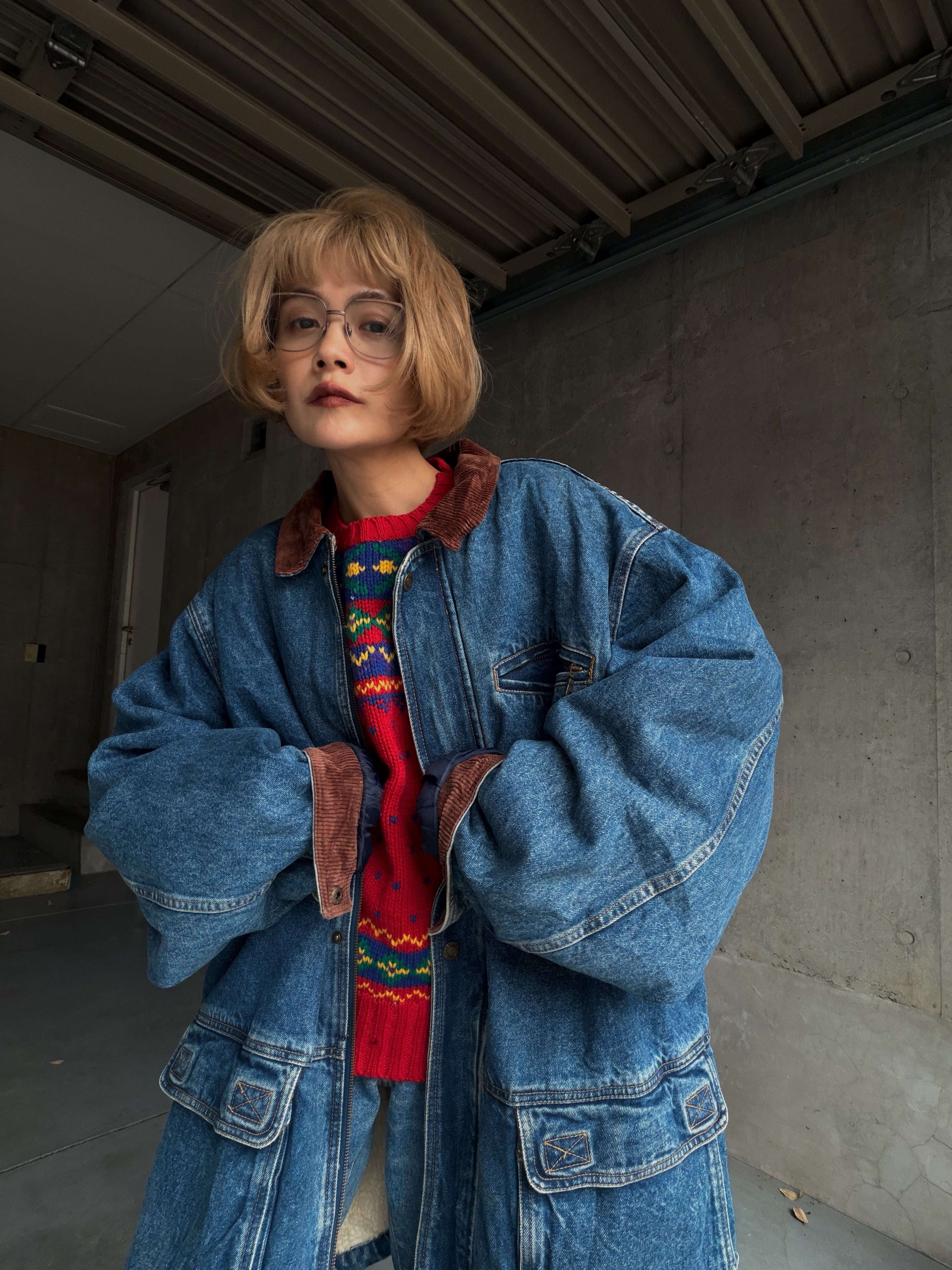 (OT1379)boa lined denim chore jacket