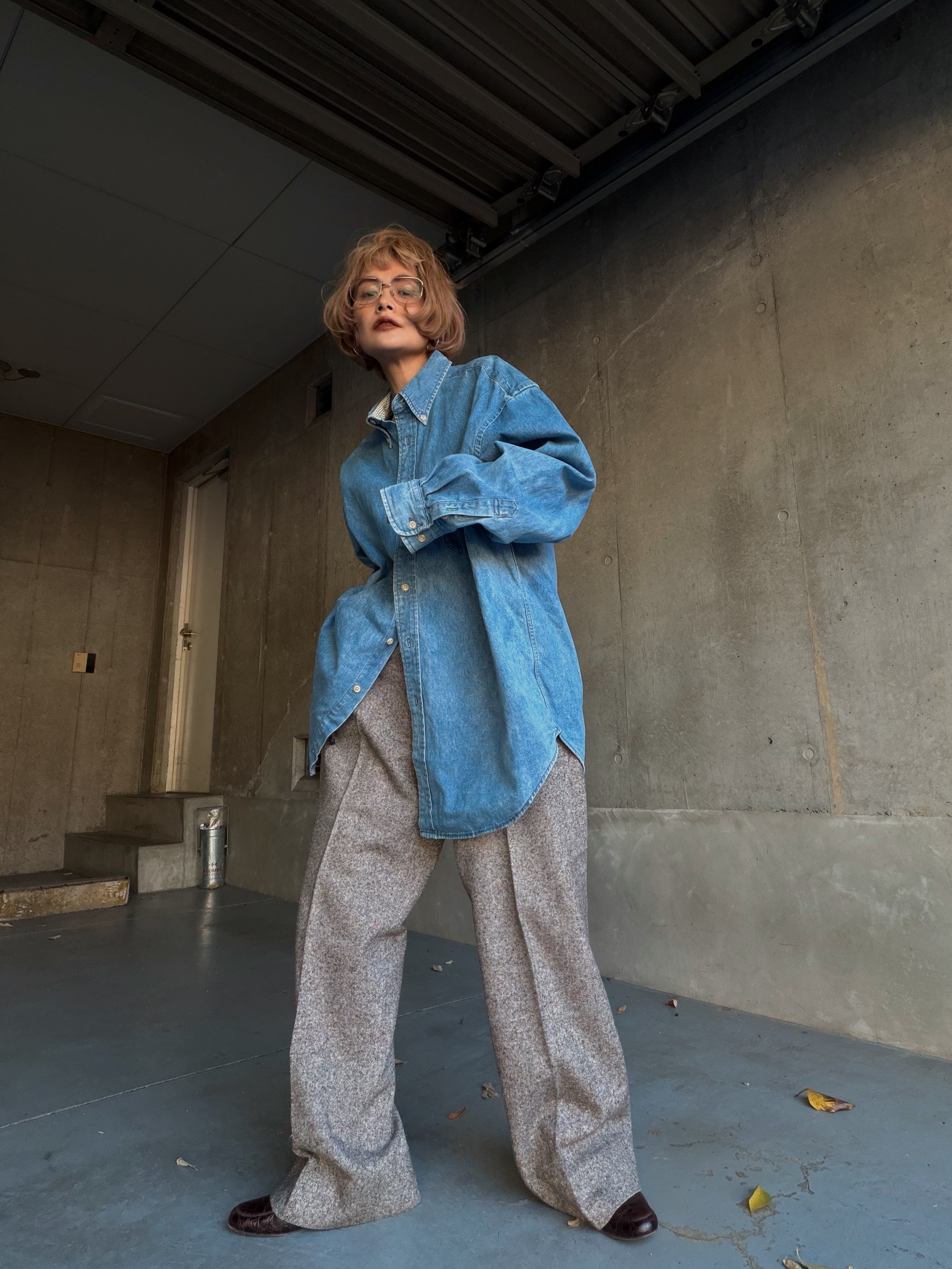 色落ち具合も丁度良く、今の時期はニットやアウターの中にレイヤードしても、
