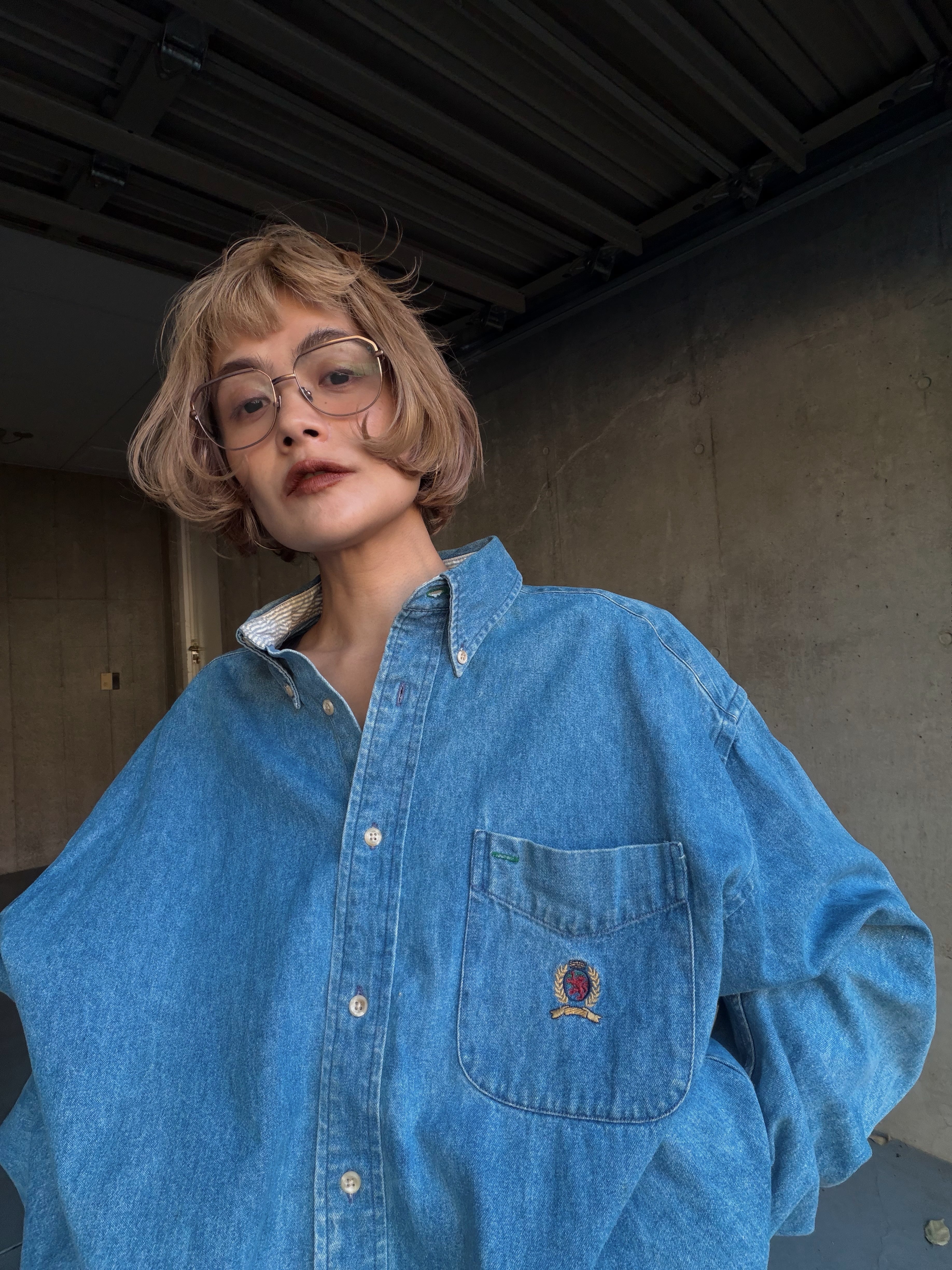 (SH1292)90’s old TOMMY HILFIGER BD denim shirt