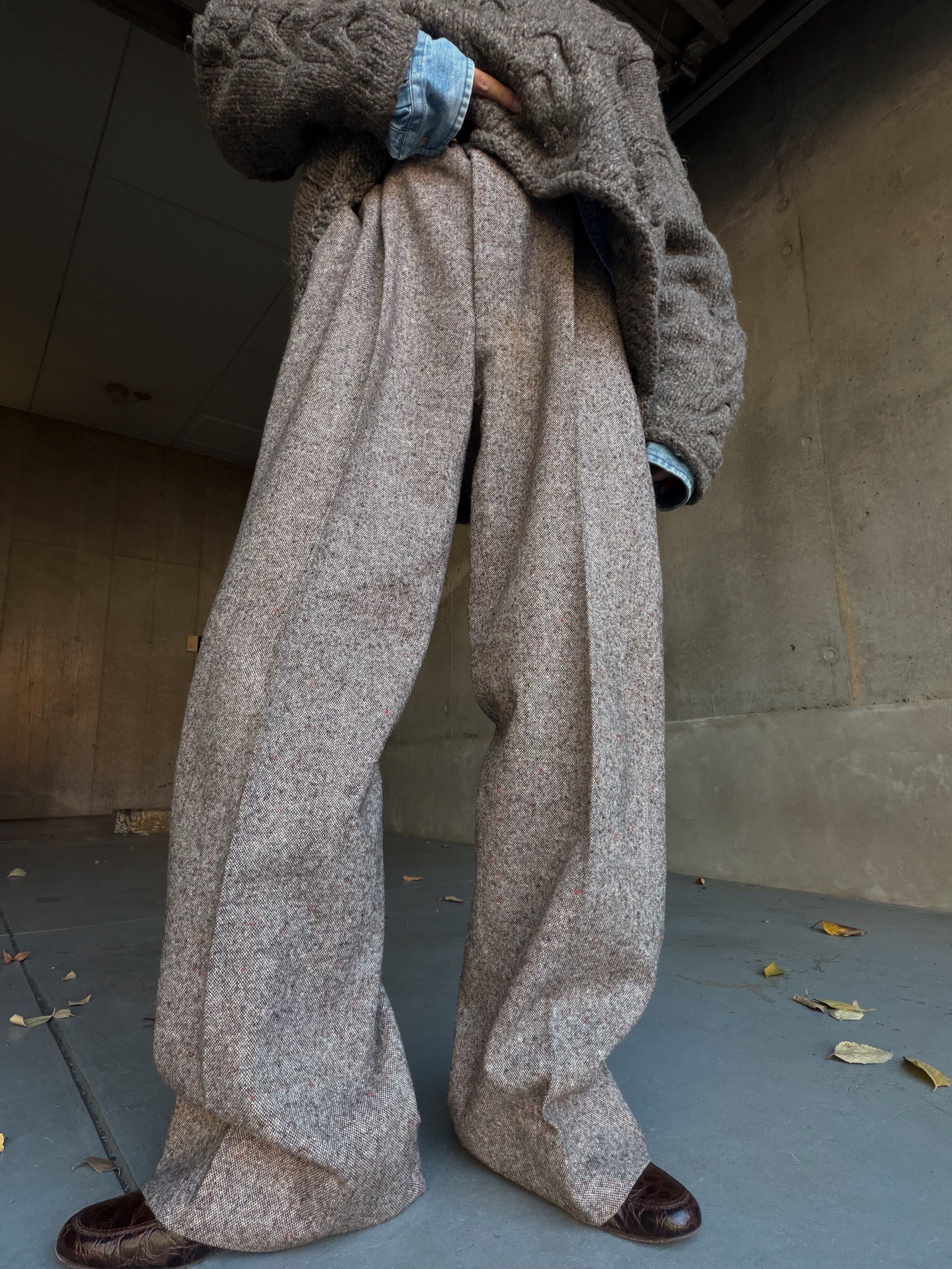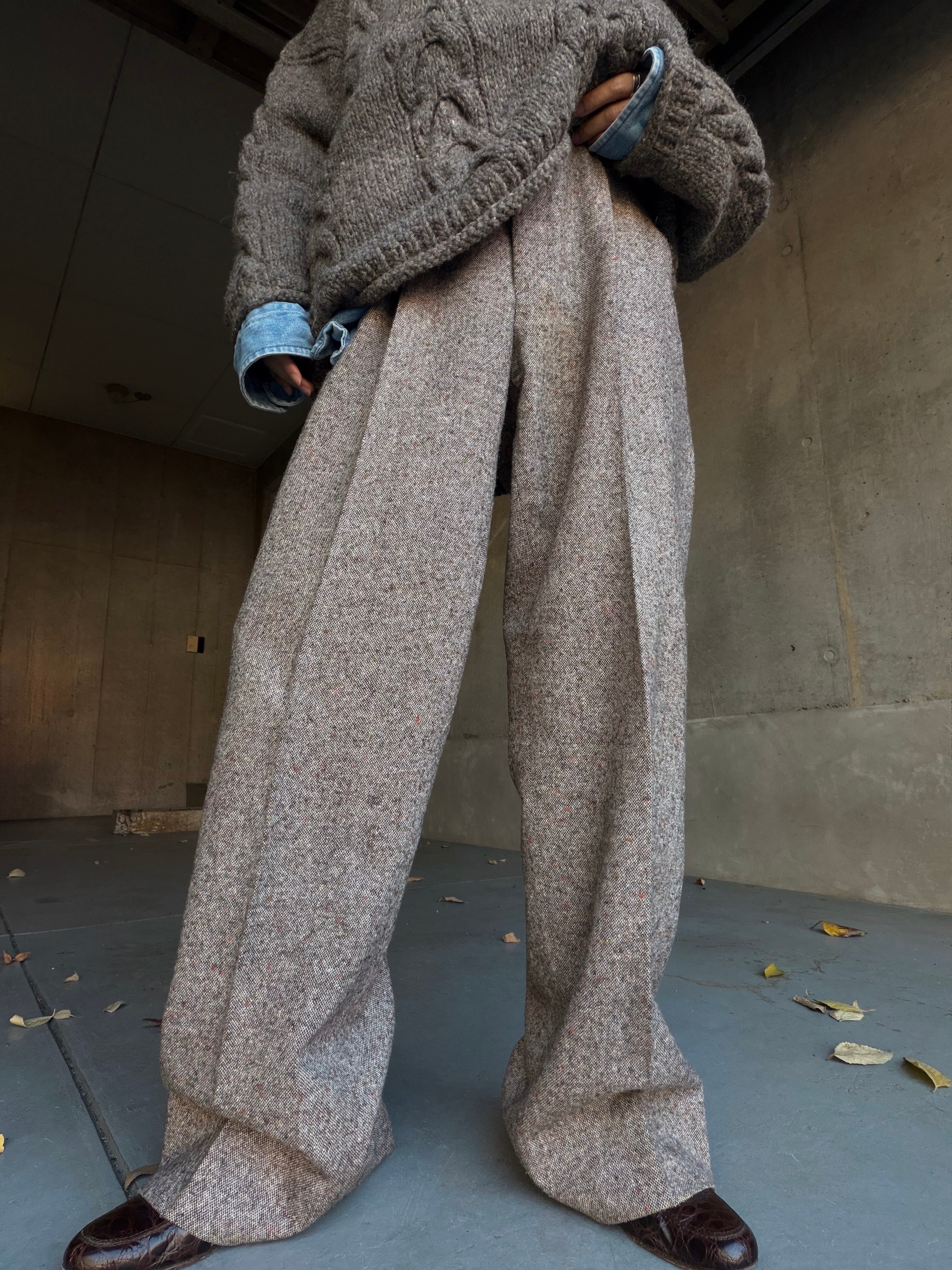 ざらっとした表情のミックスツイード生地がとにかく雰囲気抜群な1タックスラックス。