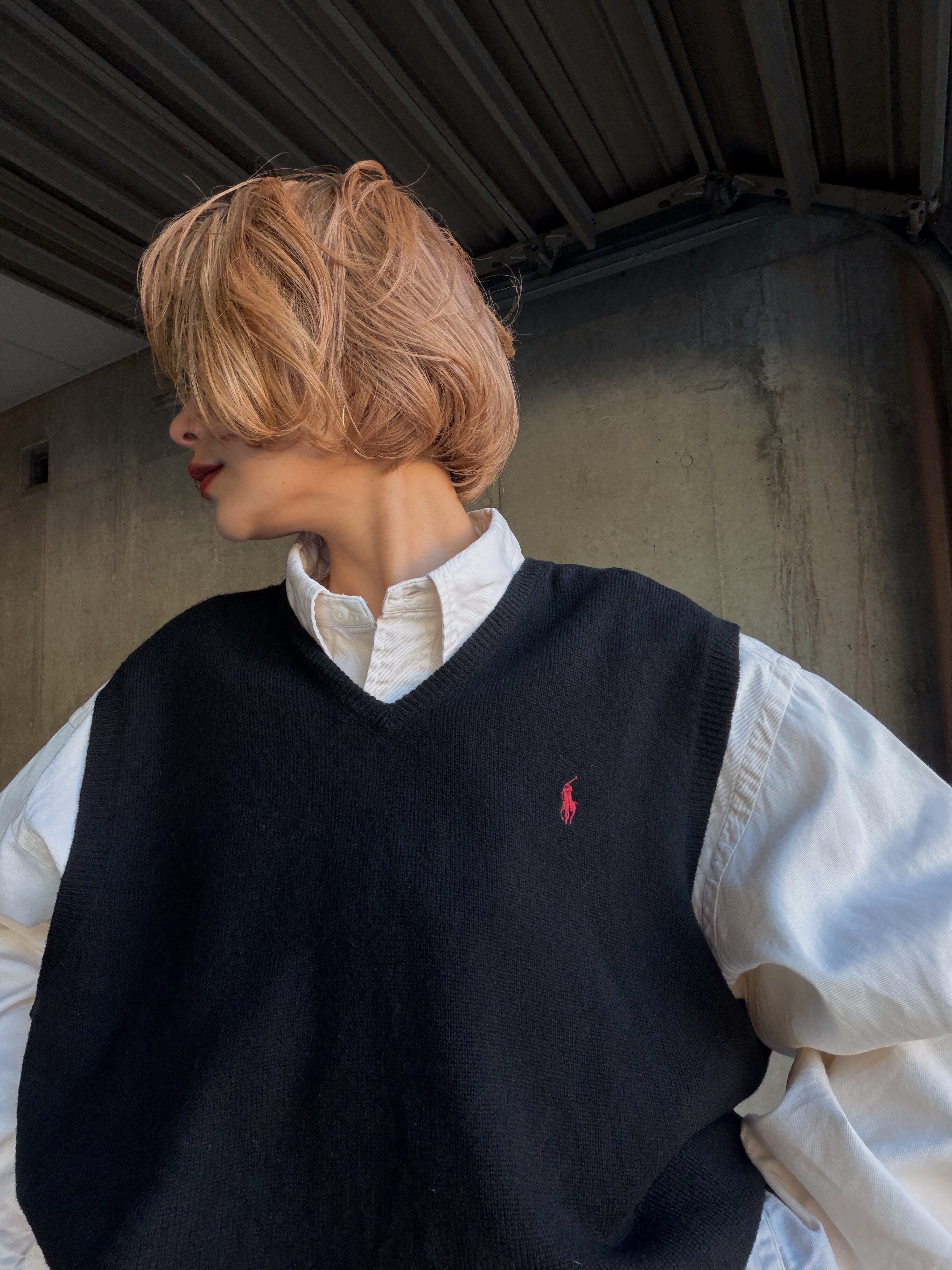 (KN576)Polo Ralph Lauren lams wool knit vest