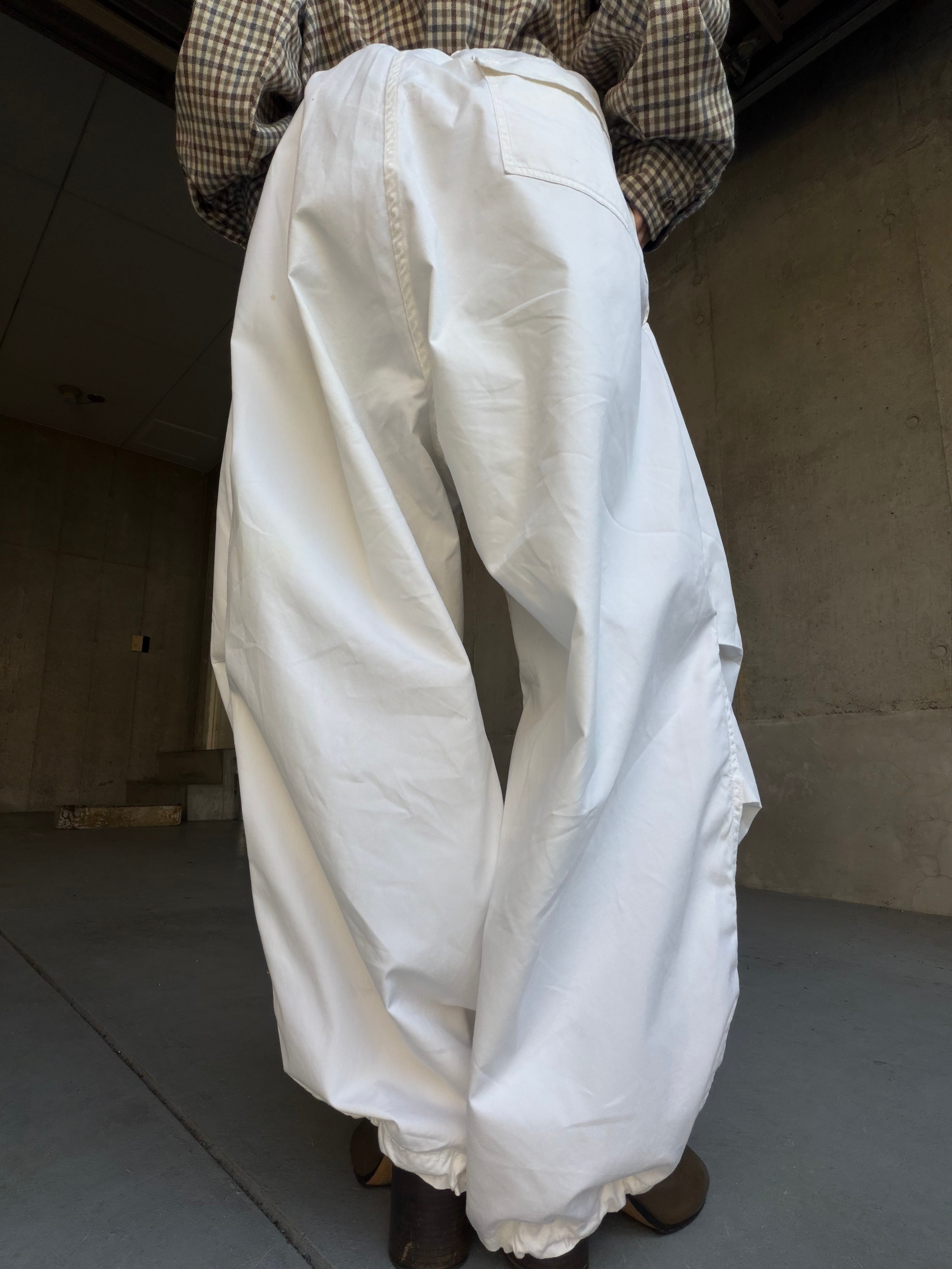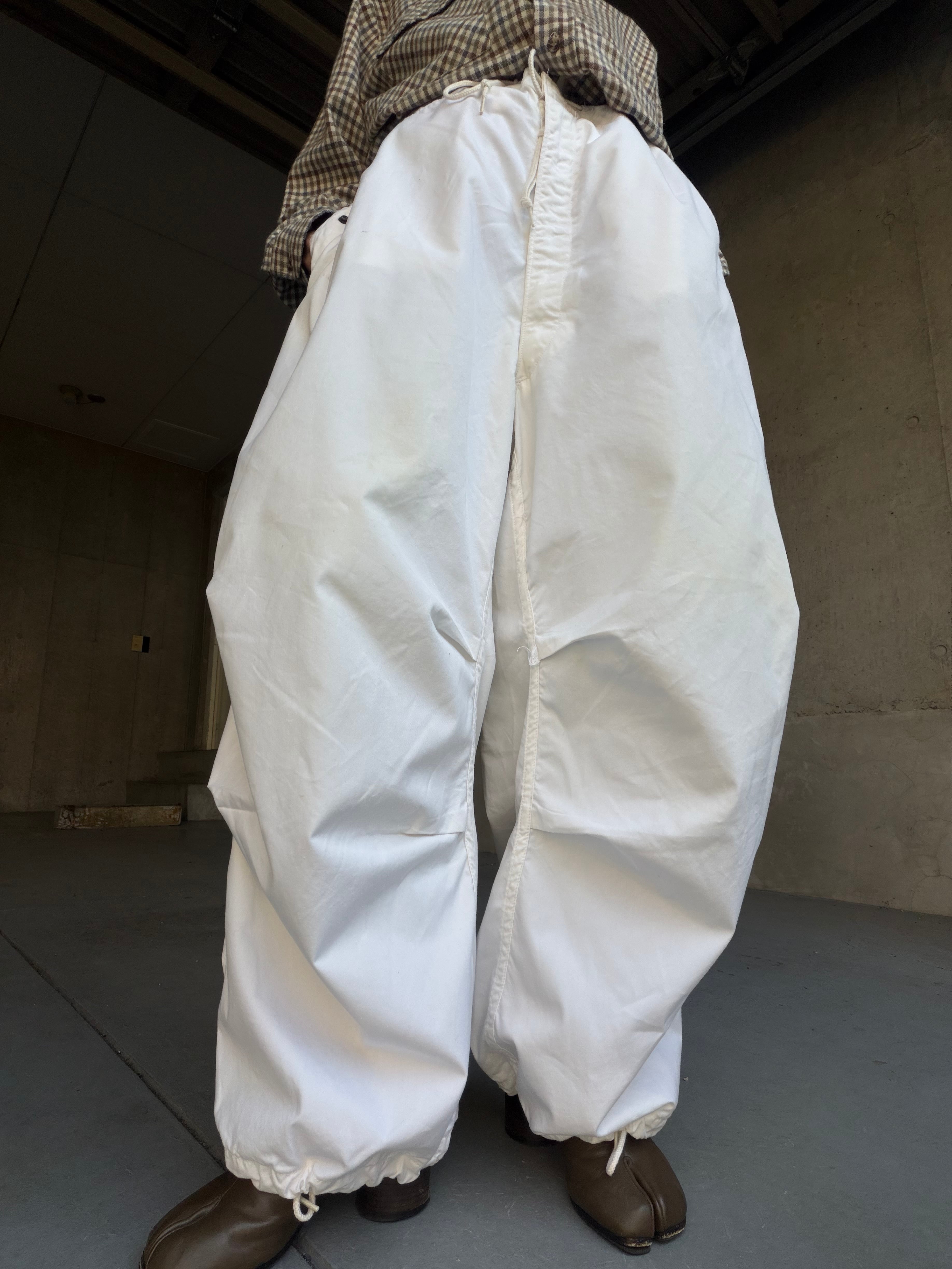 雪原でのカモフラージュ用に作られた一本で、パンツの上から着用する設計のため圧倒的なワイドシルエット。