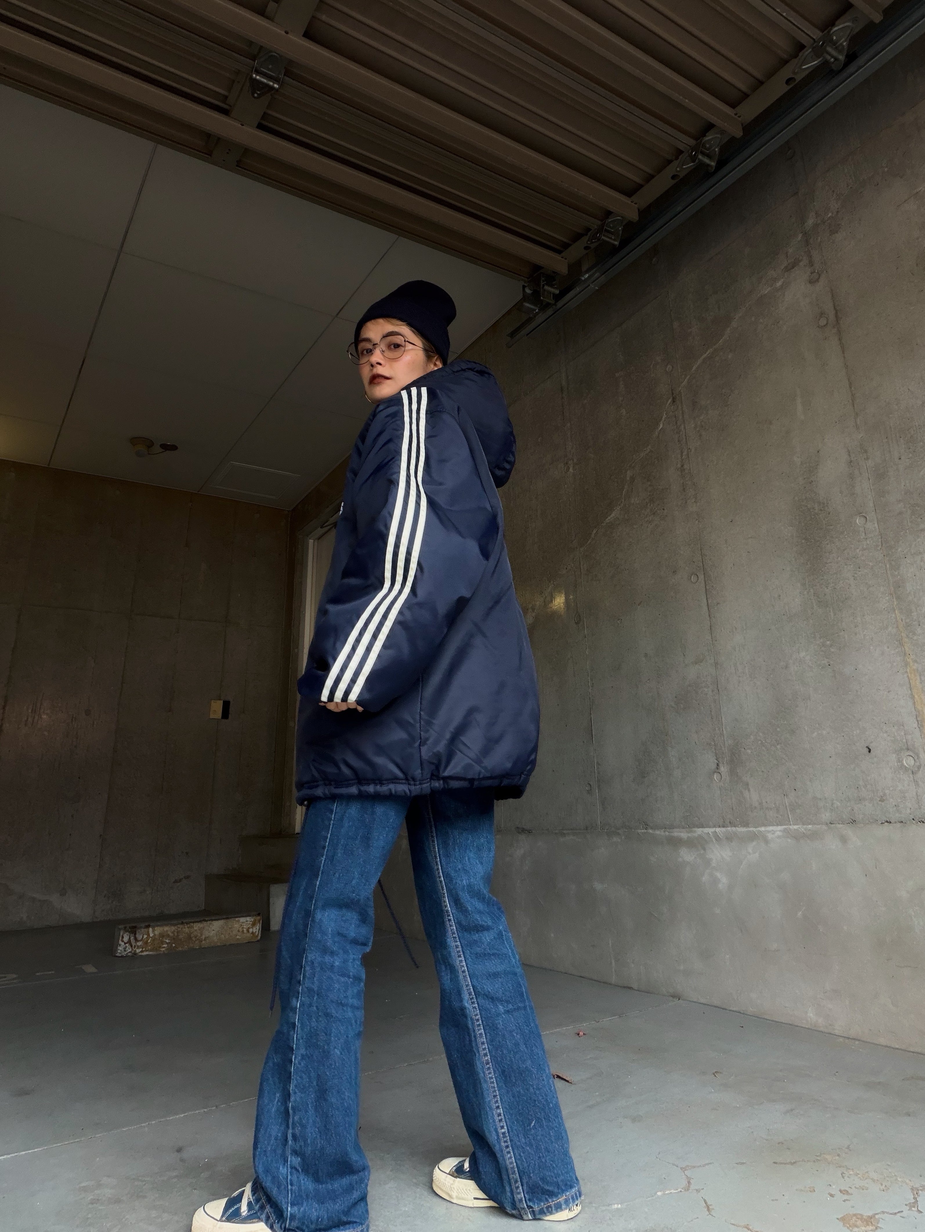 存在感抜群のトレフォイルロゴの中綿ジャケット。