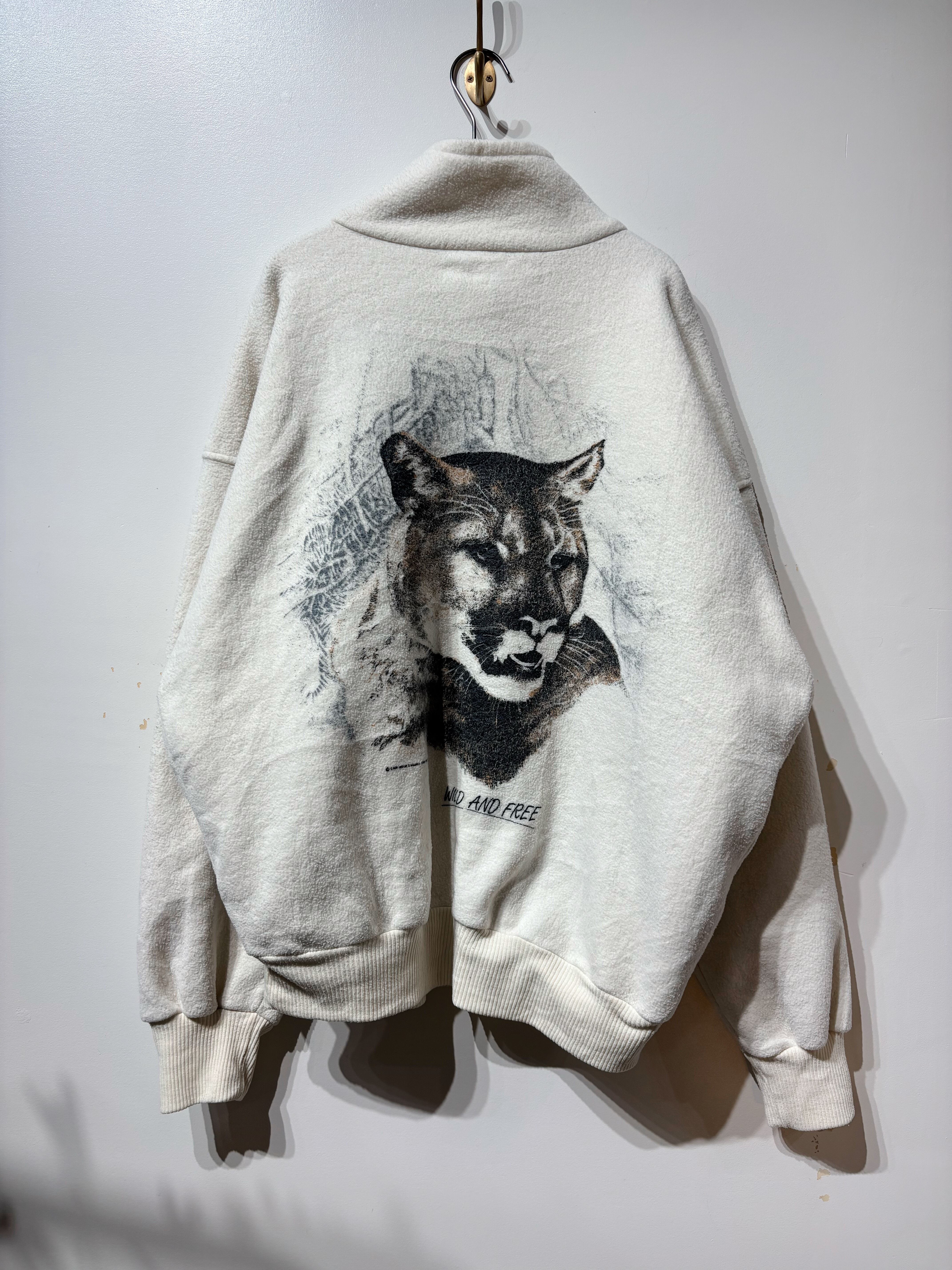 (CS2192)80’s Mountain sportswear cougar grapjic half zip fleece made in Canada