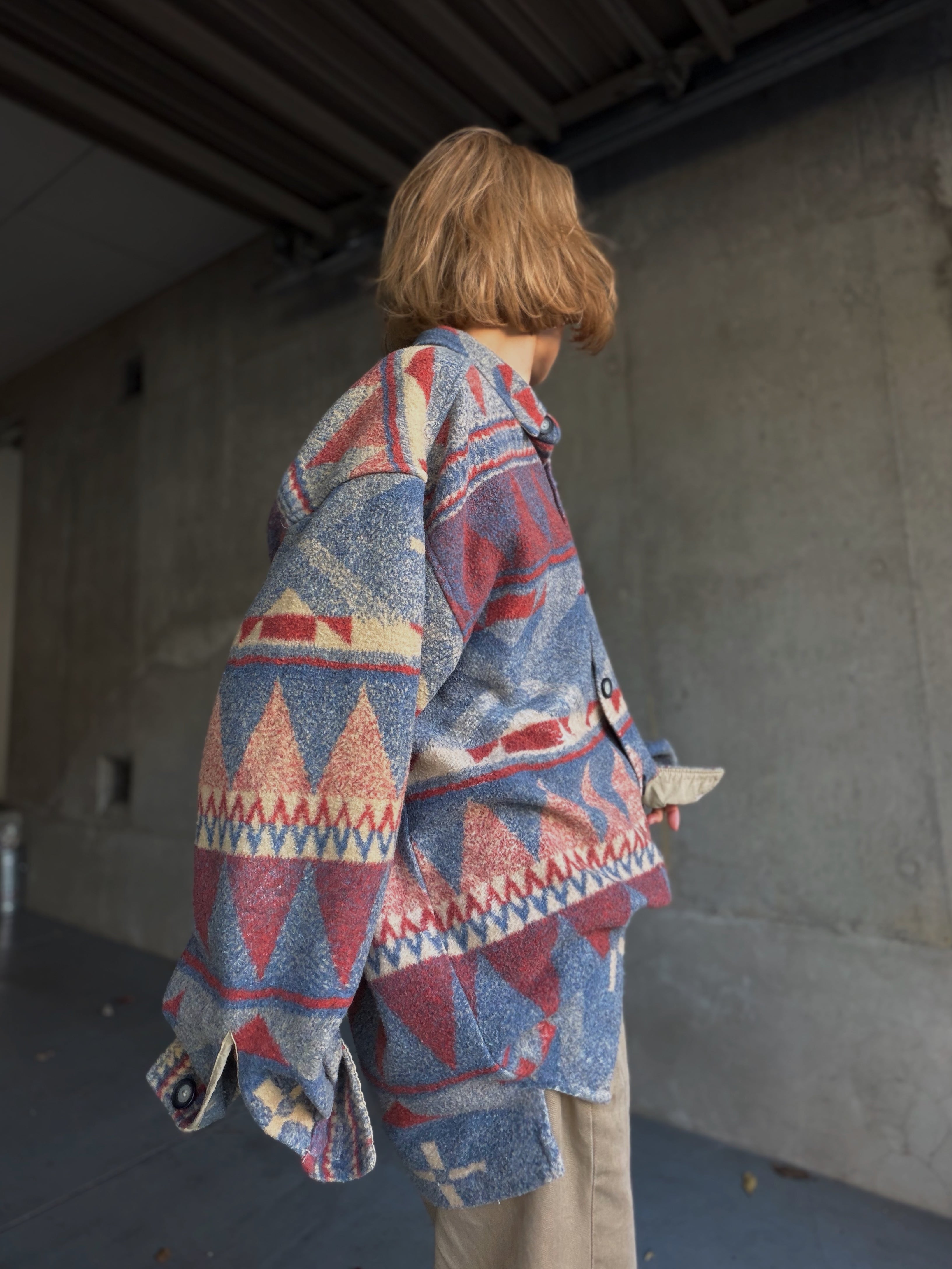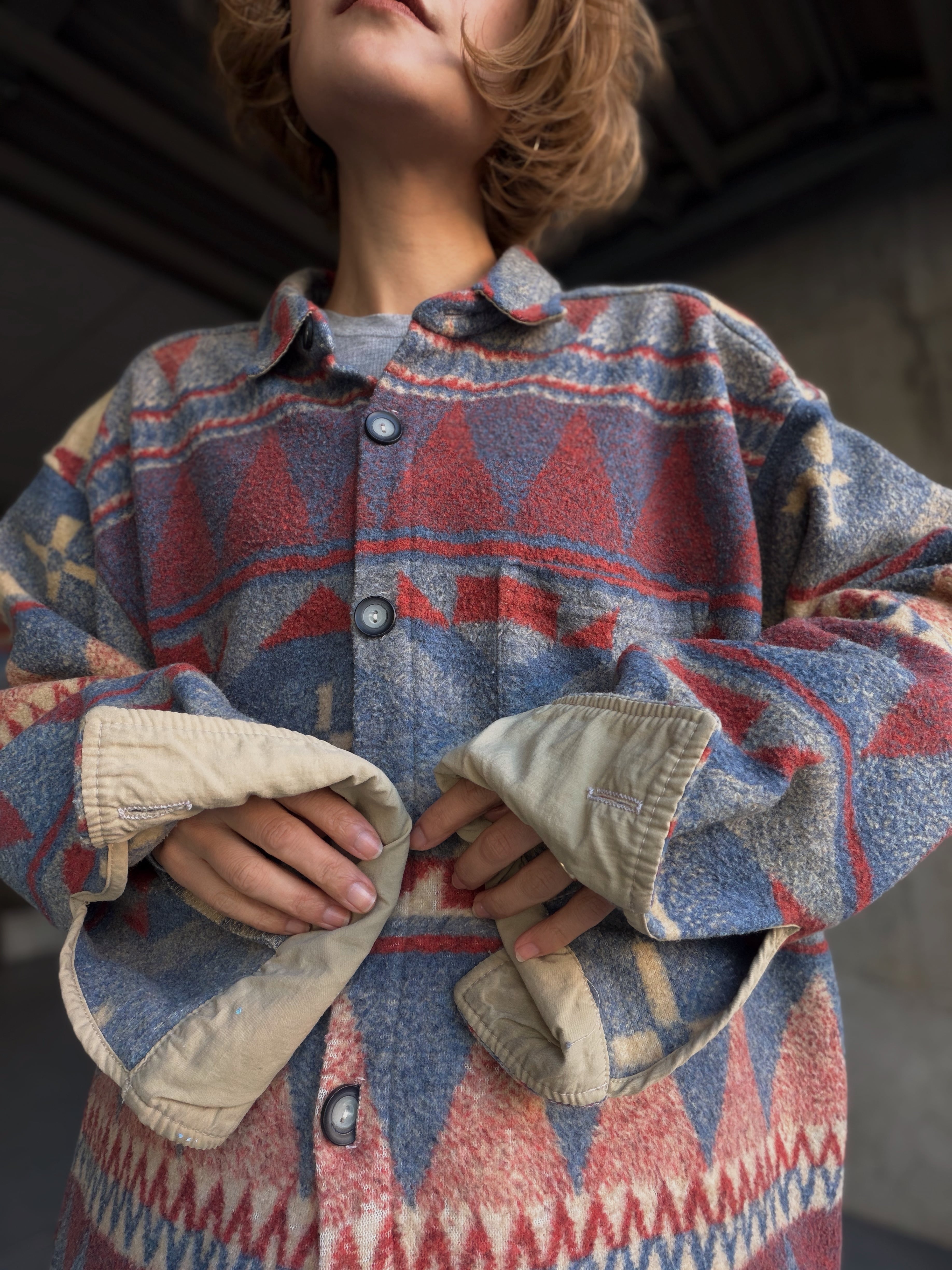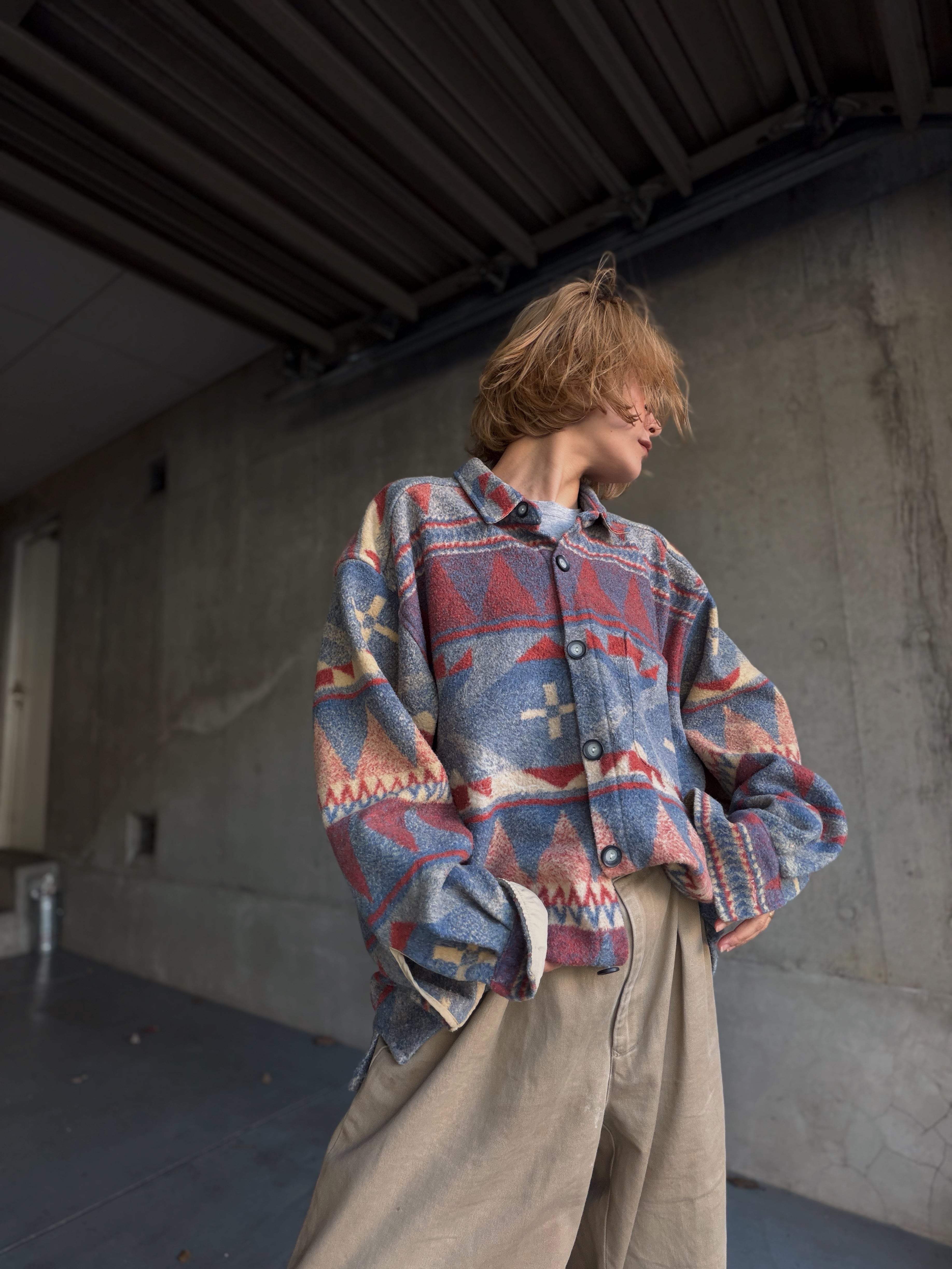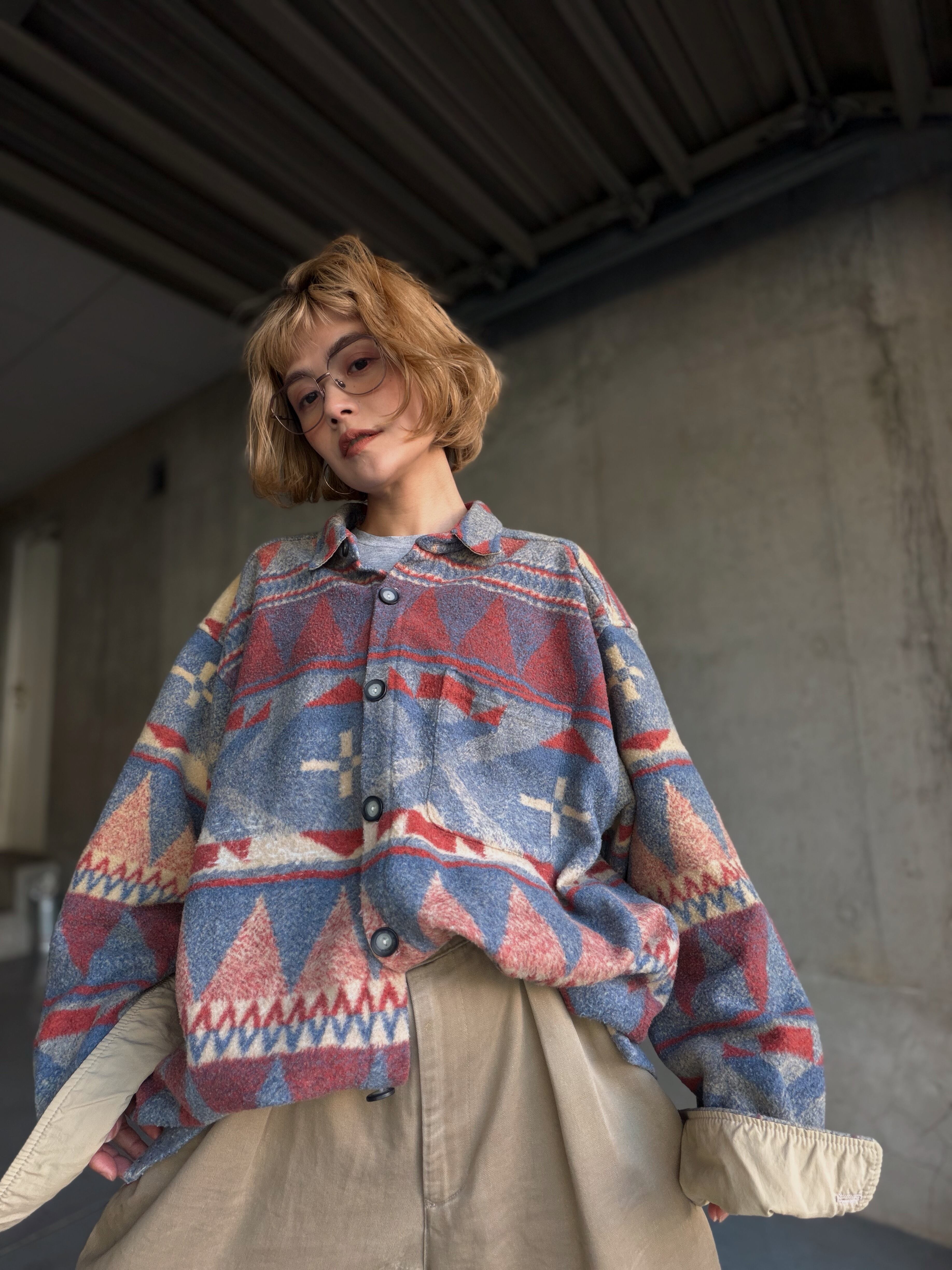 (SH1305)80‘s native pattern fleece shirt made in USA