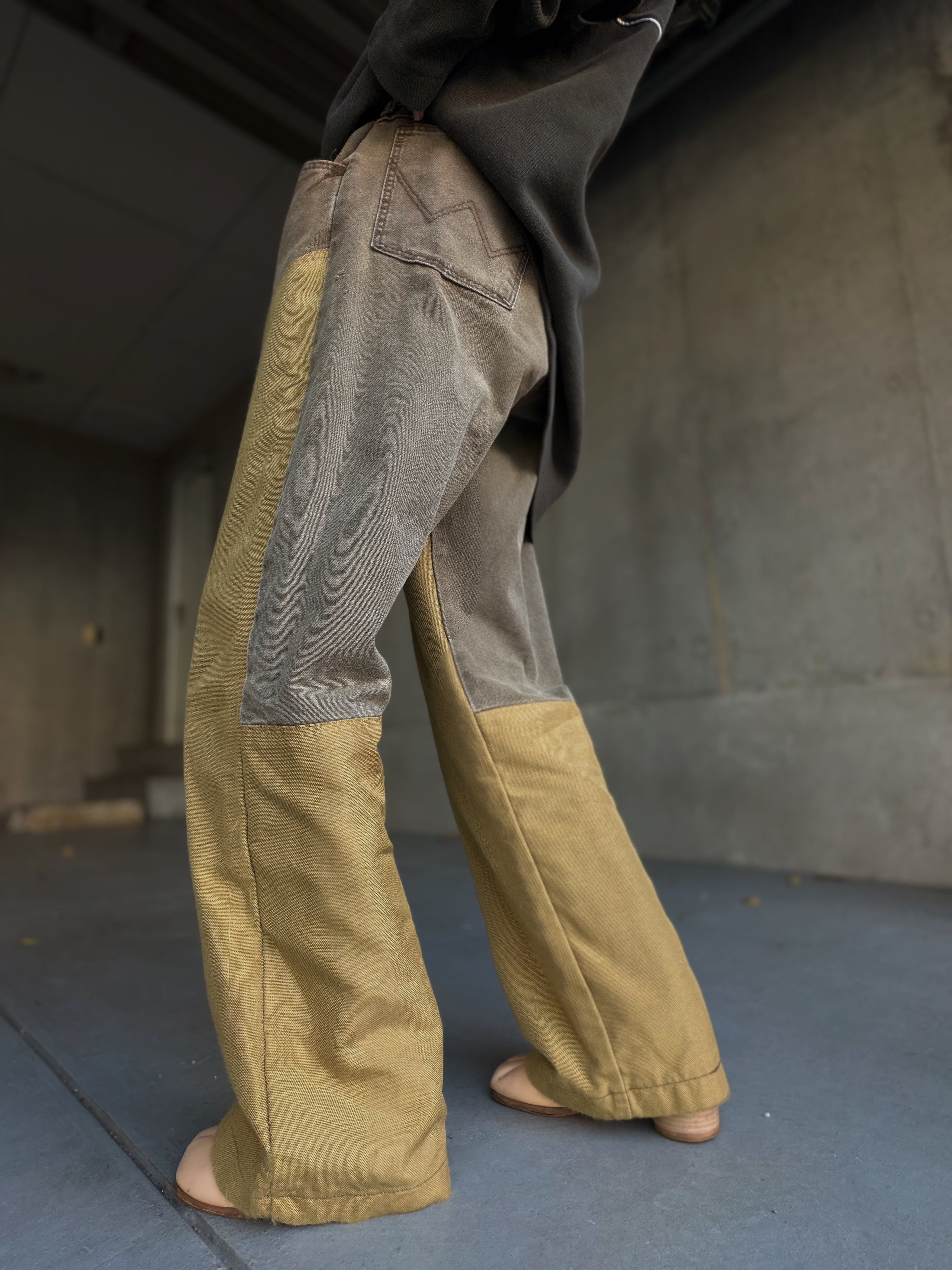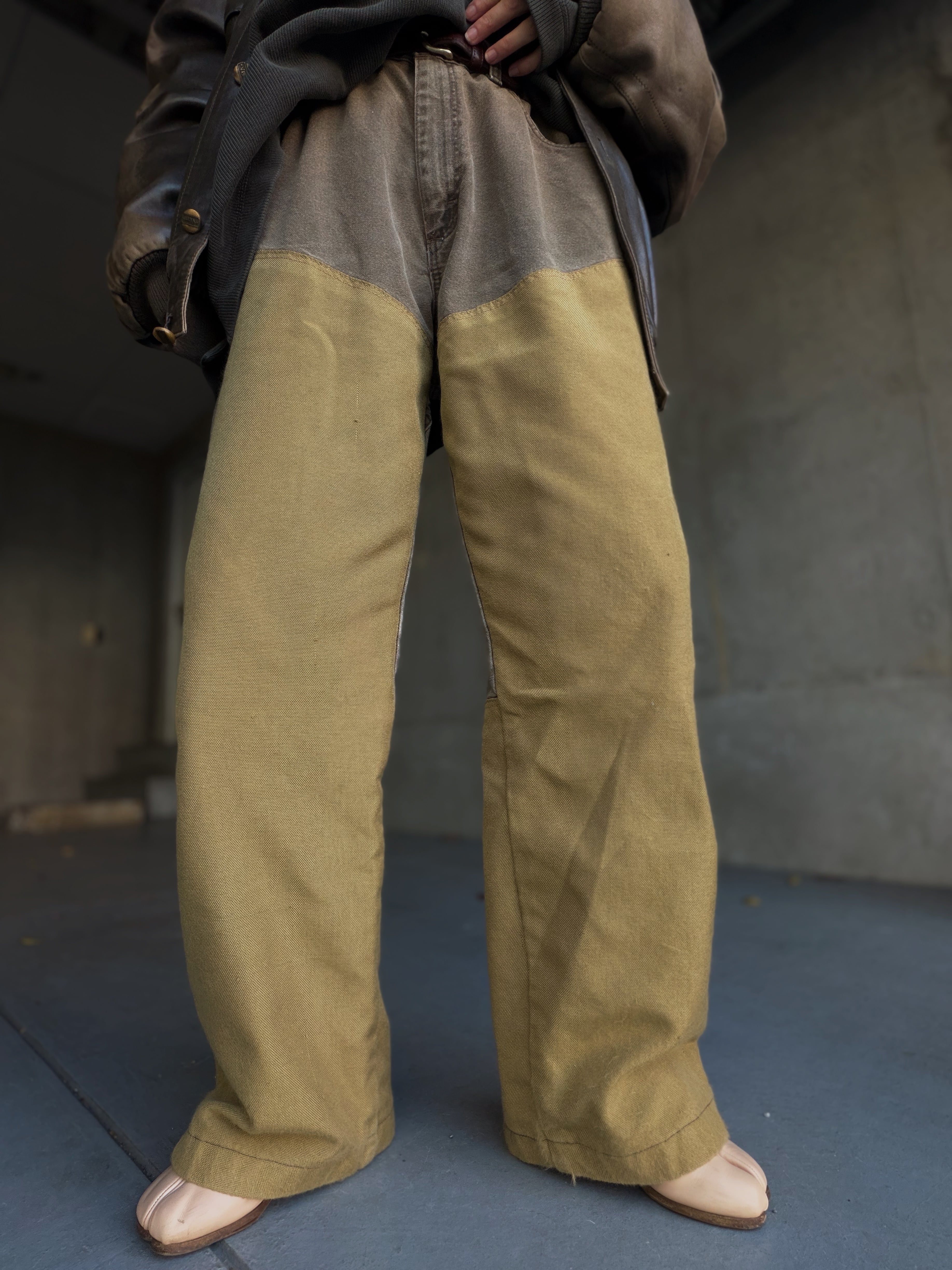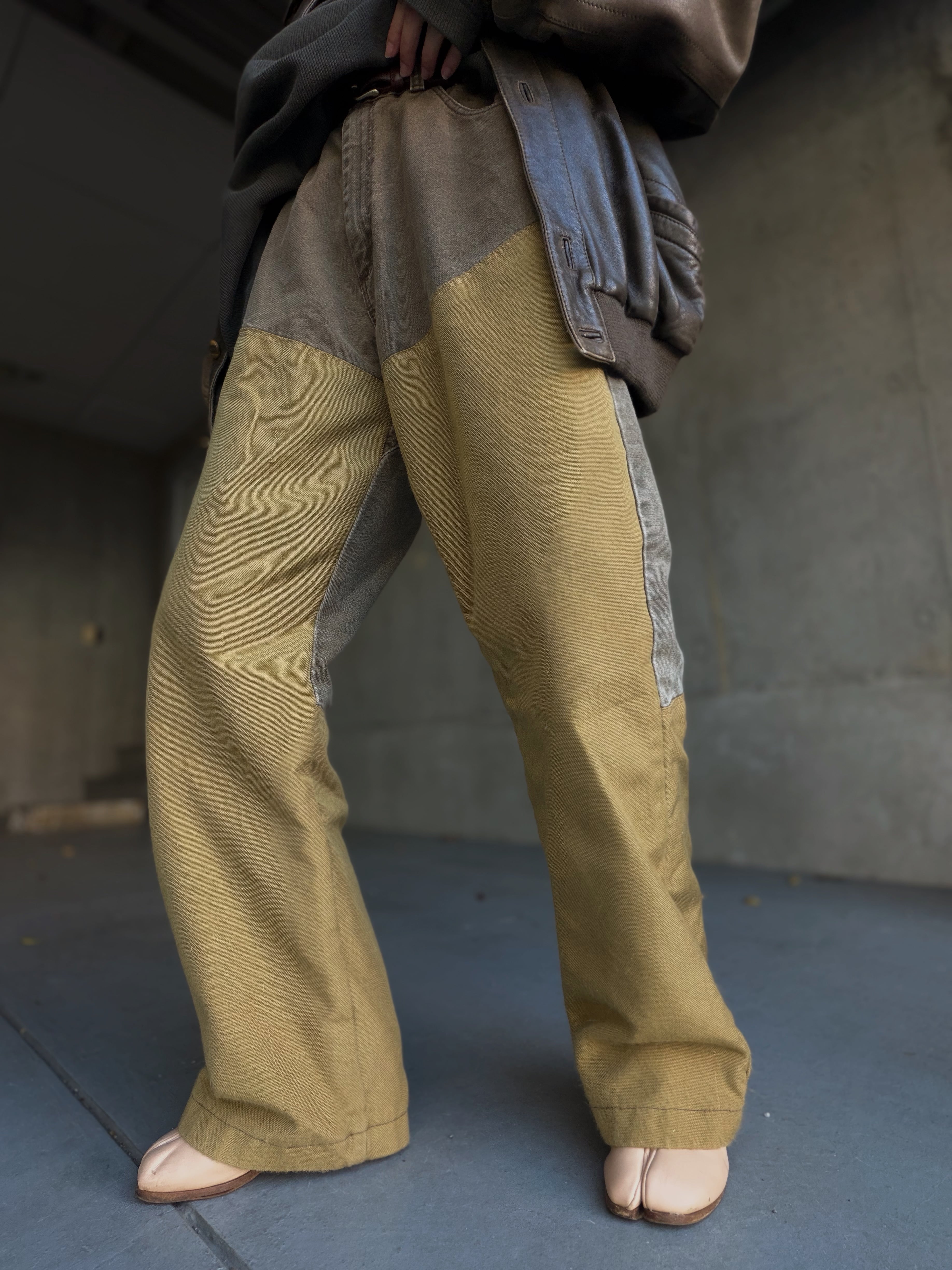 ワーク由来らしいタフなキャンバス地に、膝部分の切り替えがしっかり映える一本です。