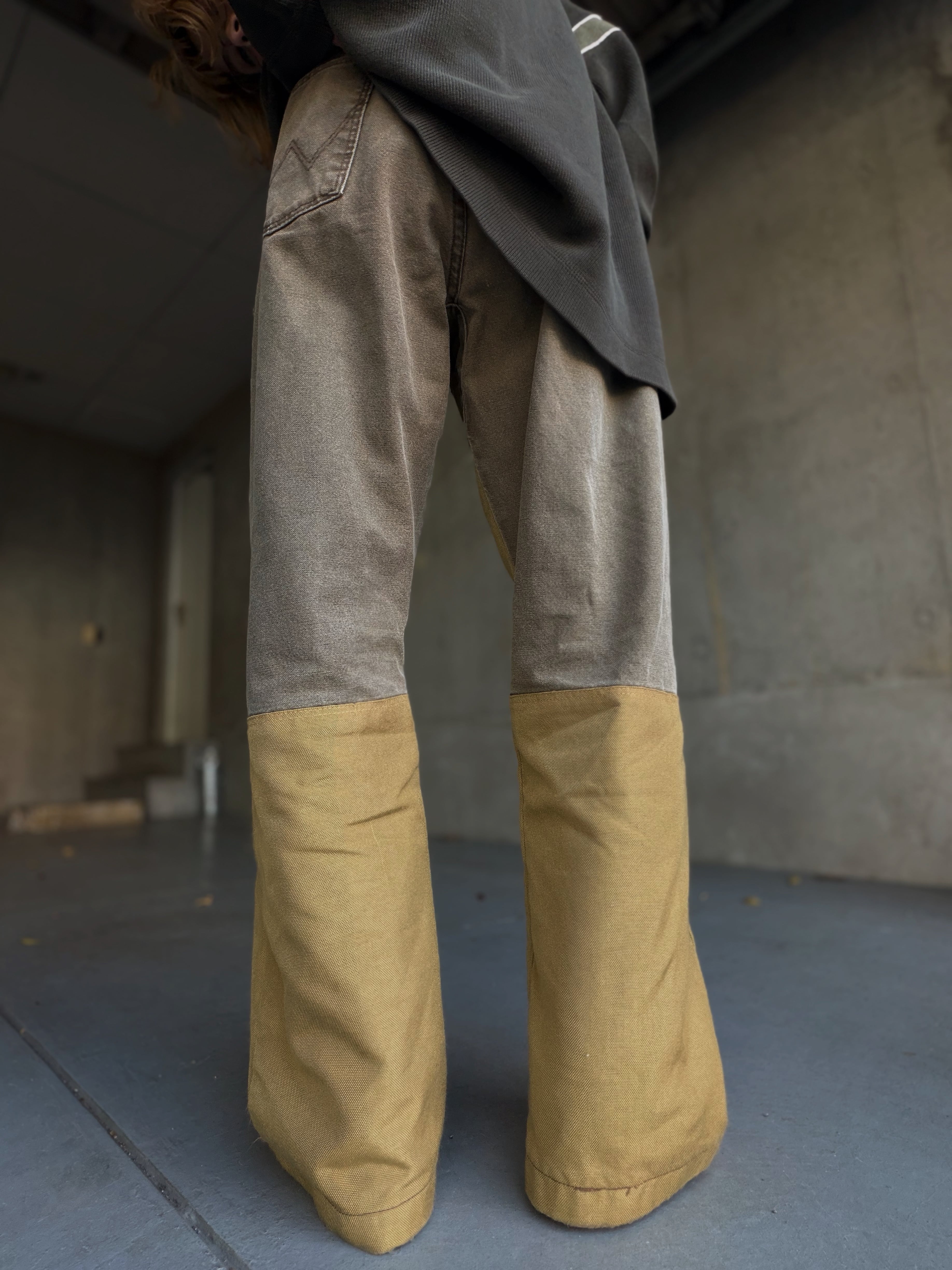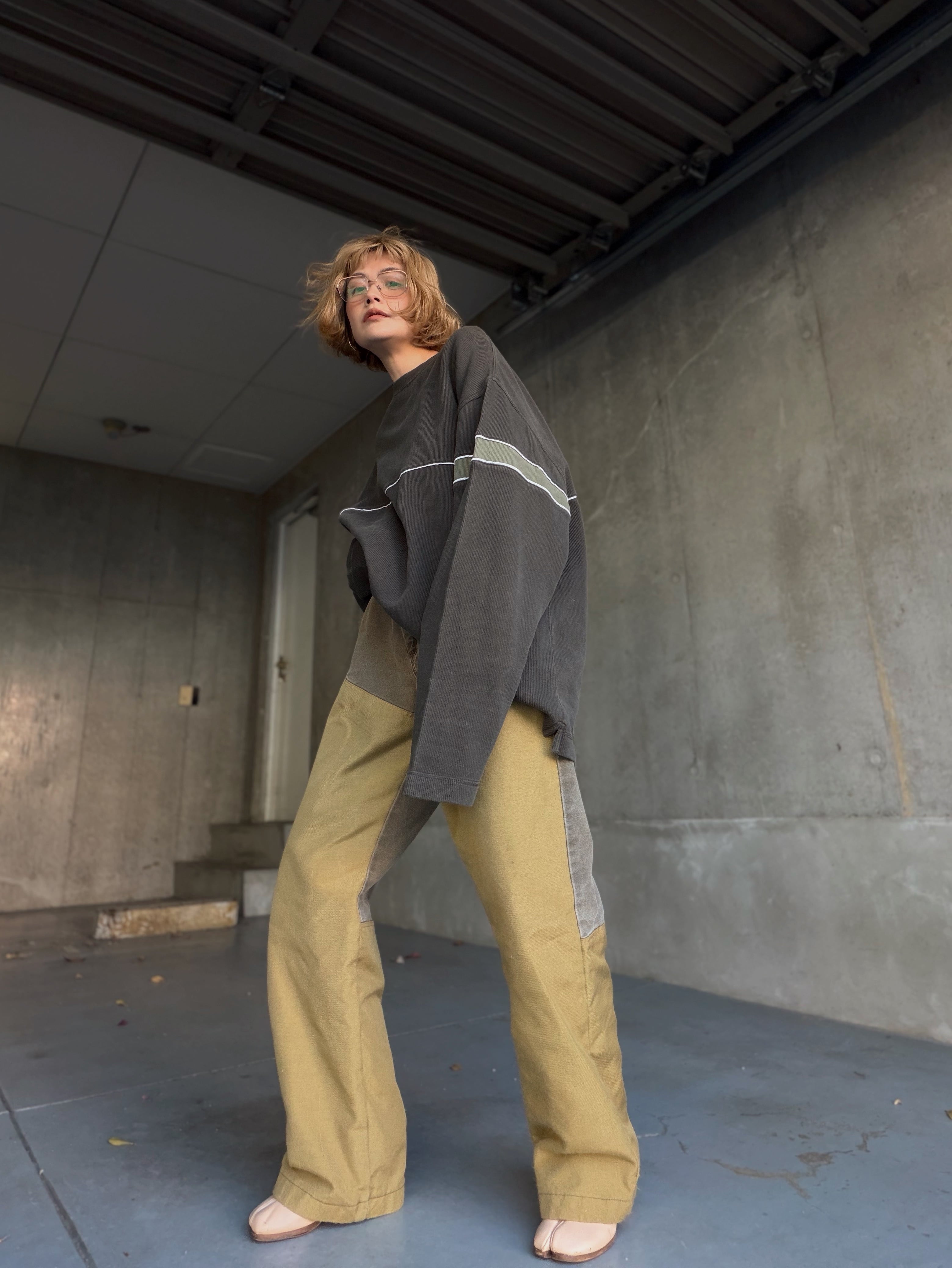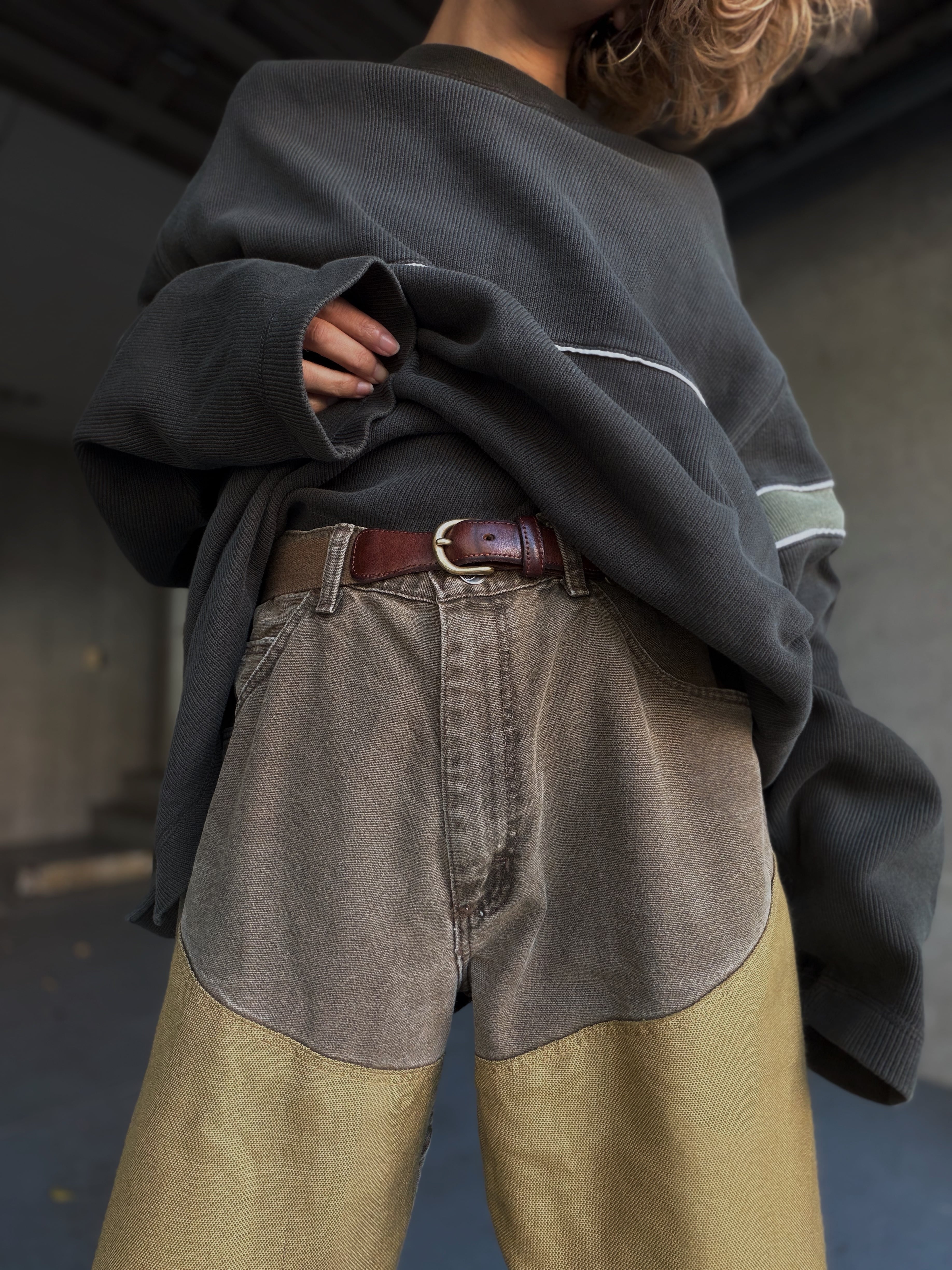 ワーク由来らしいタフなキャンバス地に、膝部分の切り替えがしっかり映える一本です。