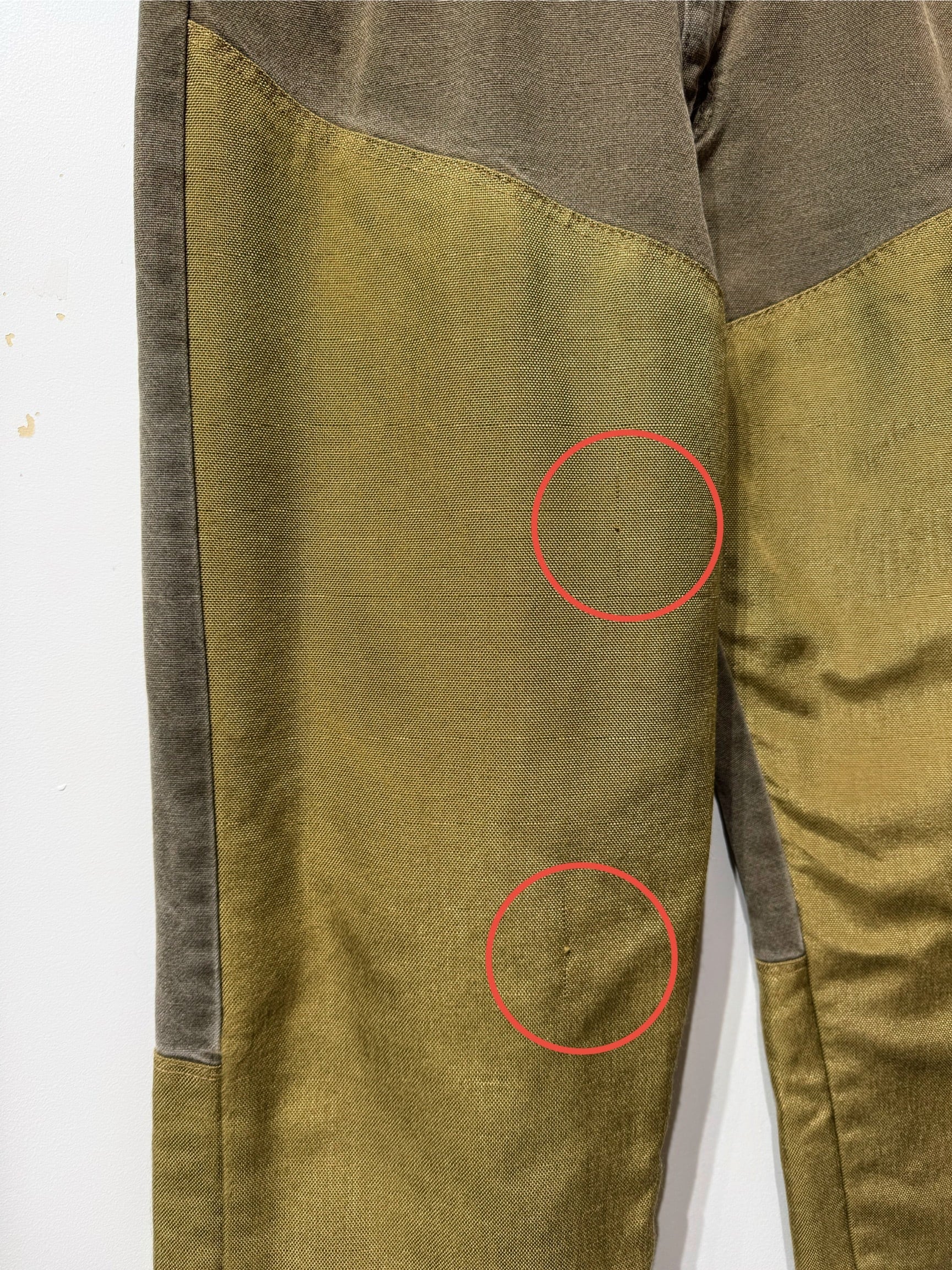 全体はブラウンにダブルニー部分はオリーブ寄りの配色は今着てもシャレ感あります。