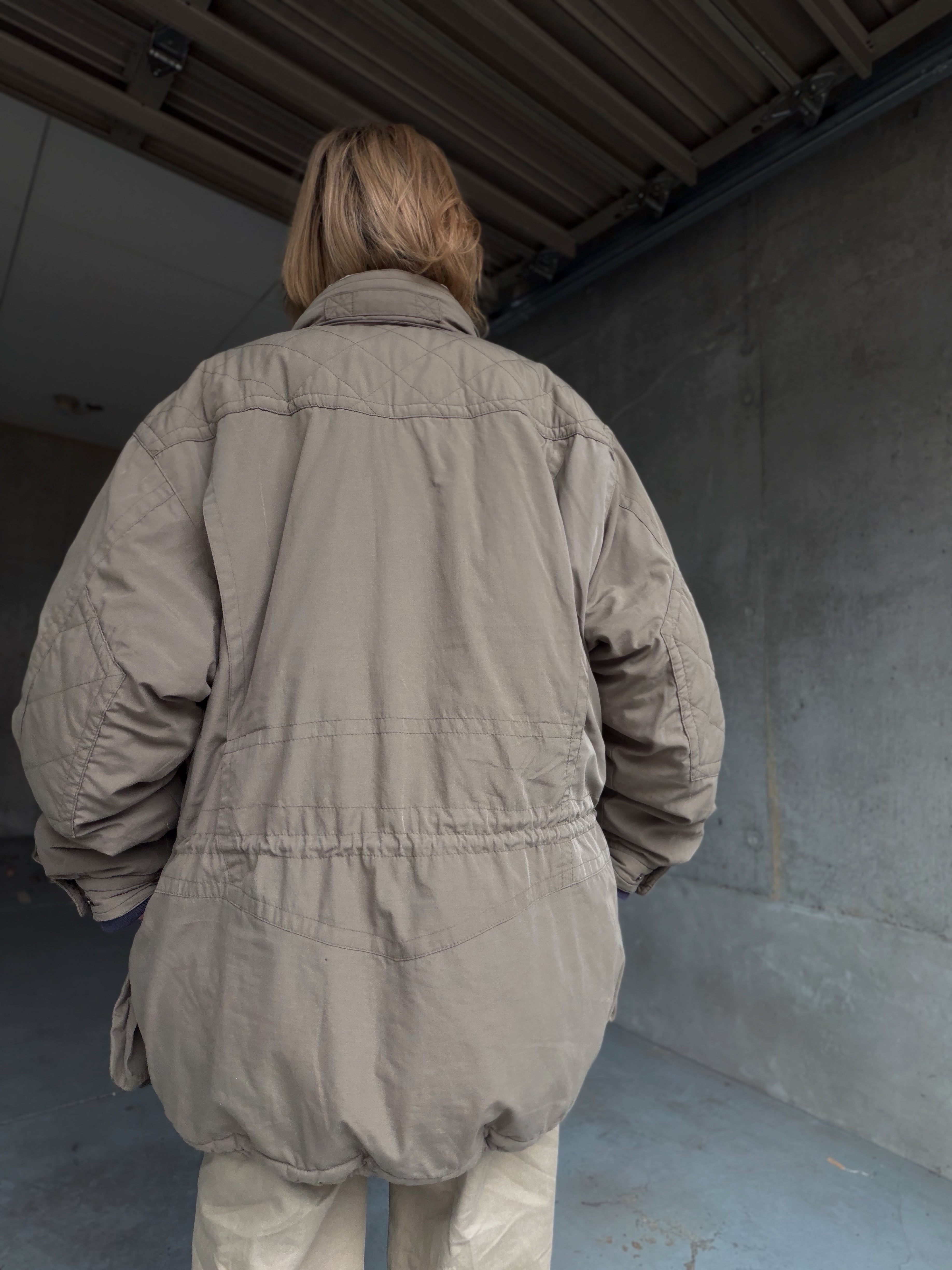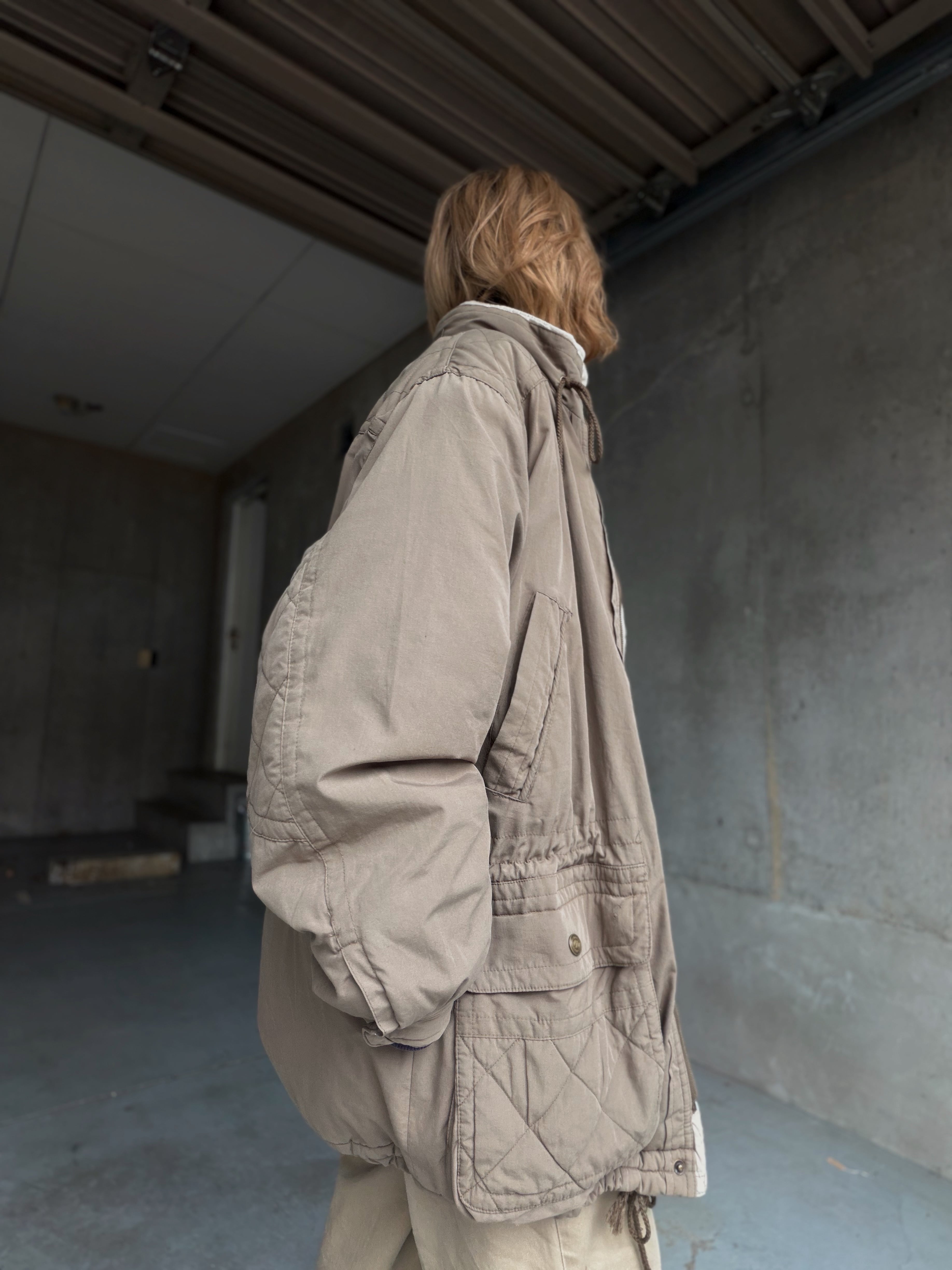 ウエスト、襟、裾と3箇所のドローコードでシルエット調整ができ、ラフに羽織っても、きゅっと絞ったり、丸みを出すのも◎