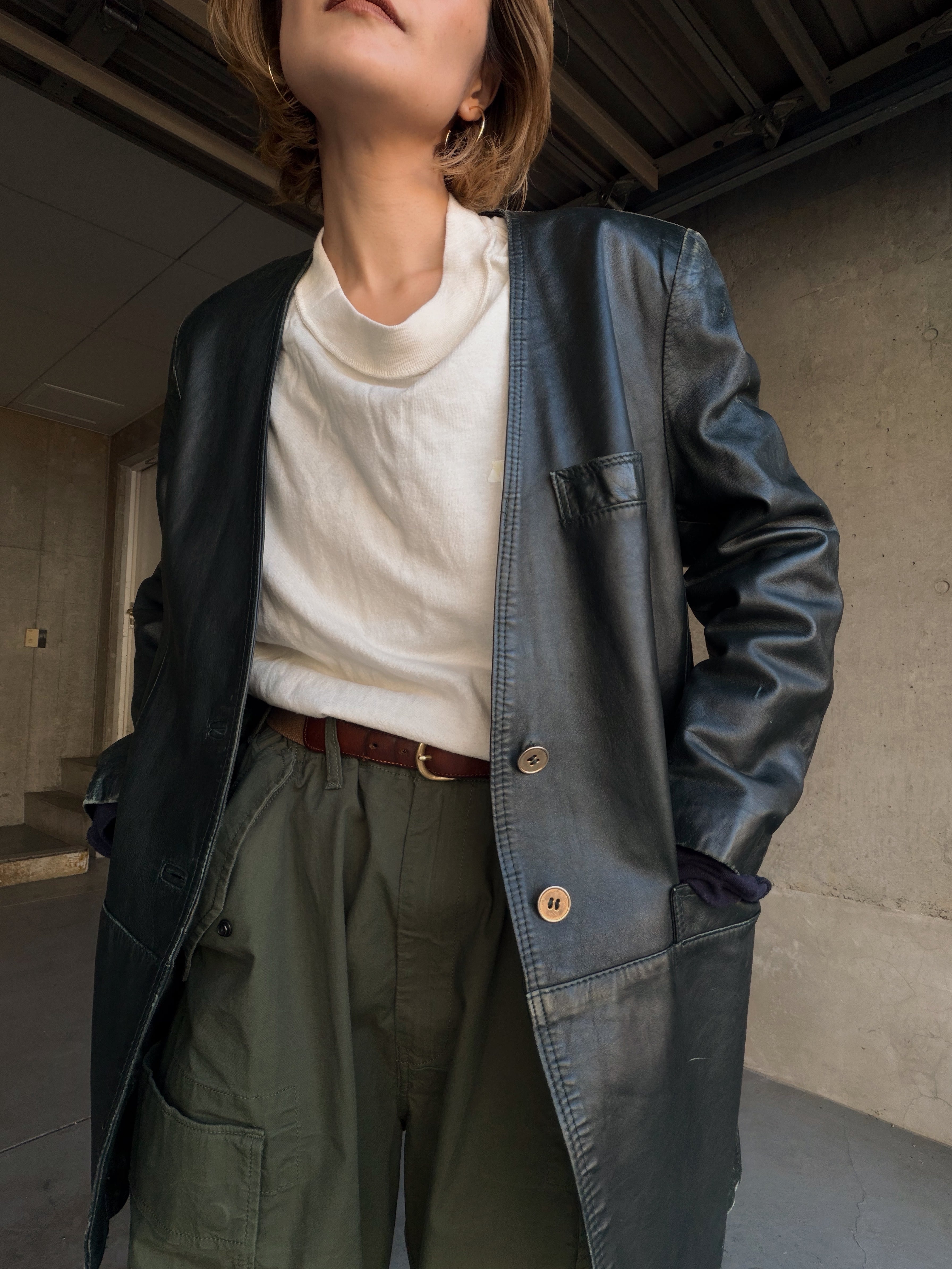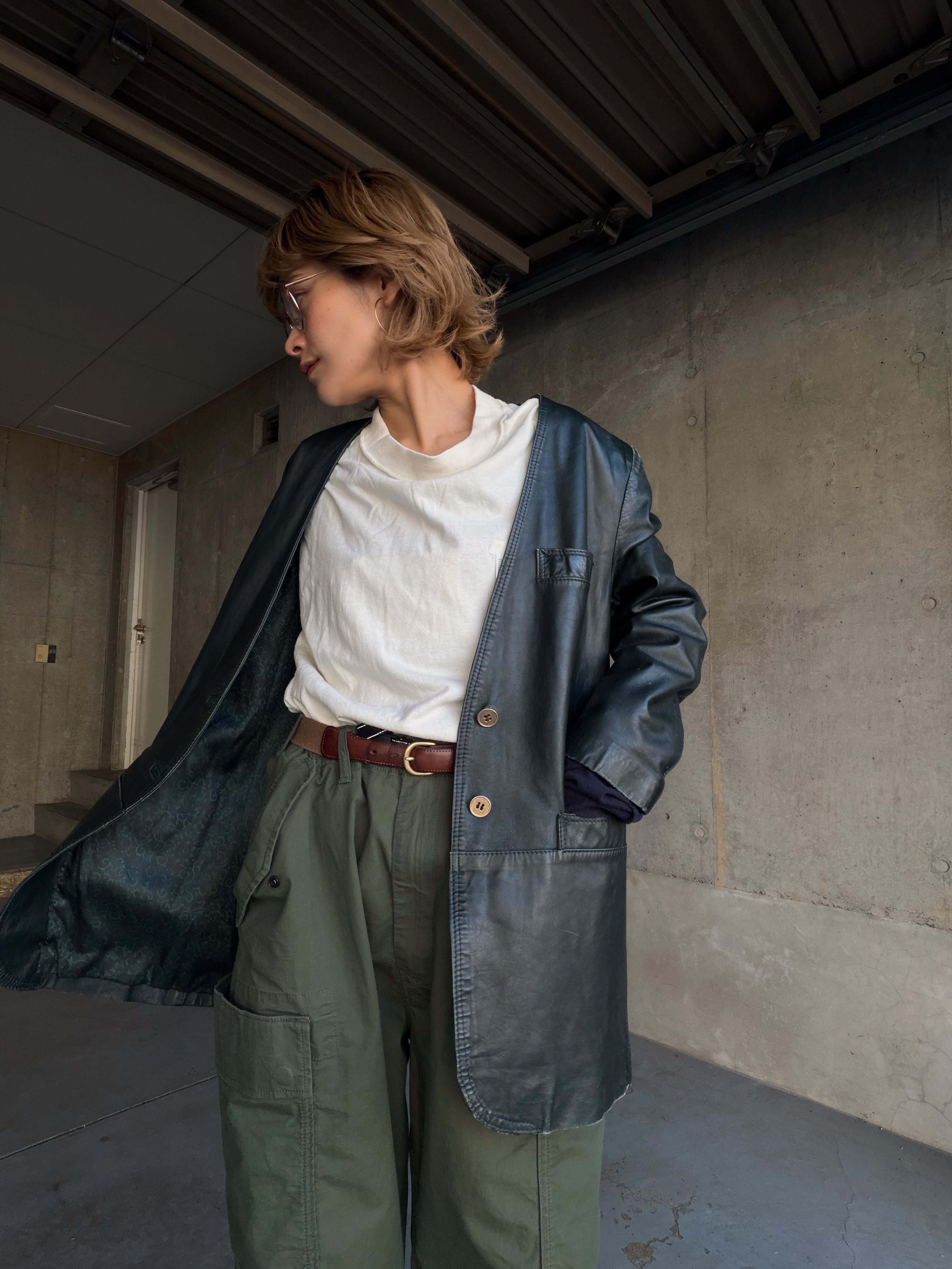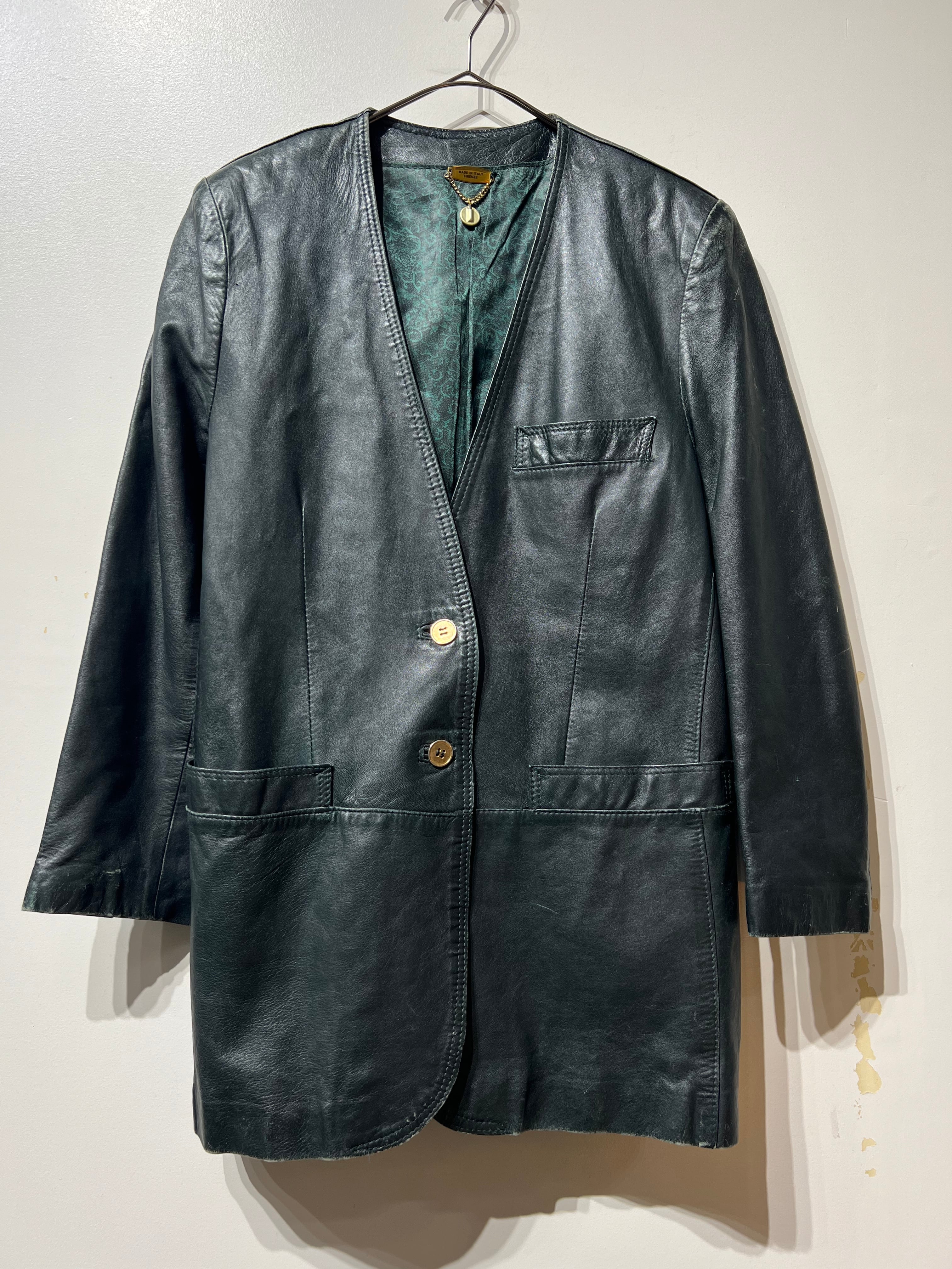 深みのあるグリーンレザージャケット。