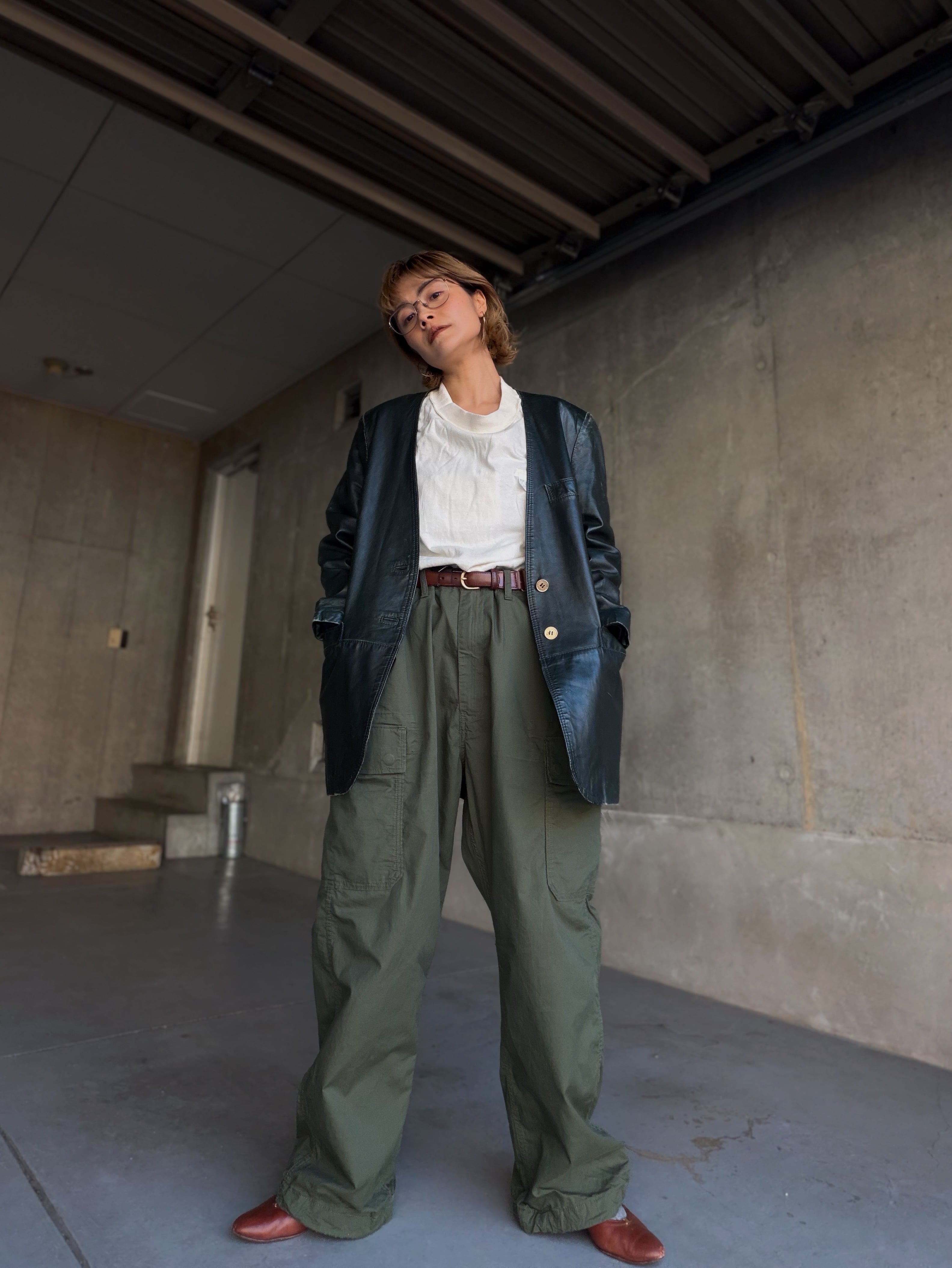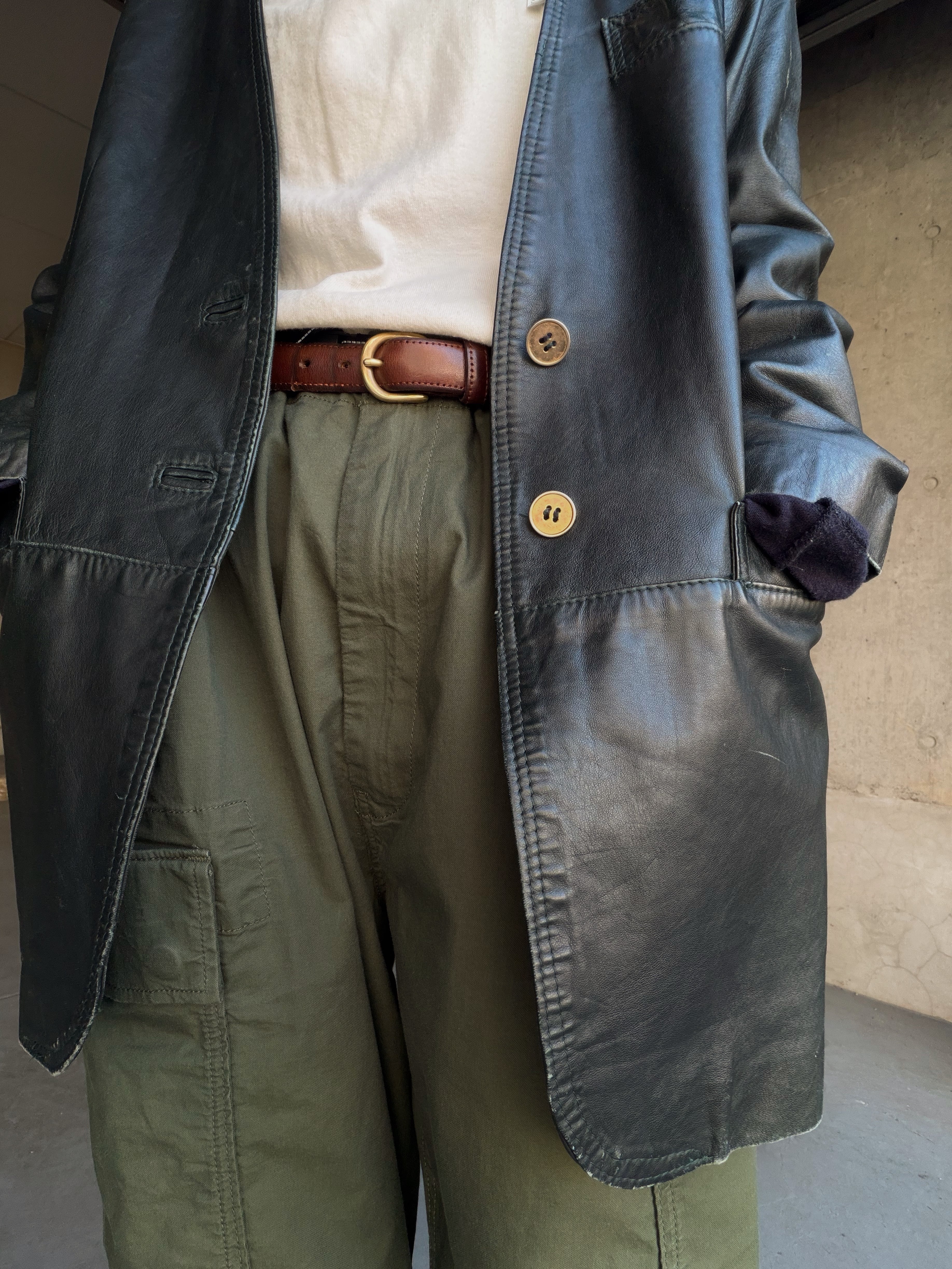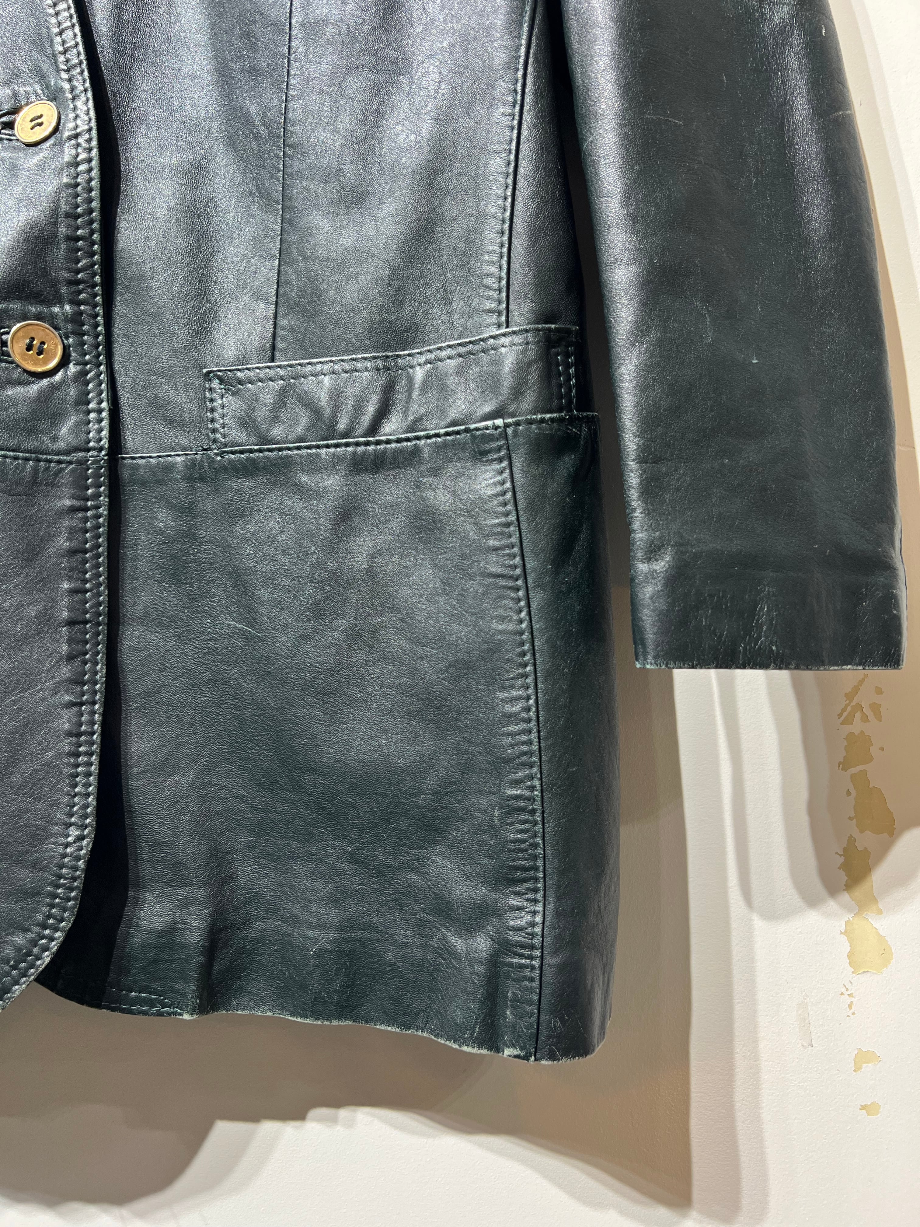 深みのあるグリーンレザージャケット。