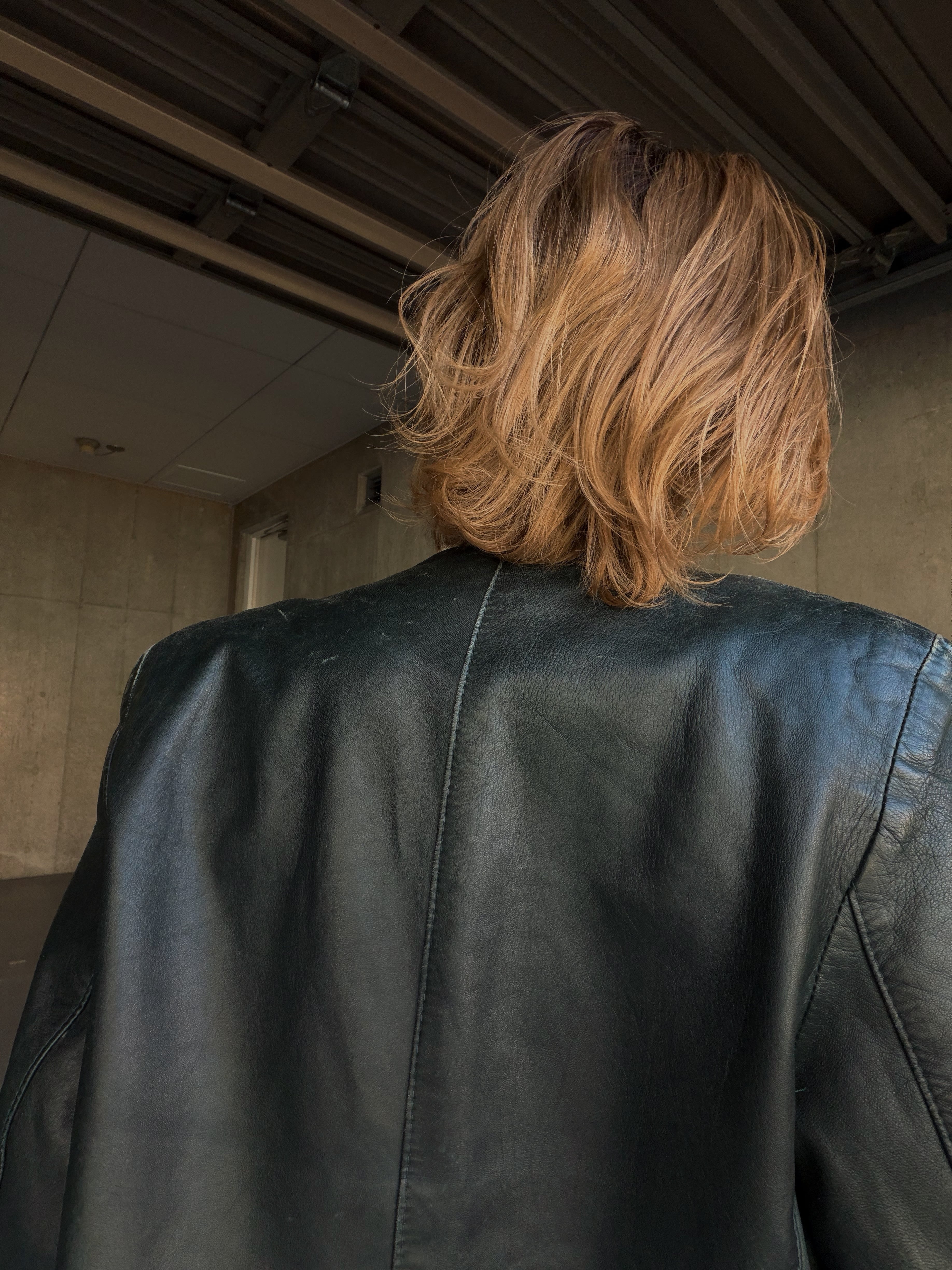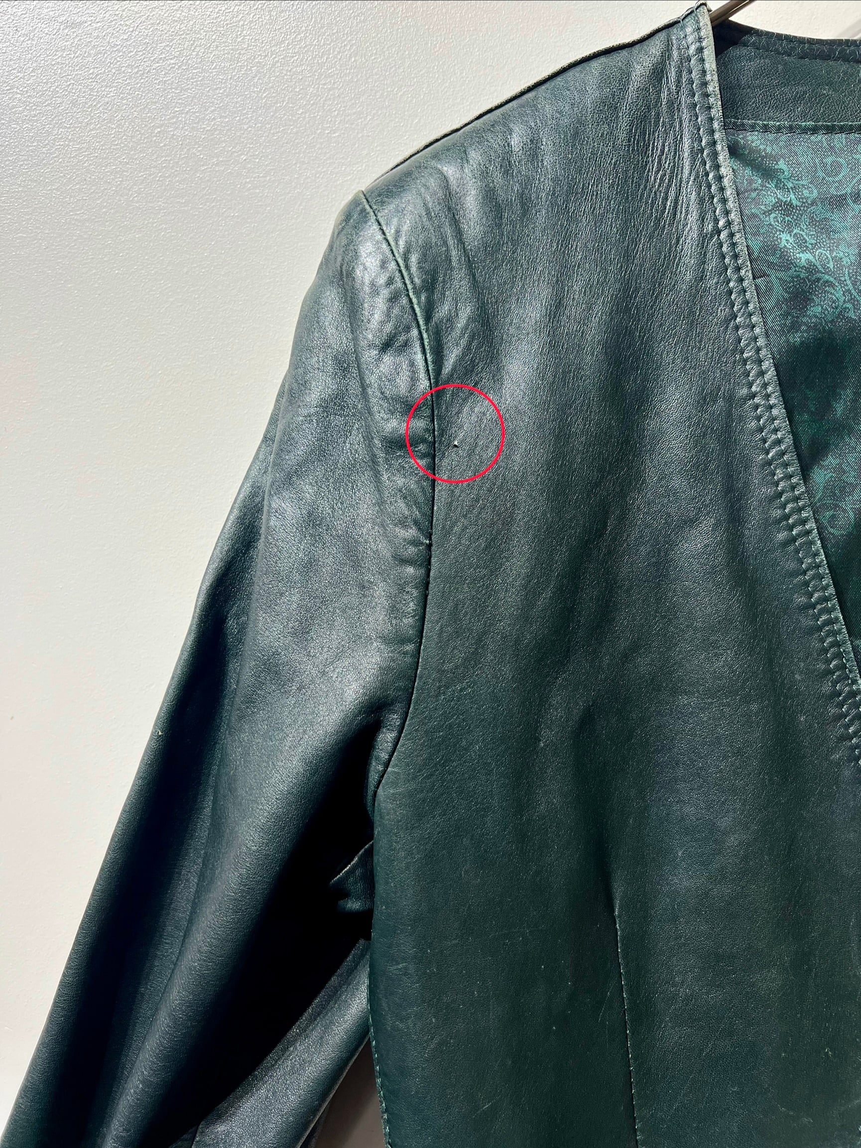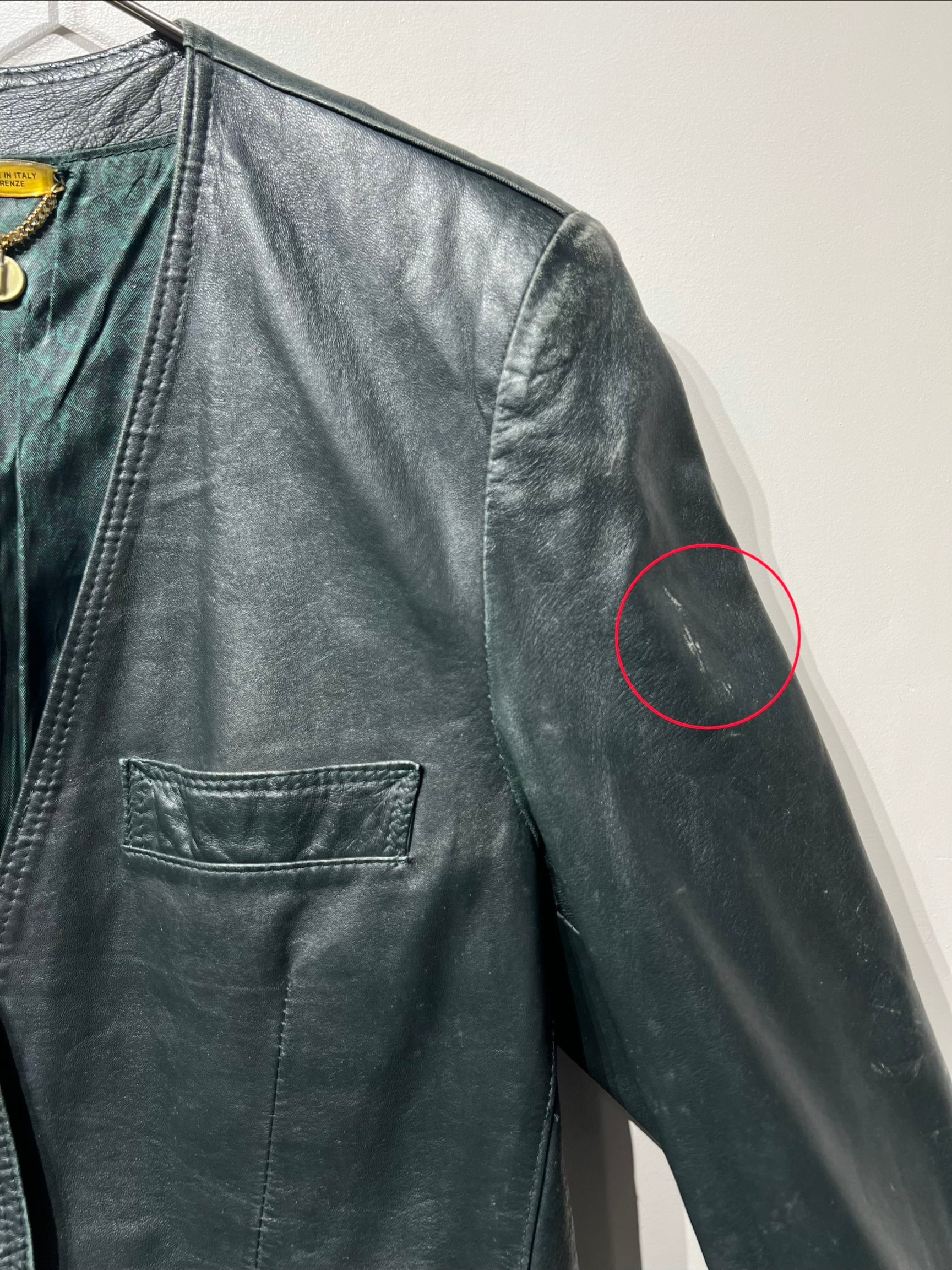 袖や肩にレザーの擦れは見られますが、