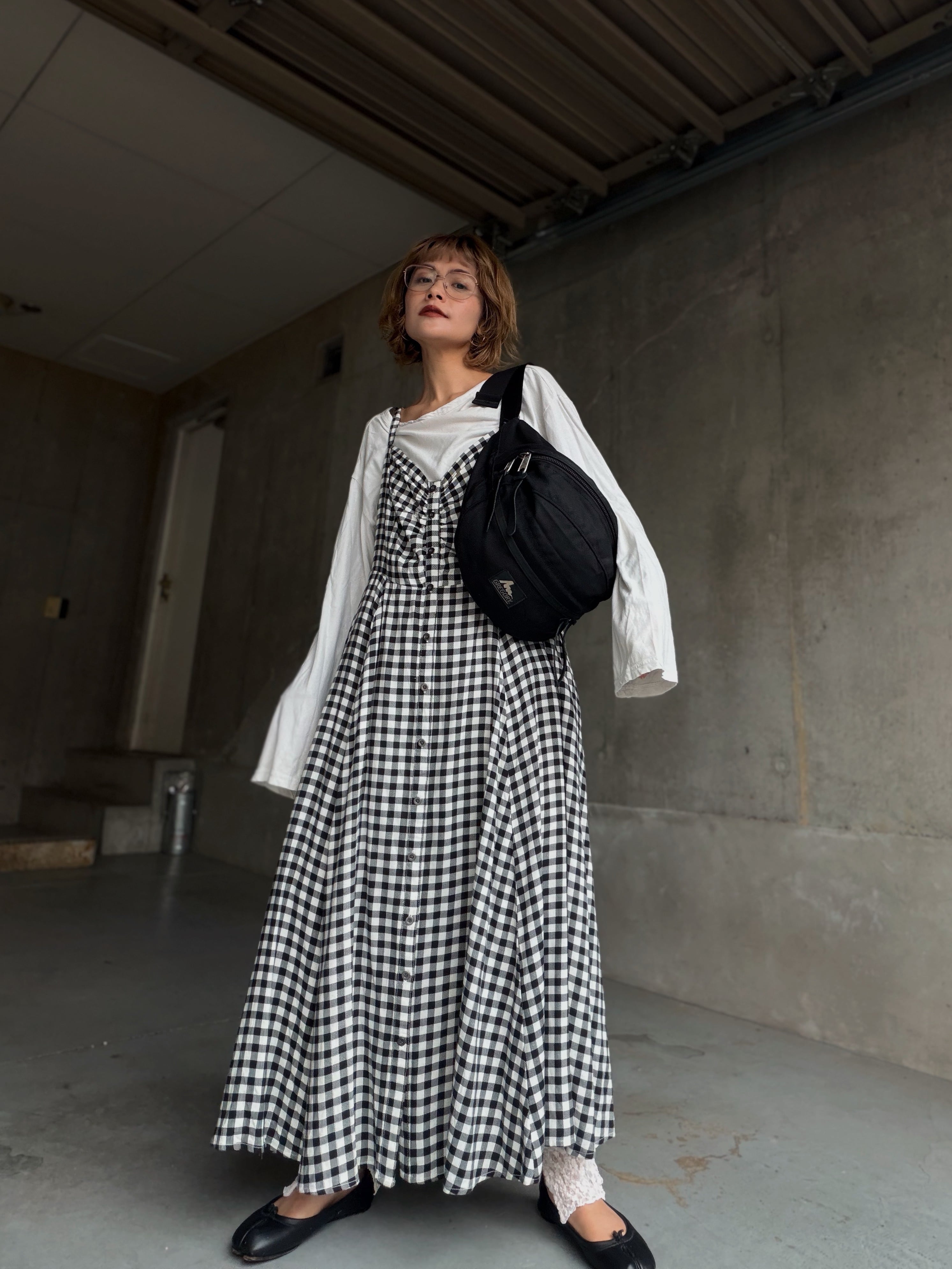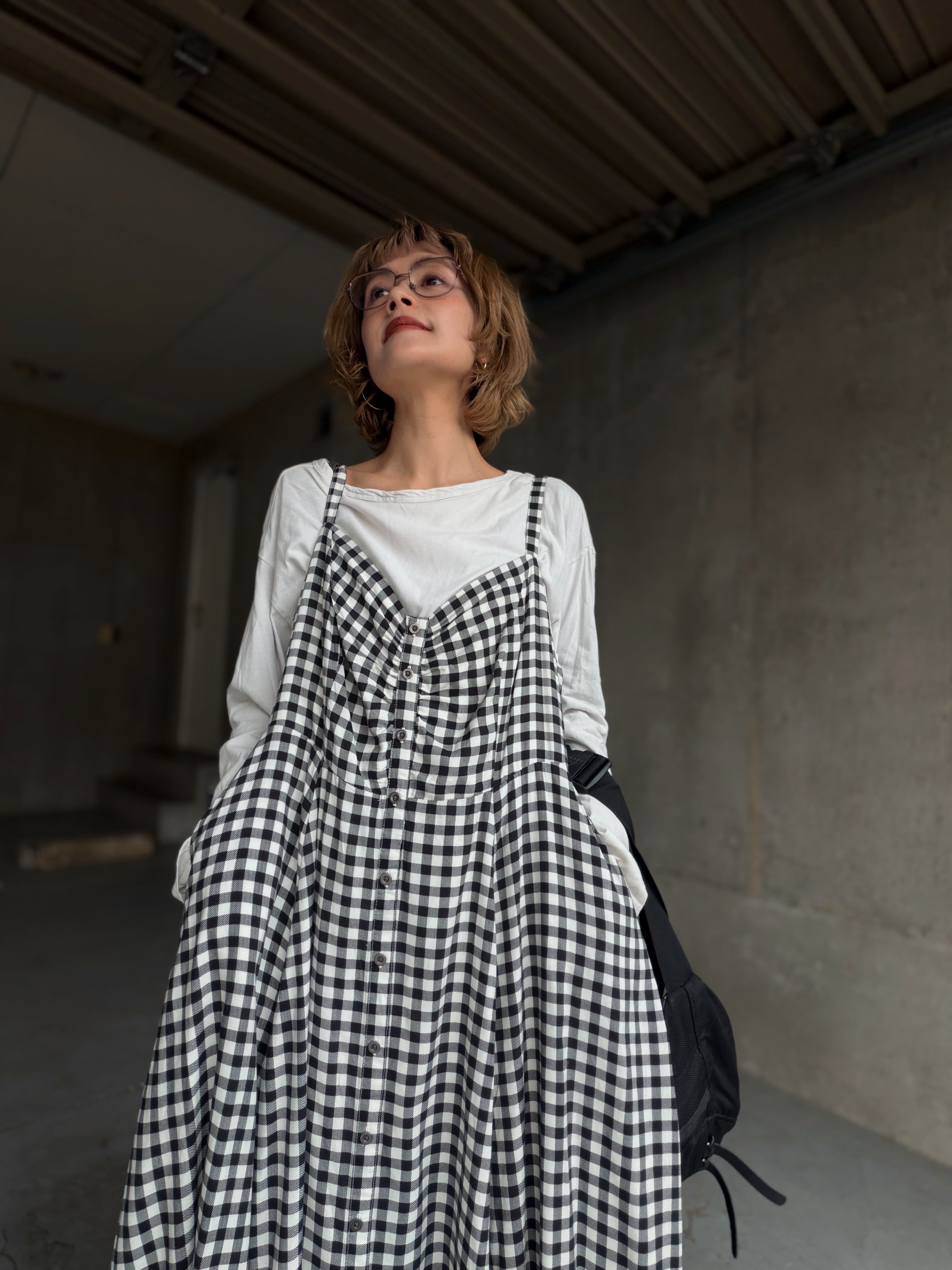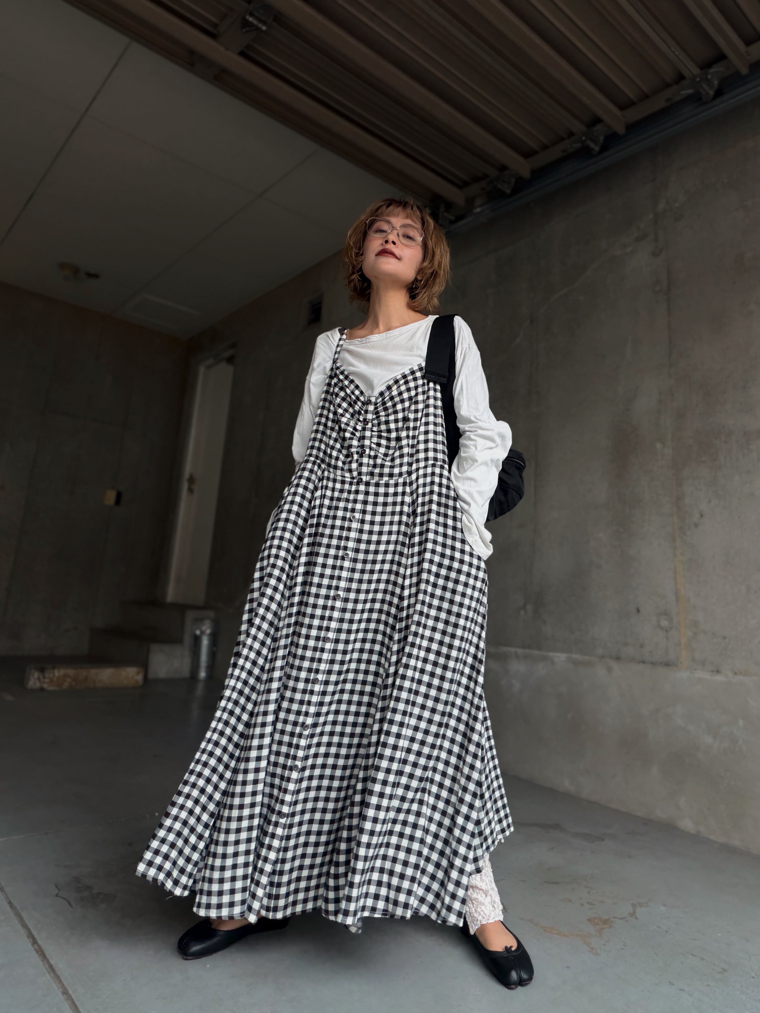 (OP148)Gingham check camisole dress