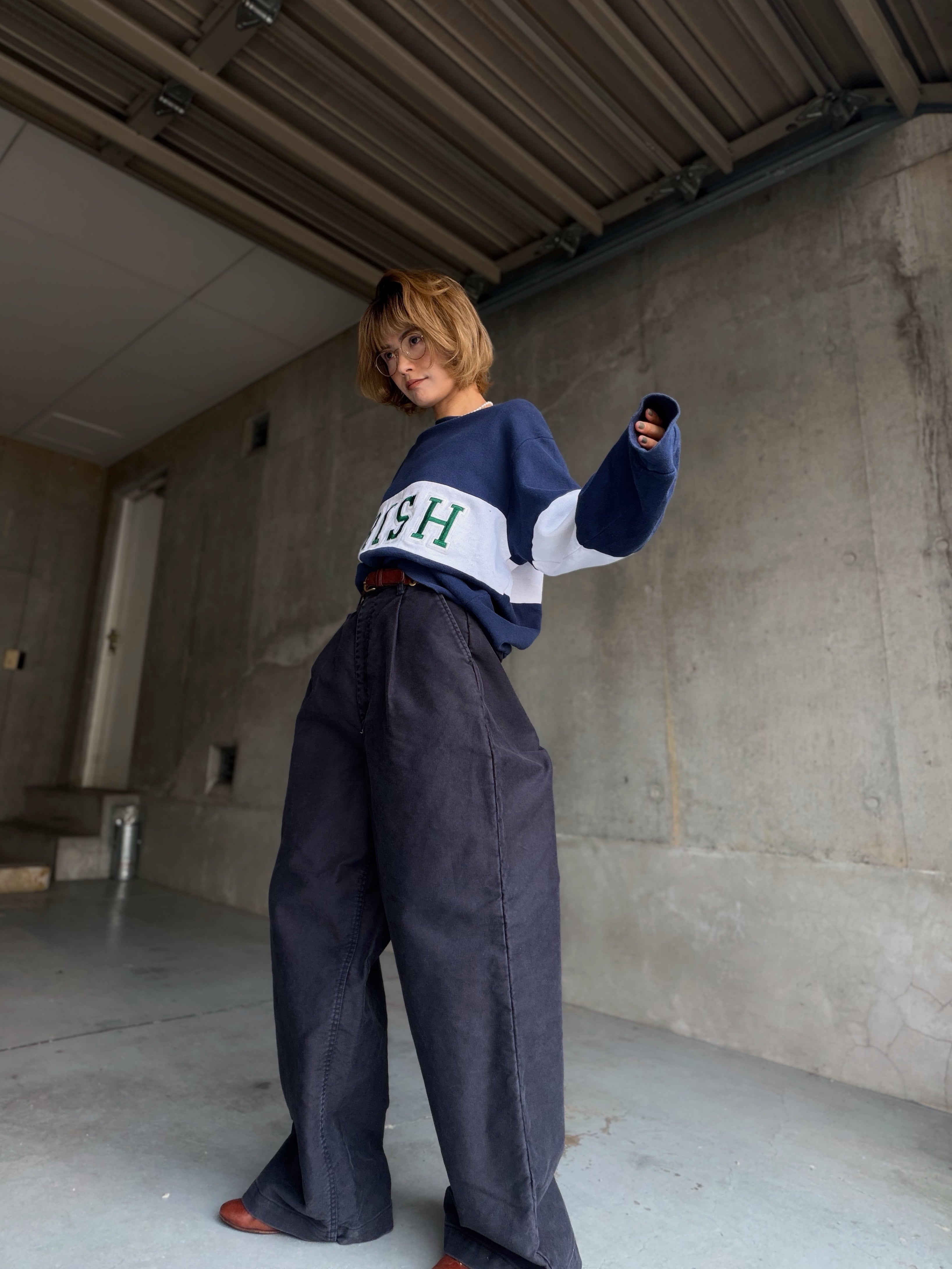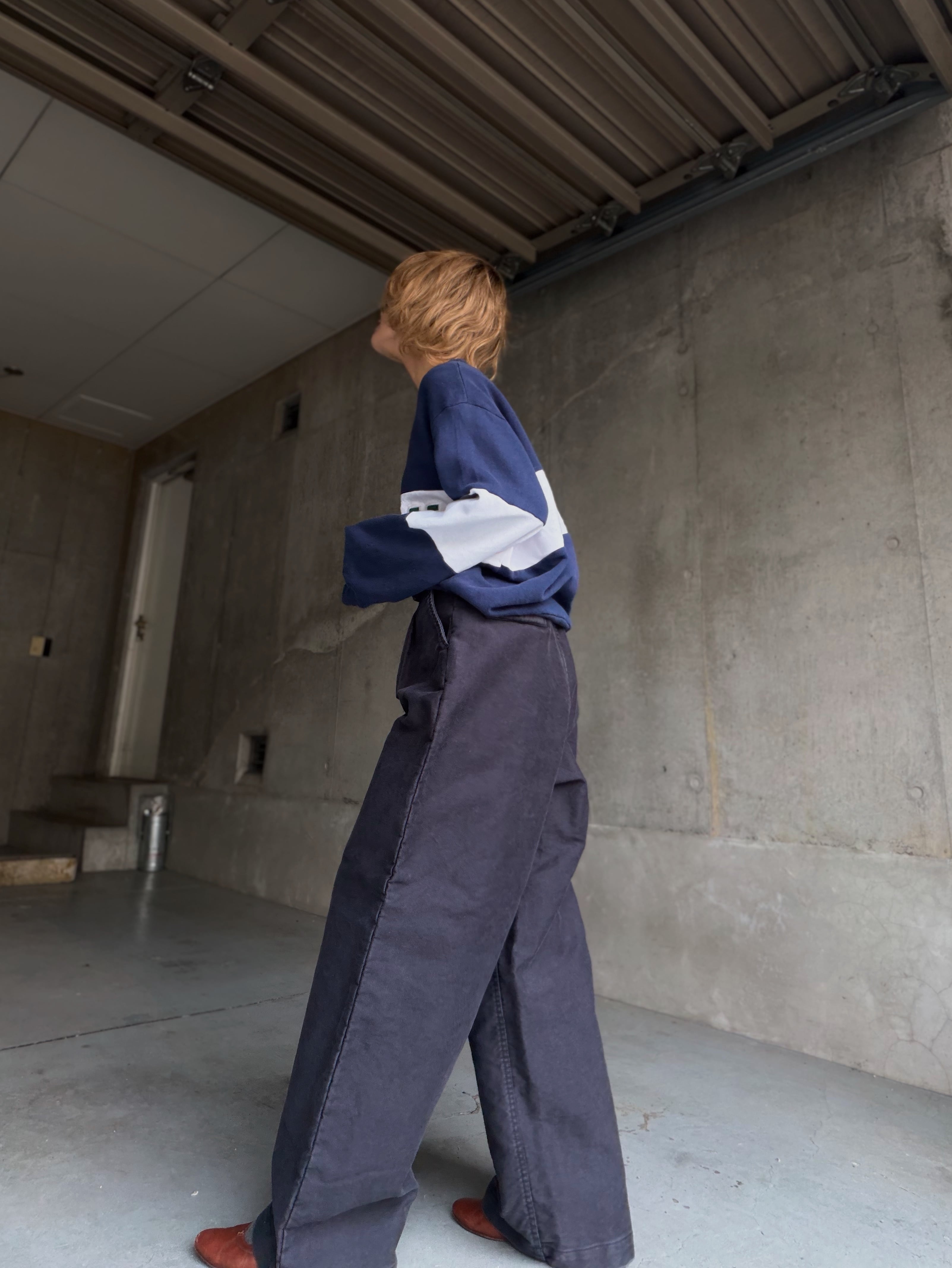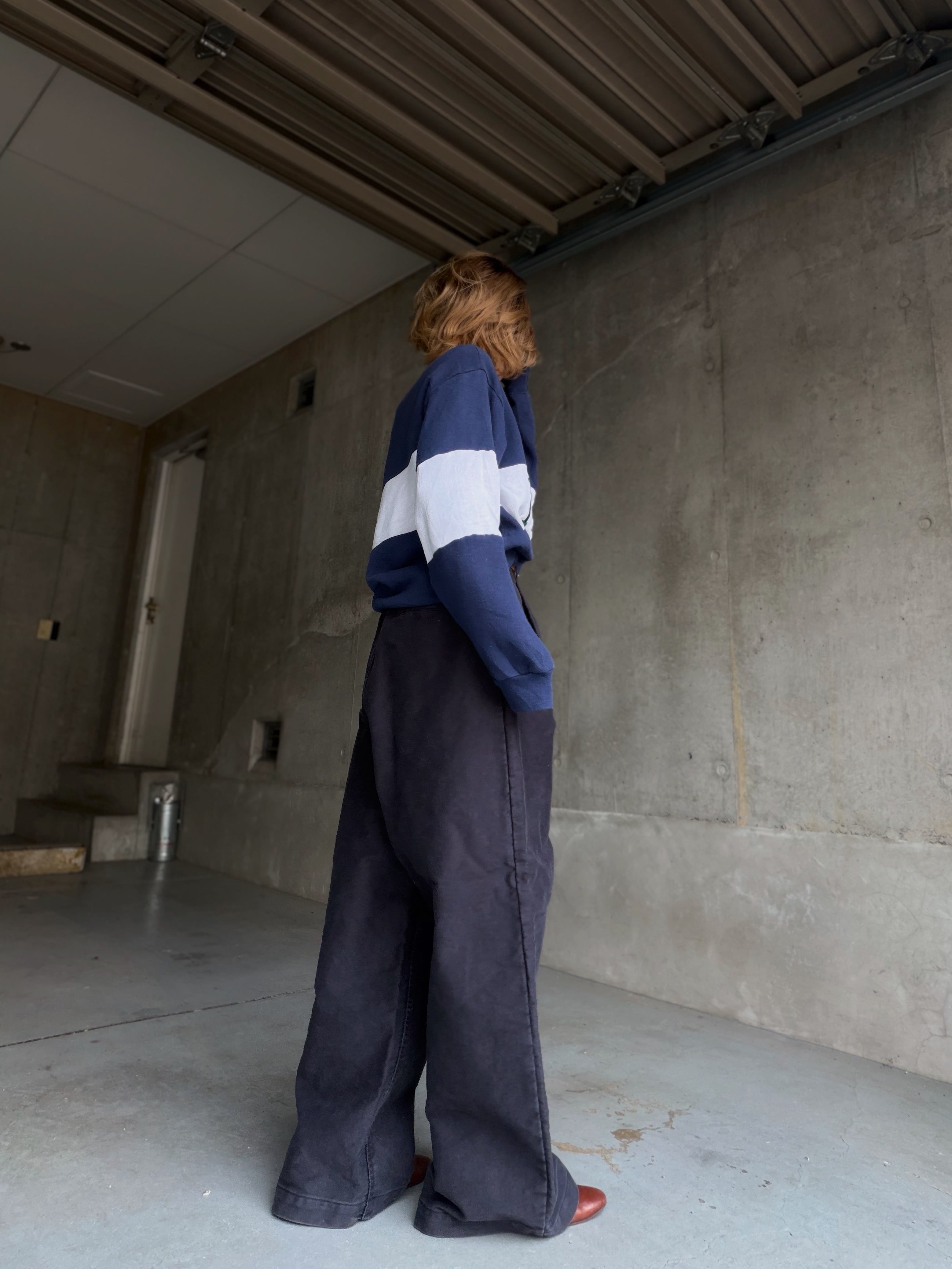 しっかりハイウエストたっぷりシルエット、ハードな生地による立体的なシルエットを存分に楽しめます。