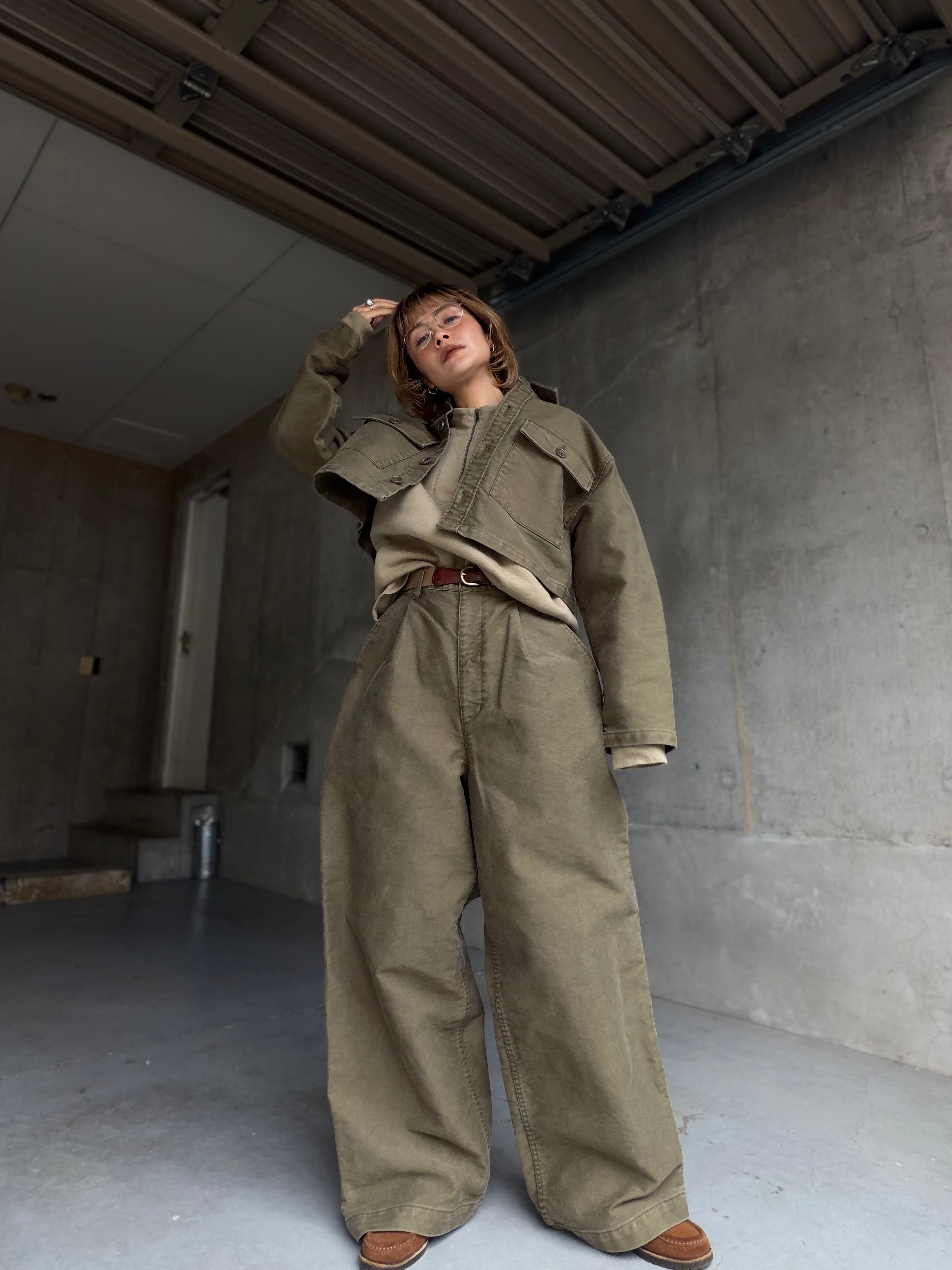 【Atelier Mont Kemmel】heavy cotton tac wide pants / wash kahaki