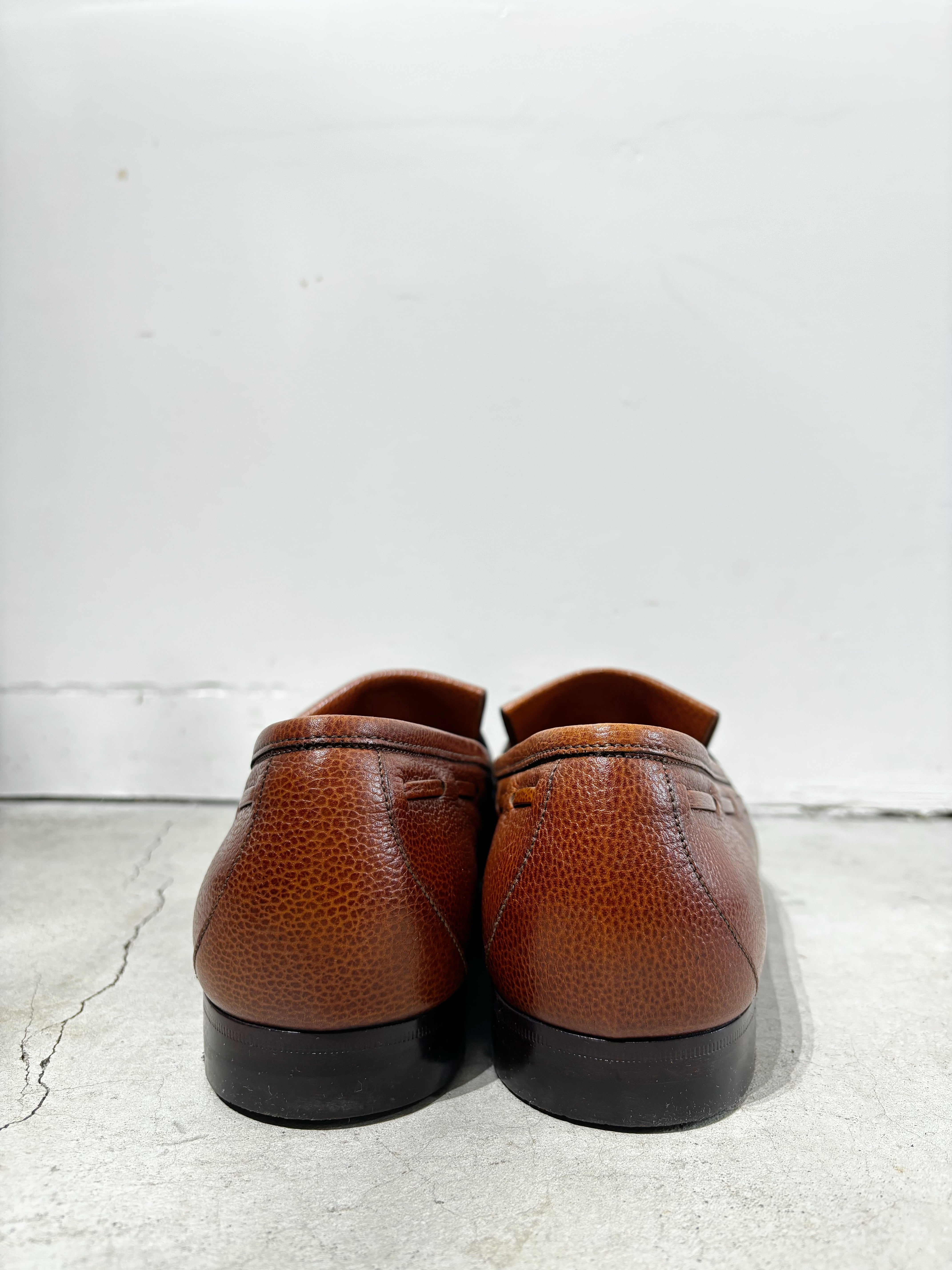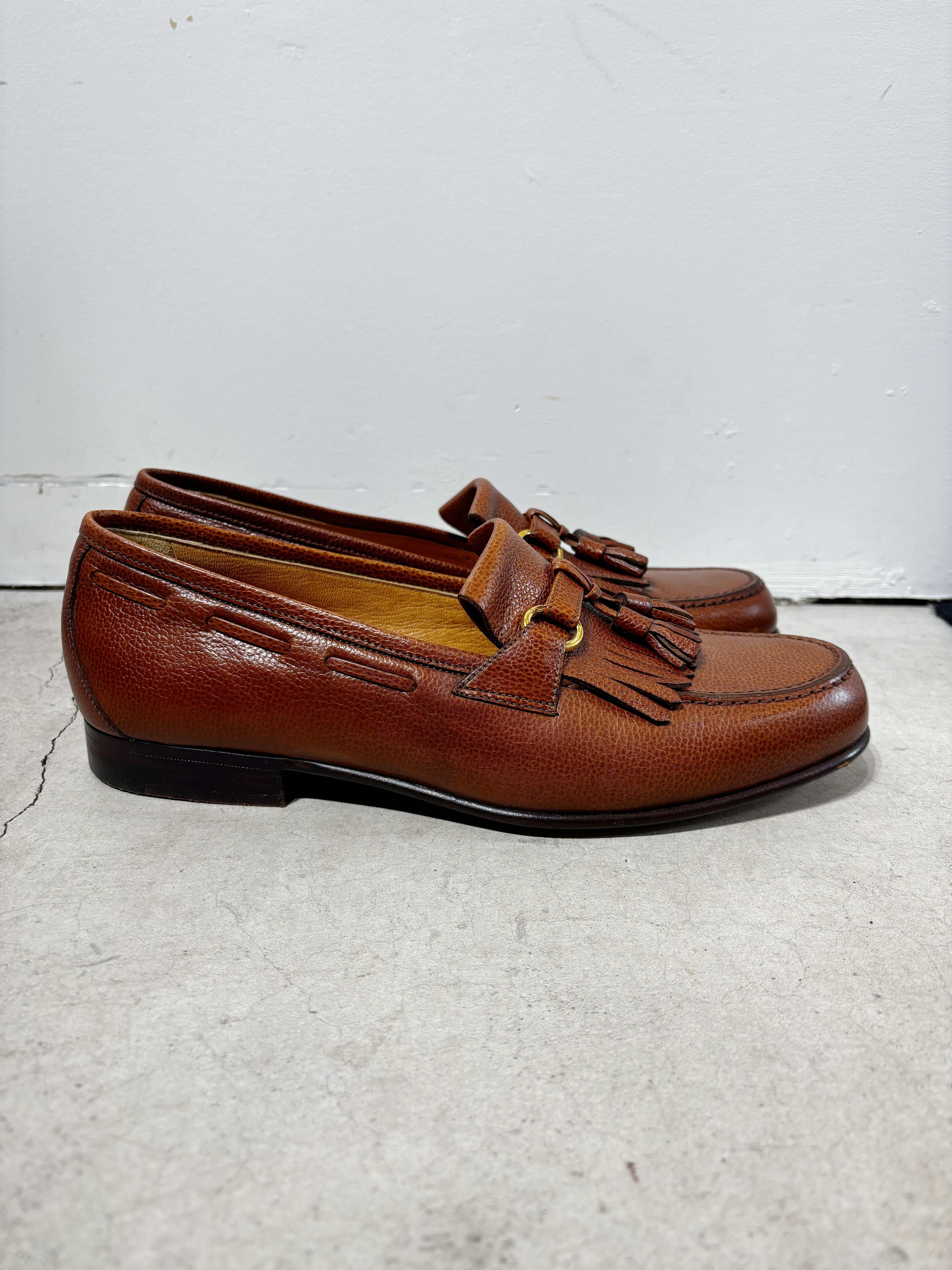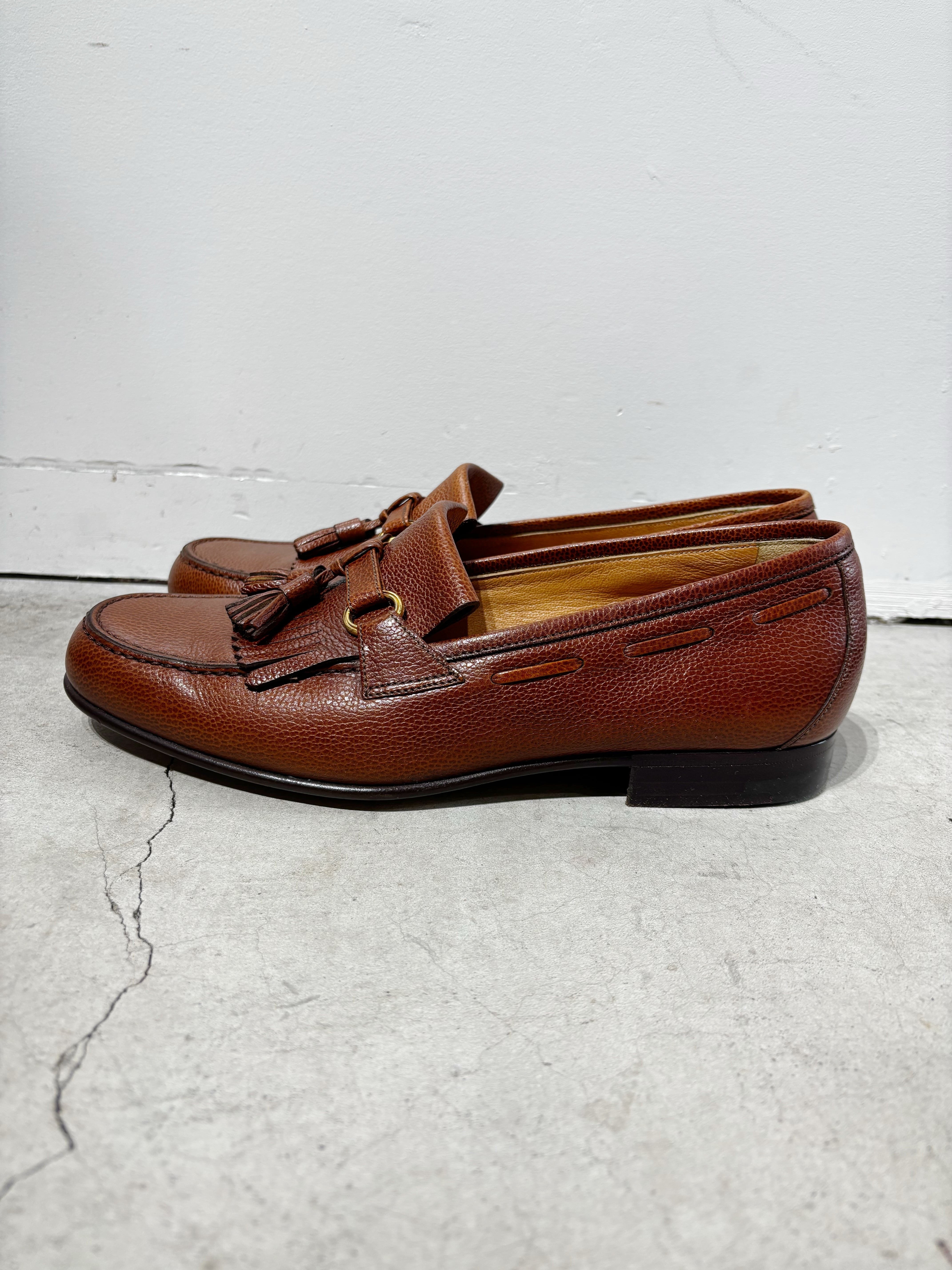 (AC981)Pebbled leather tassel loafers made in Italy