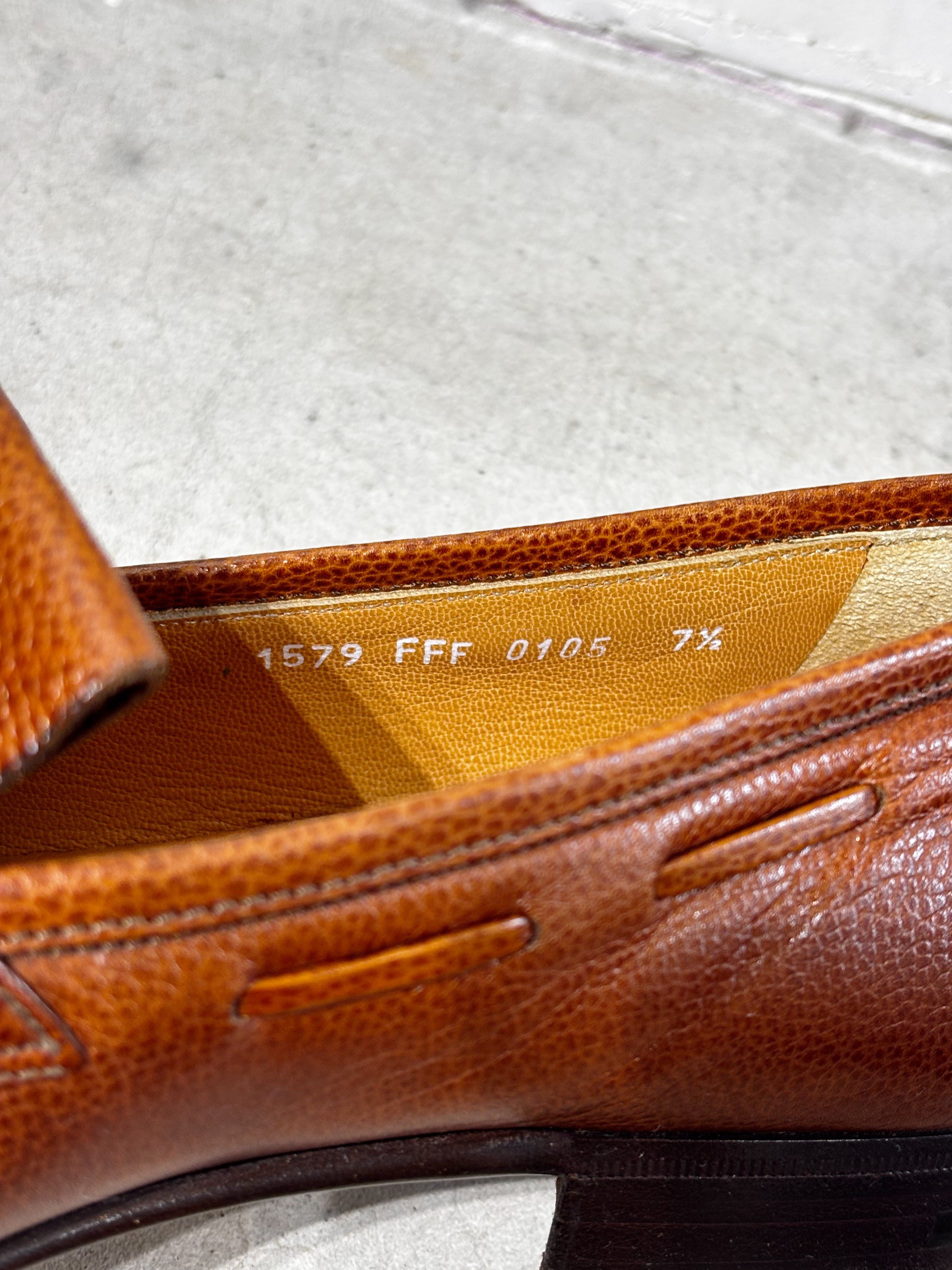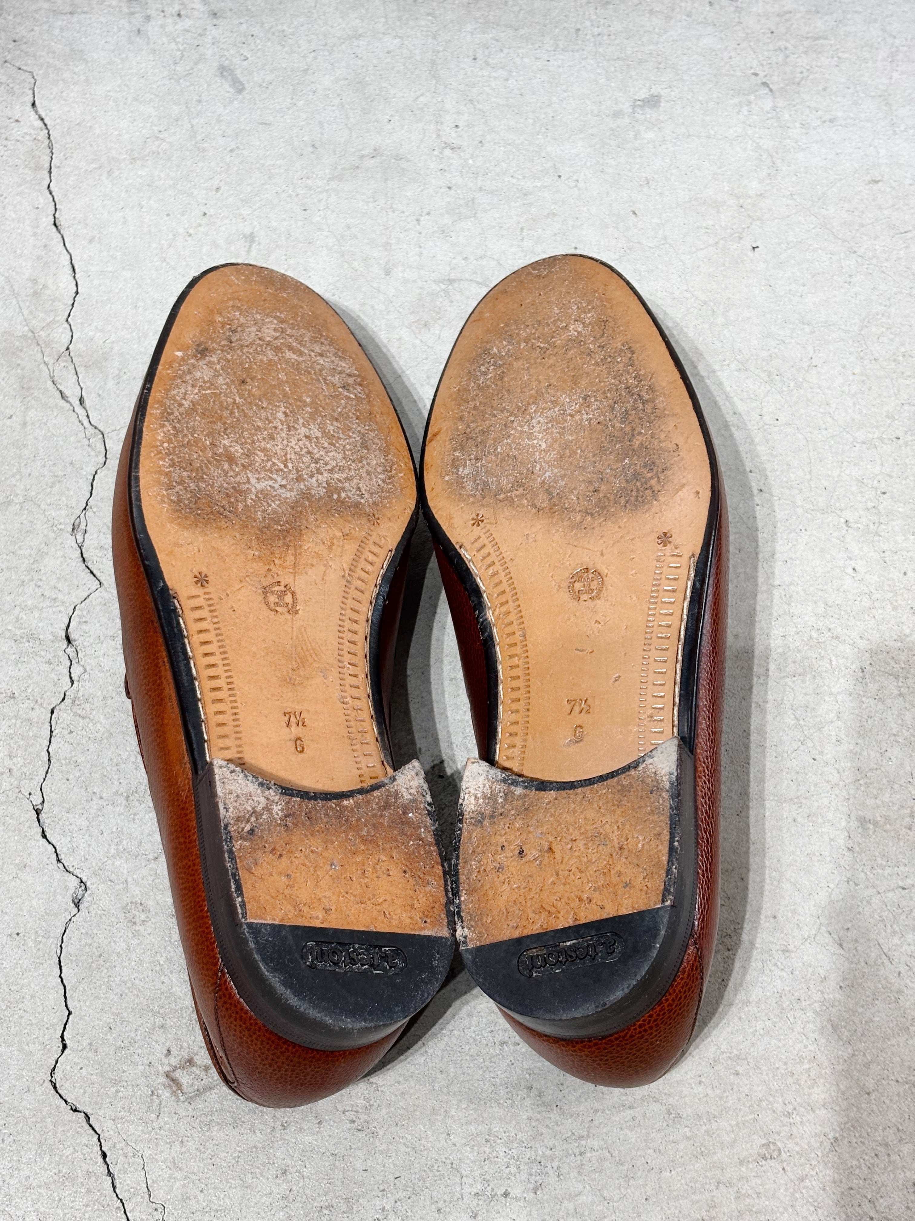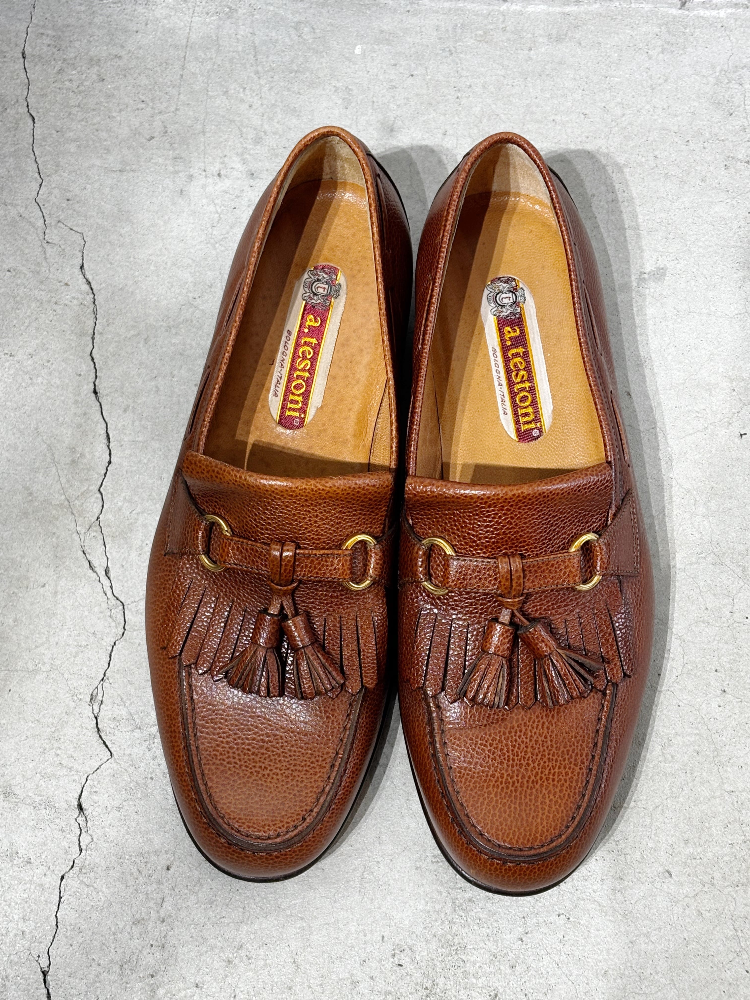 (AC981)Pebbled leather tassel loafers made in Italy