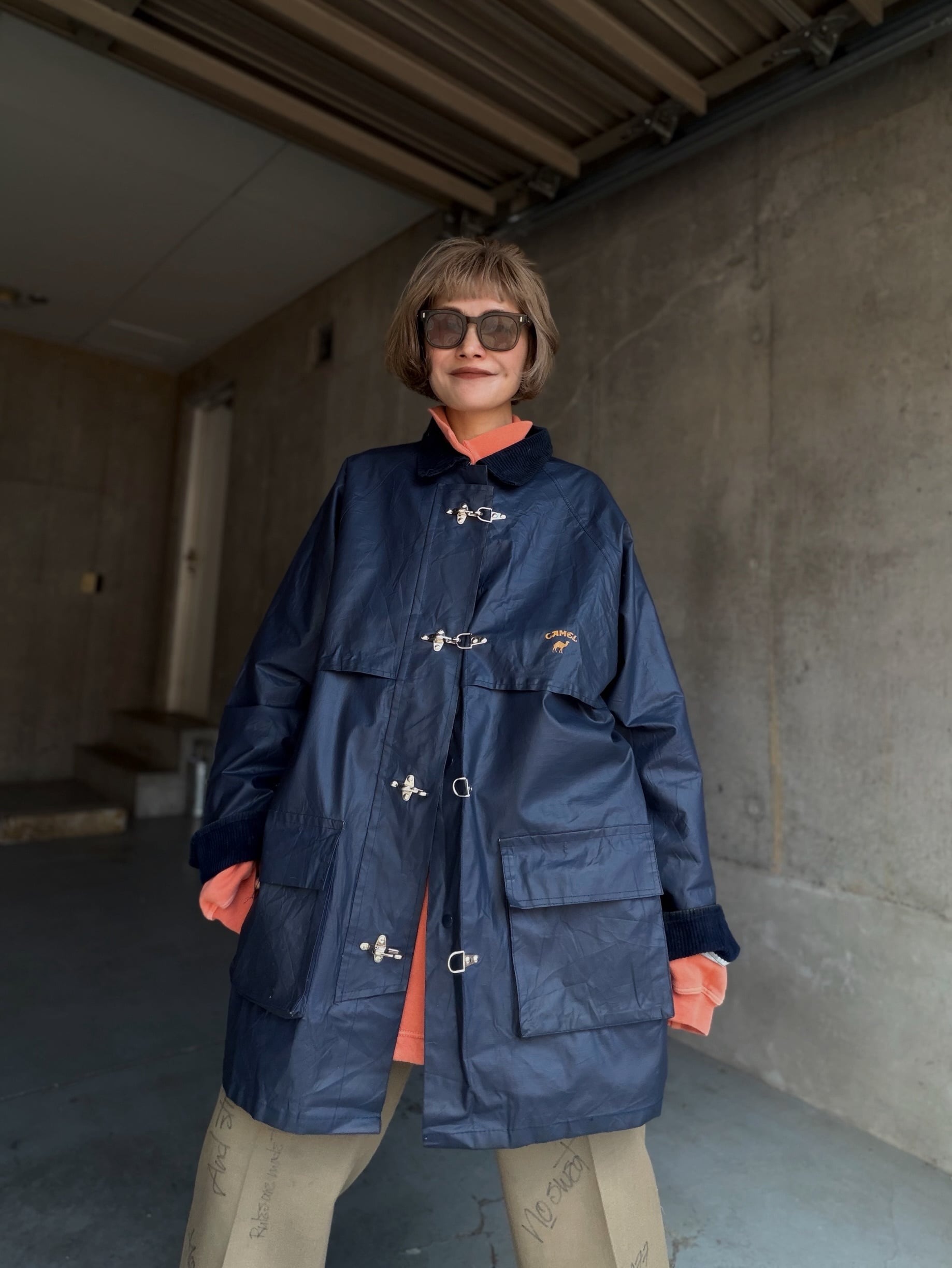 90's CAMELのロゴ入り、PVC素材のファイヤーマンジャケット。