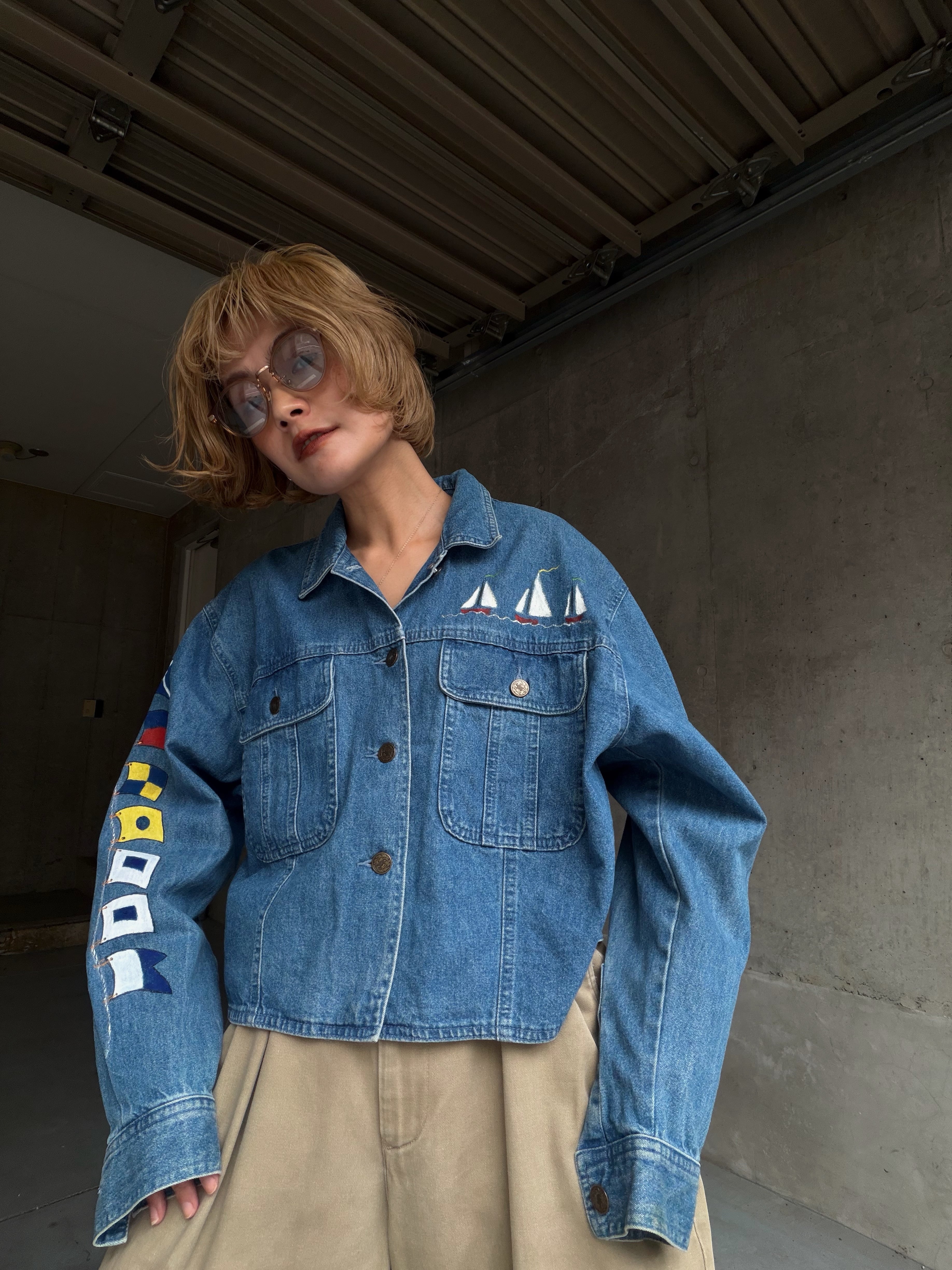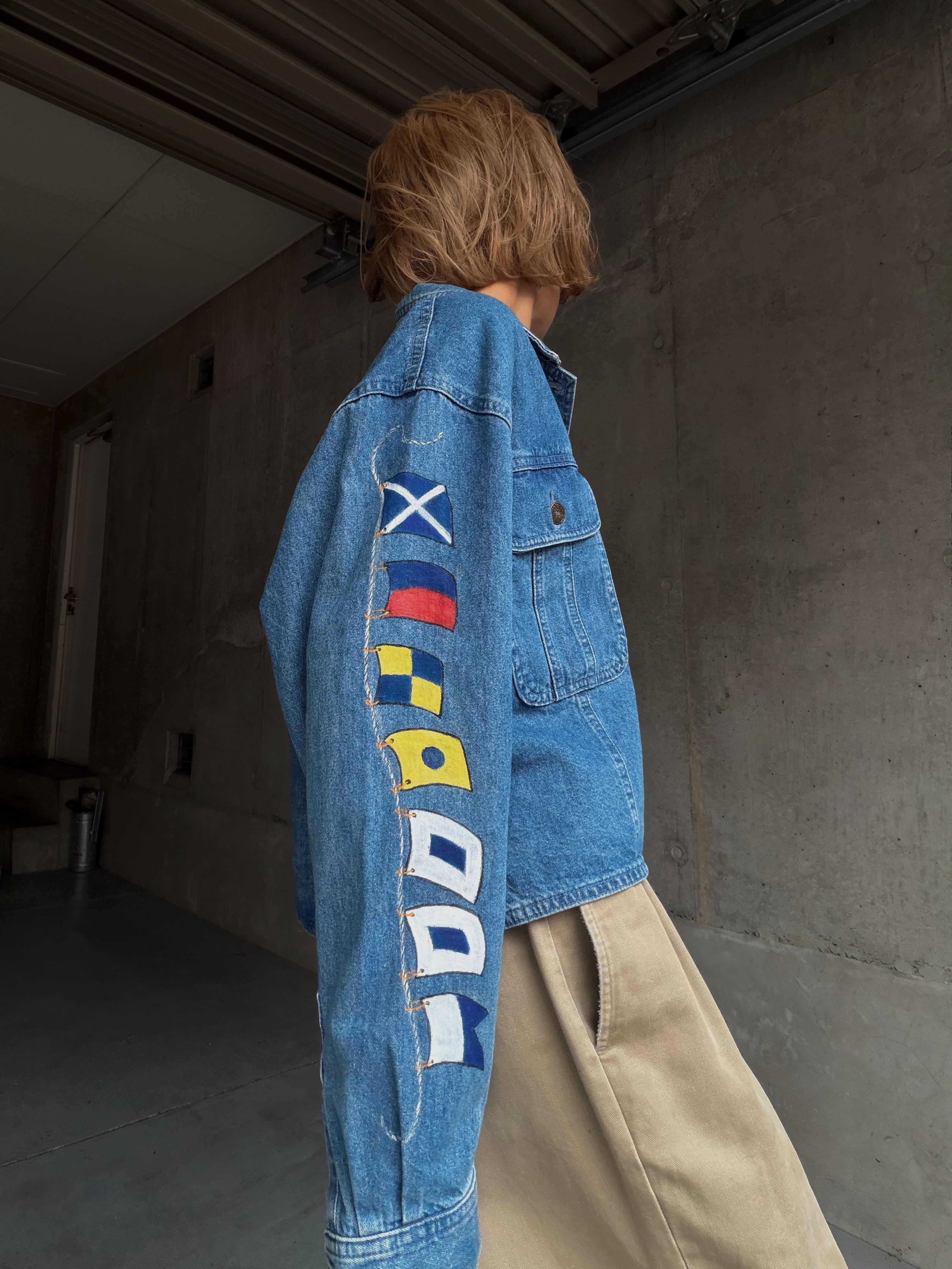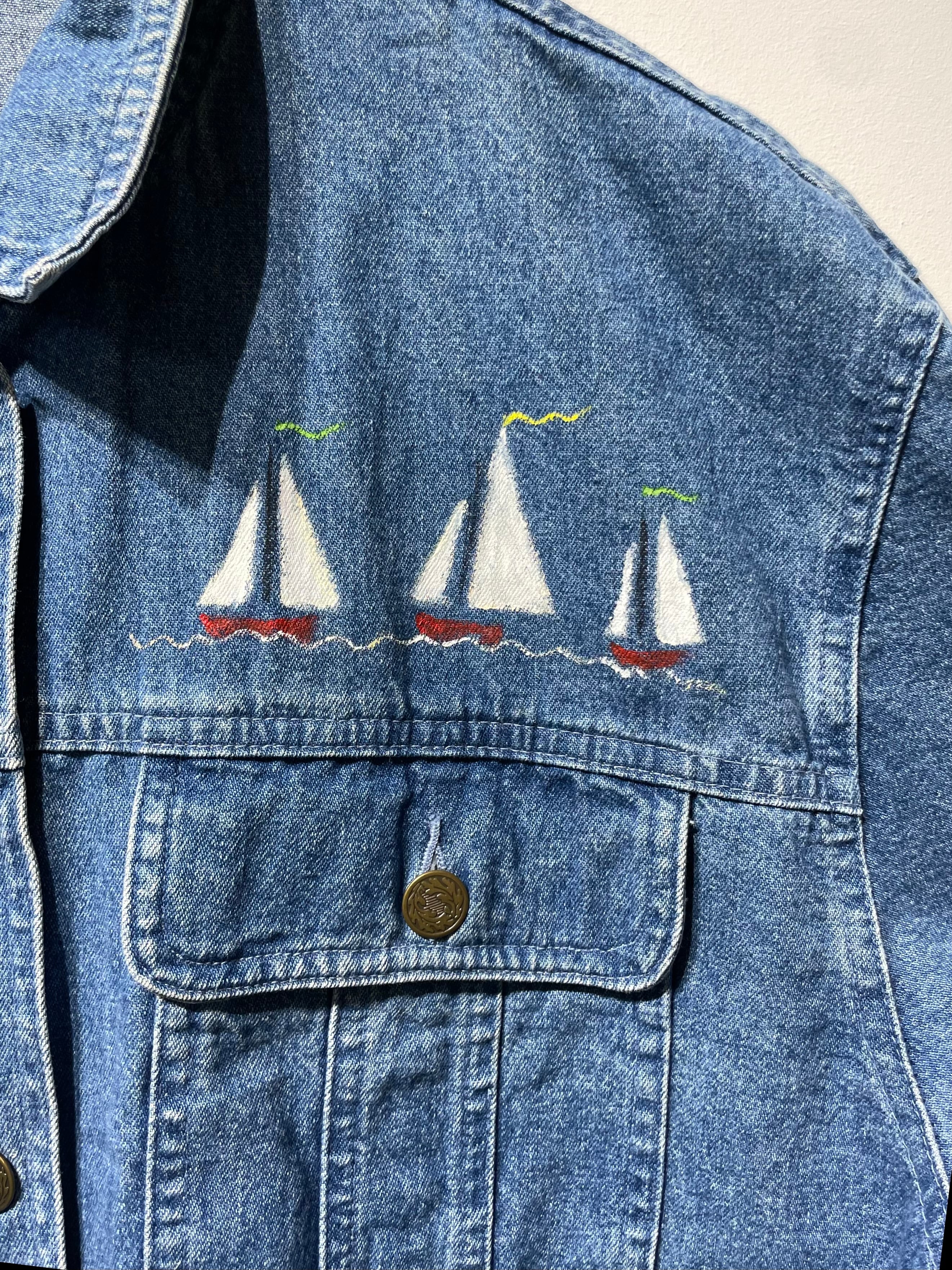 (OT1523)Marin hand painted denim skirt jacket
