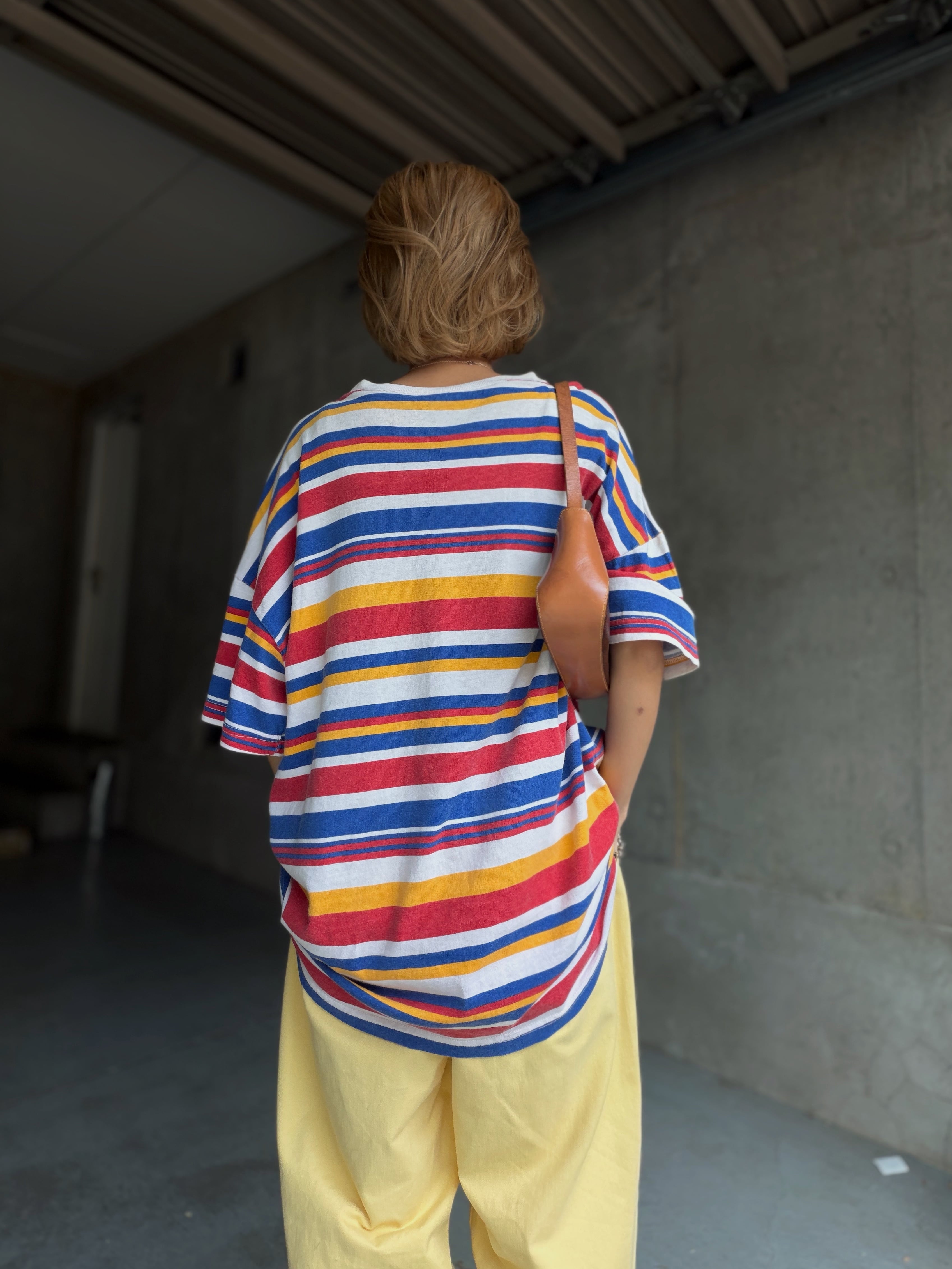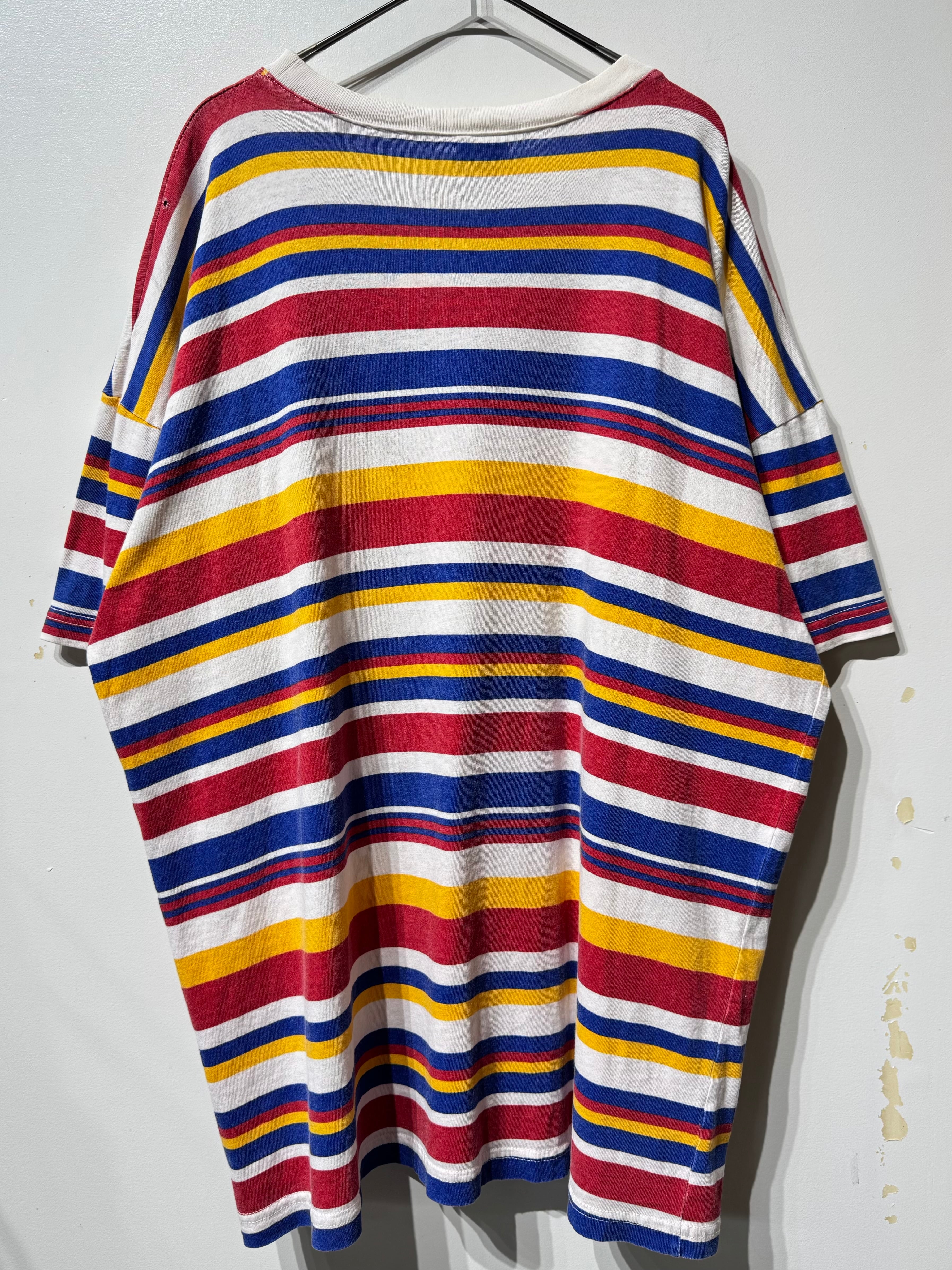 (CS2269)UNIONBAY multi colored stripes T-shirt made in USA
