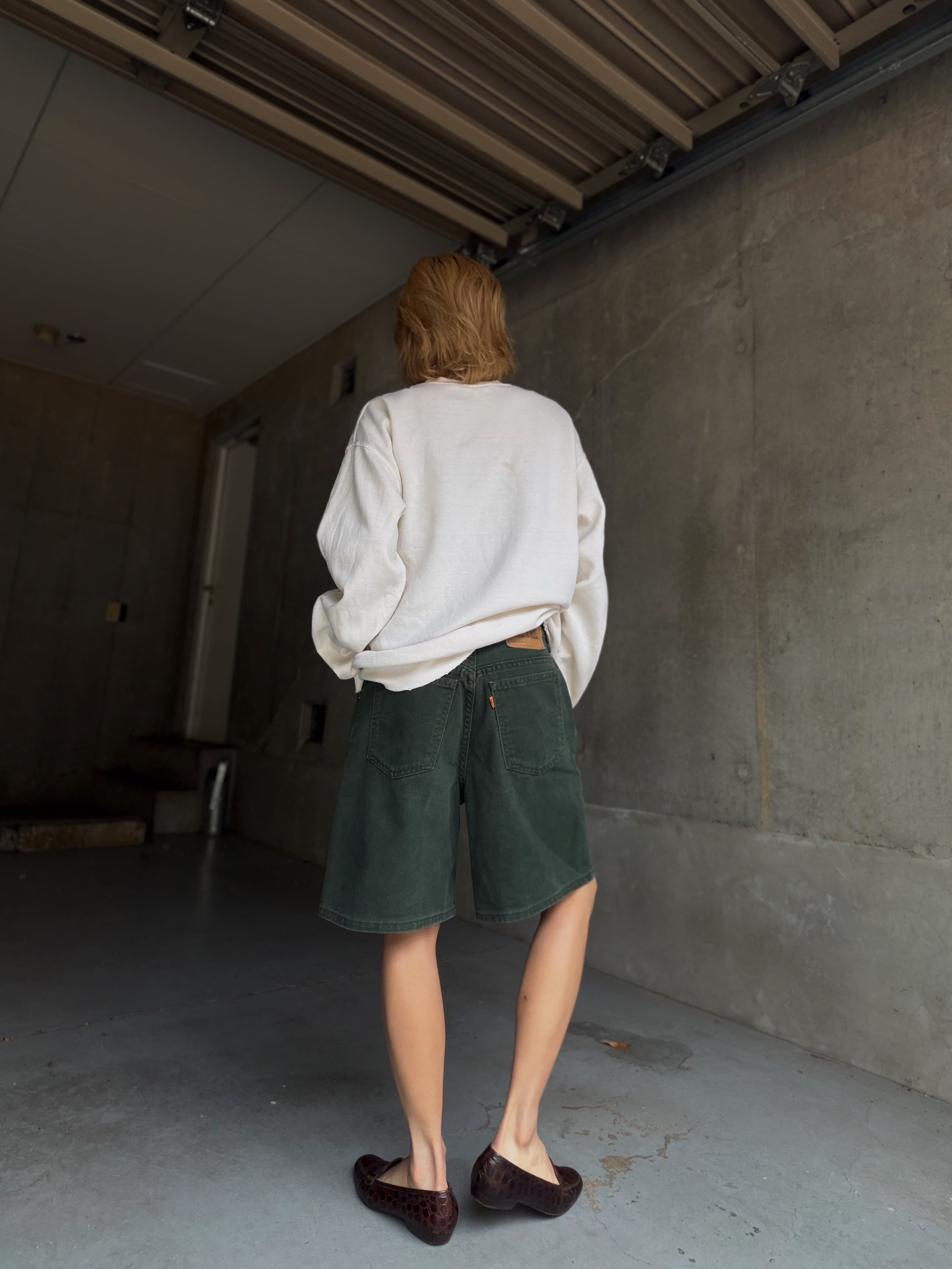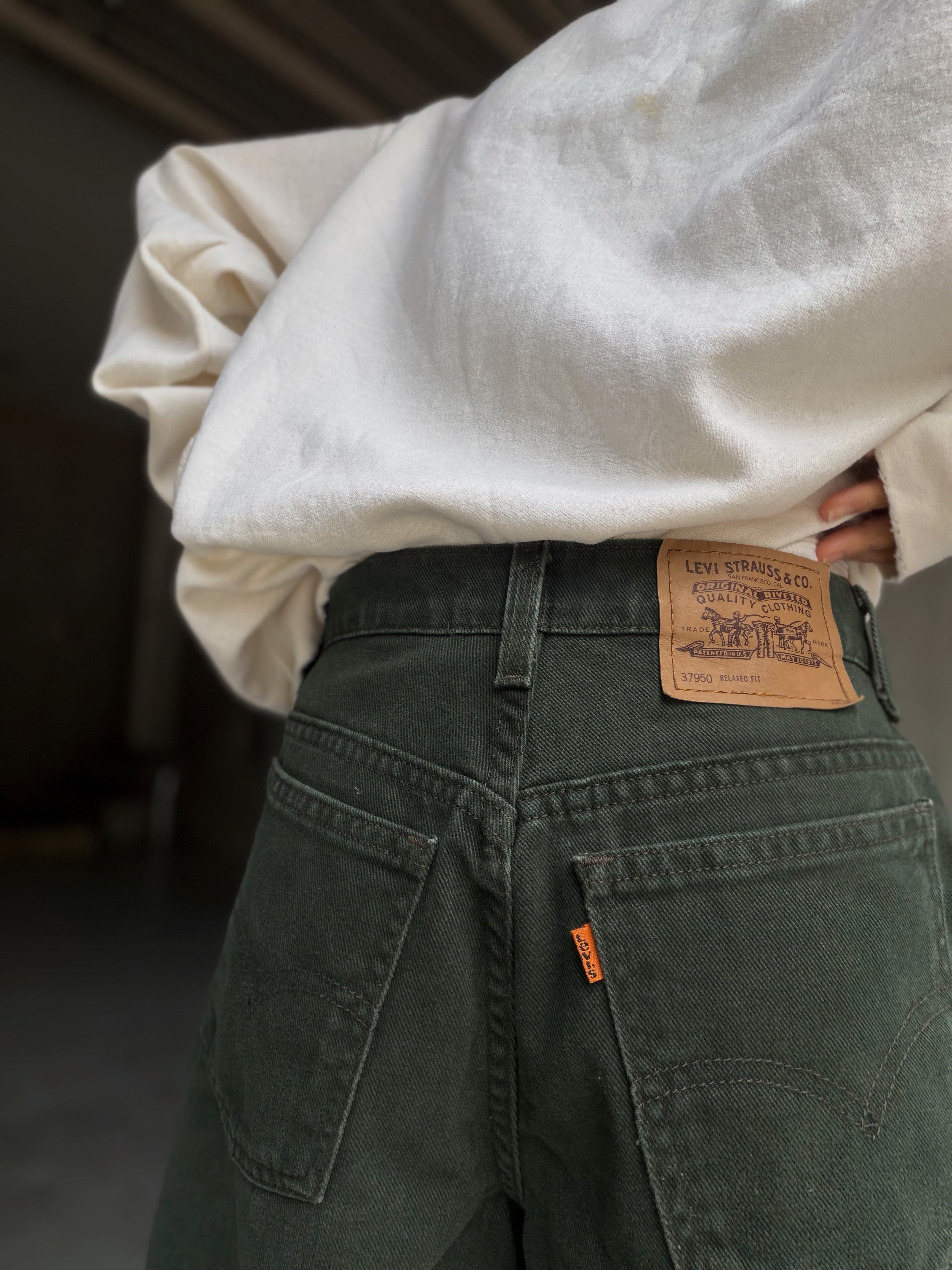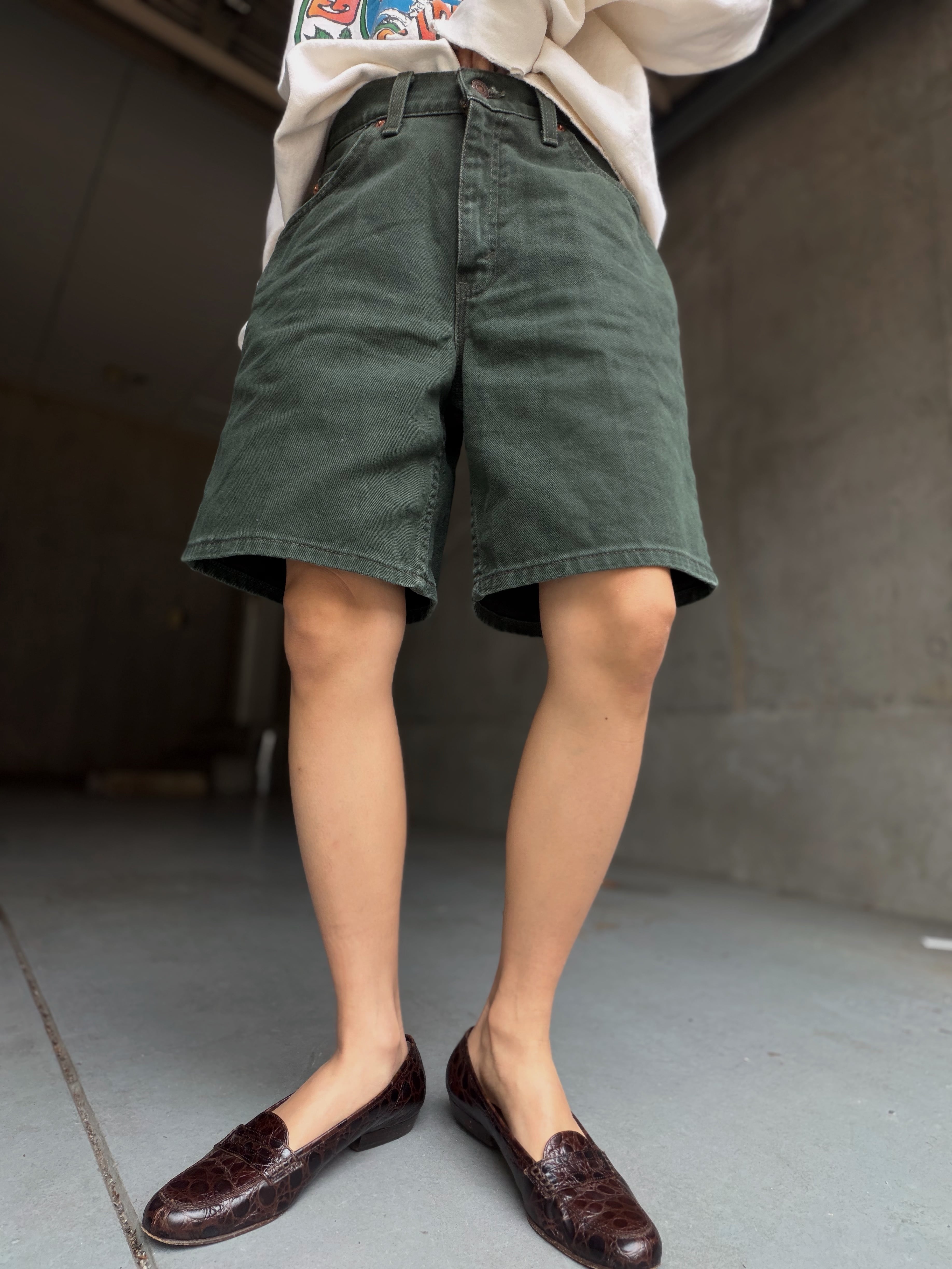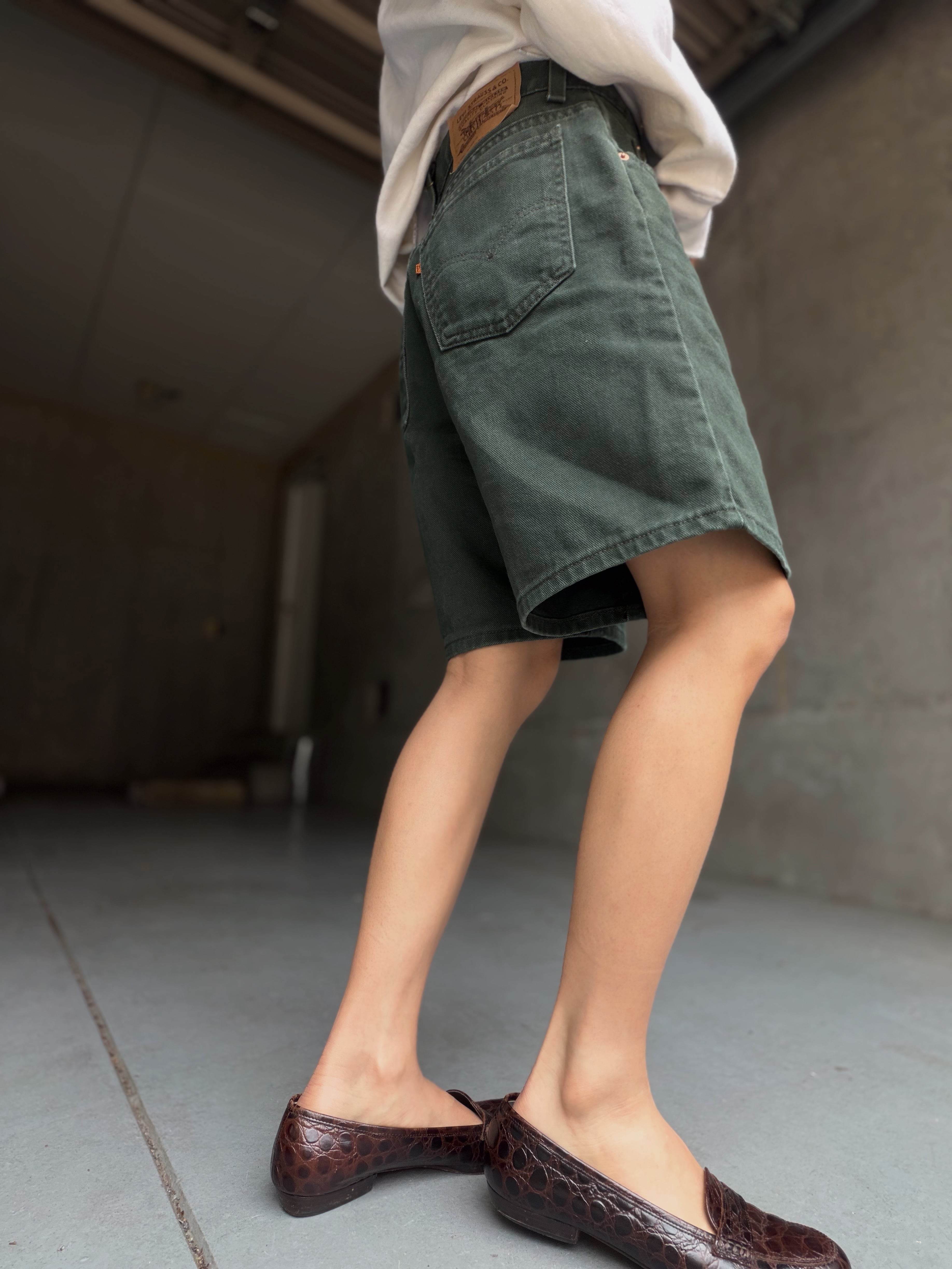 90年代Levi’s 950リラックスフィットの深いグリーンのショーツ。