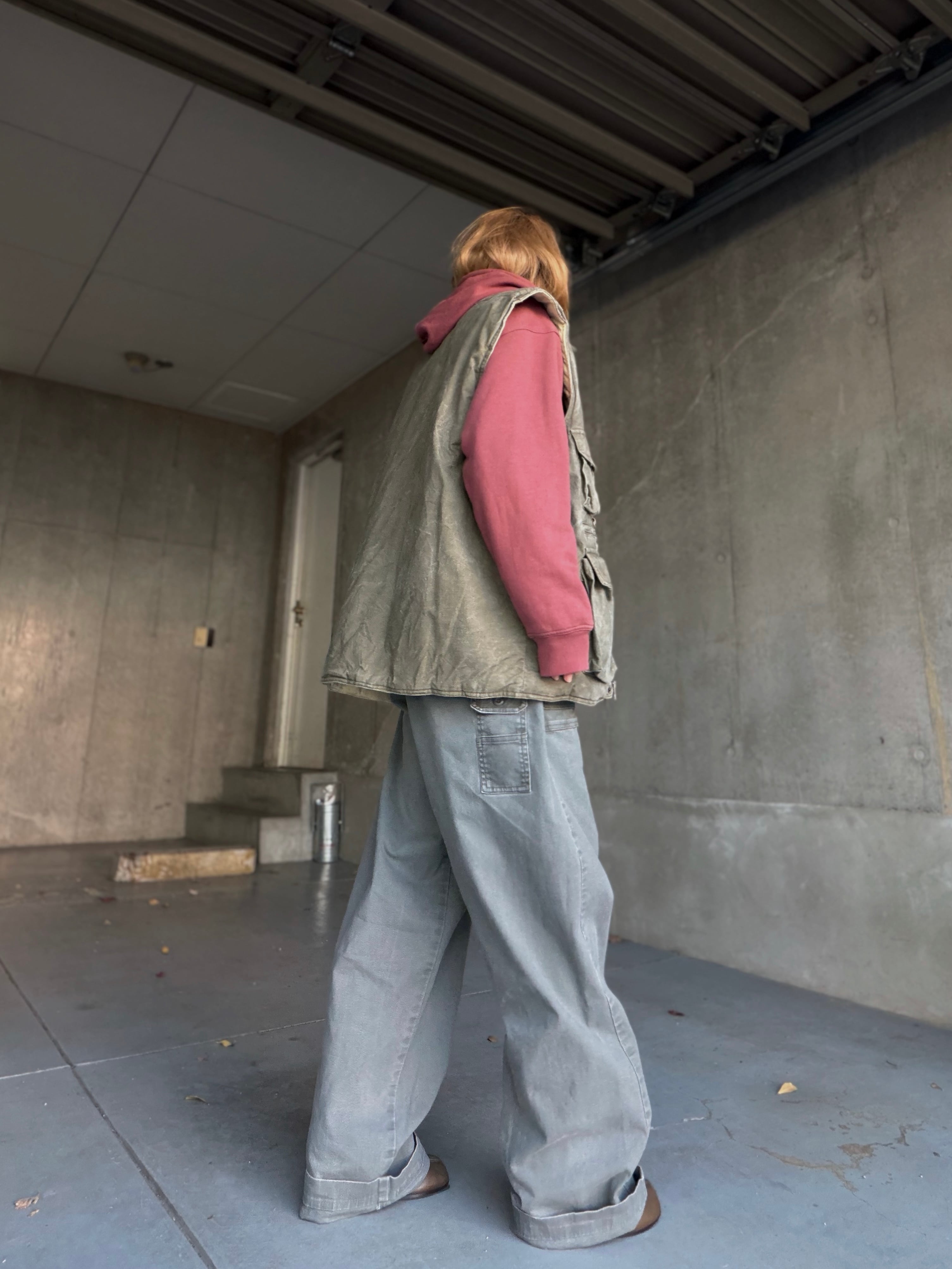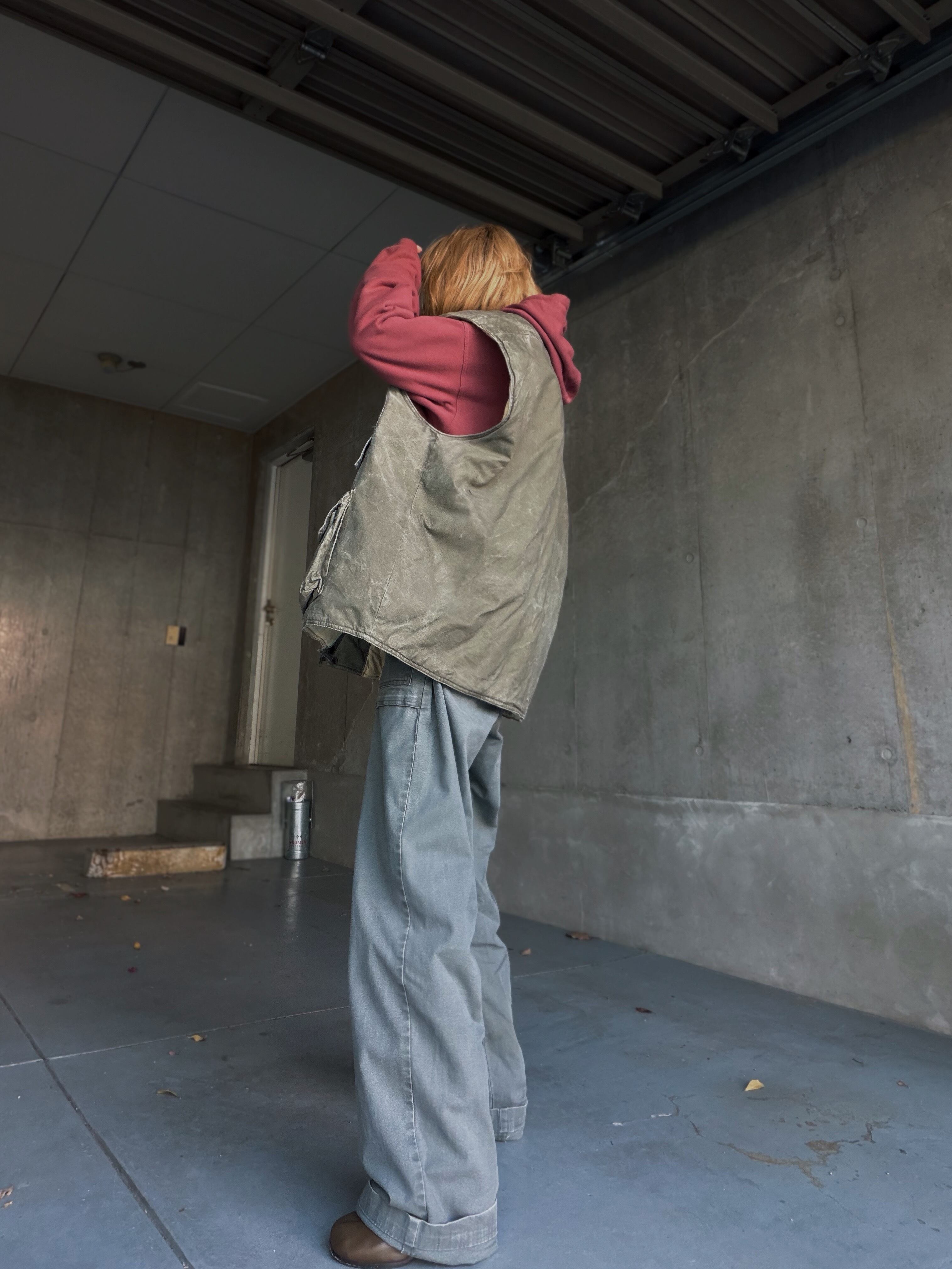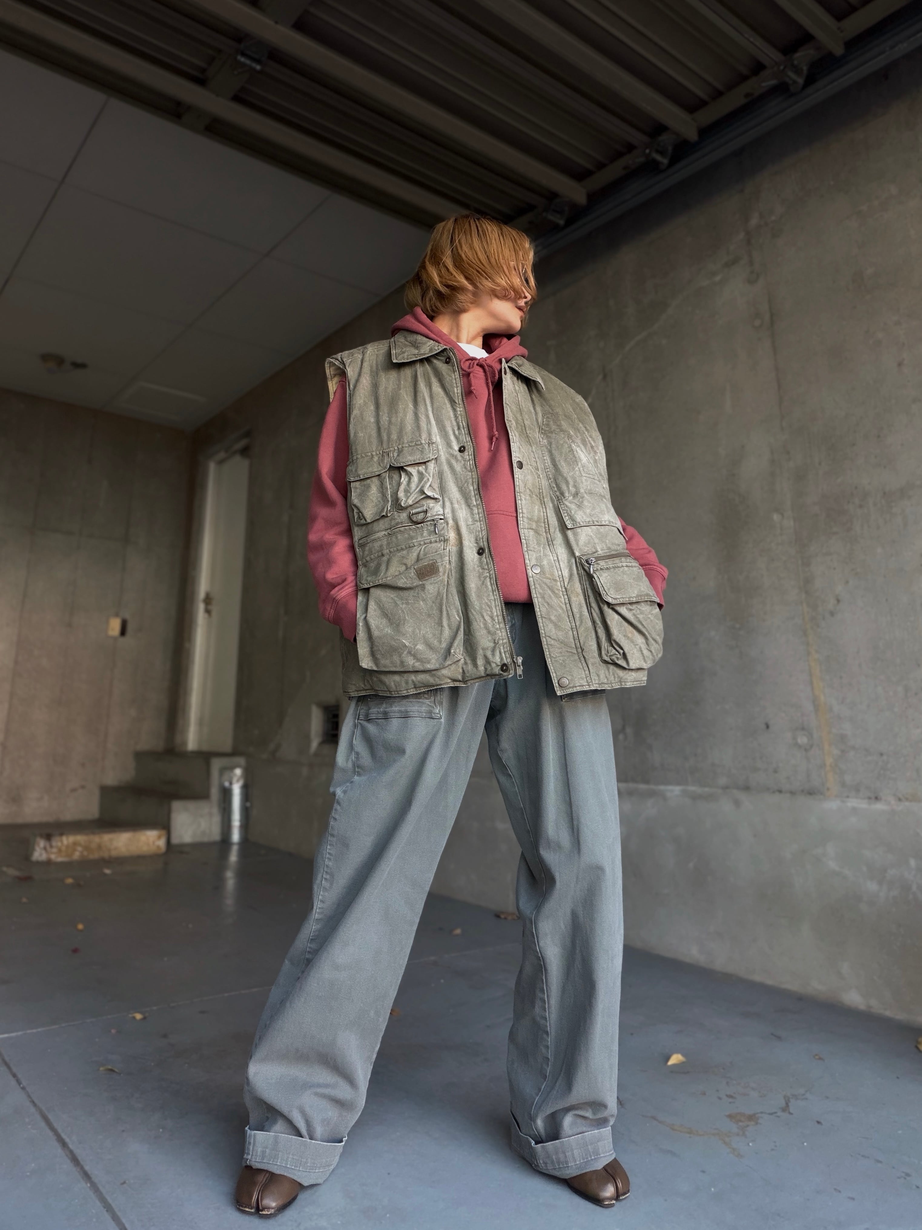 新品では出せない、フェードしたオリーブのトーンとランダムな表情がとても良い雰囲気です。