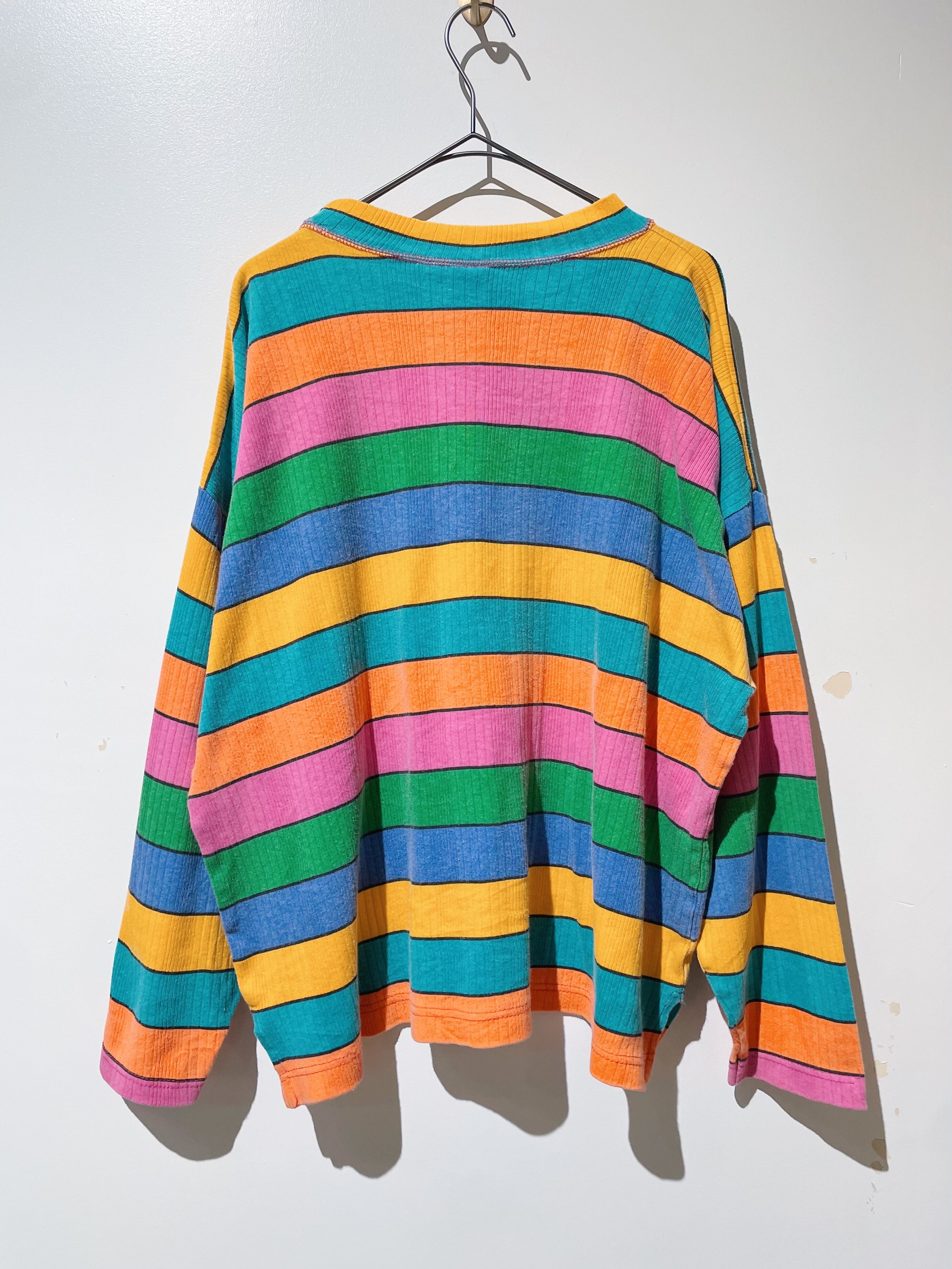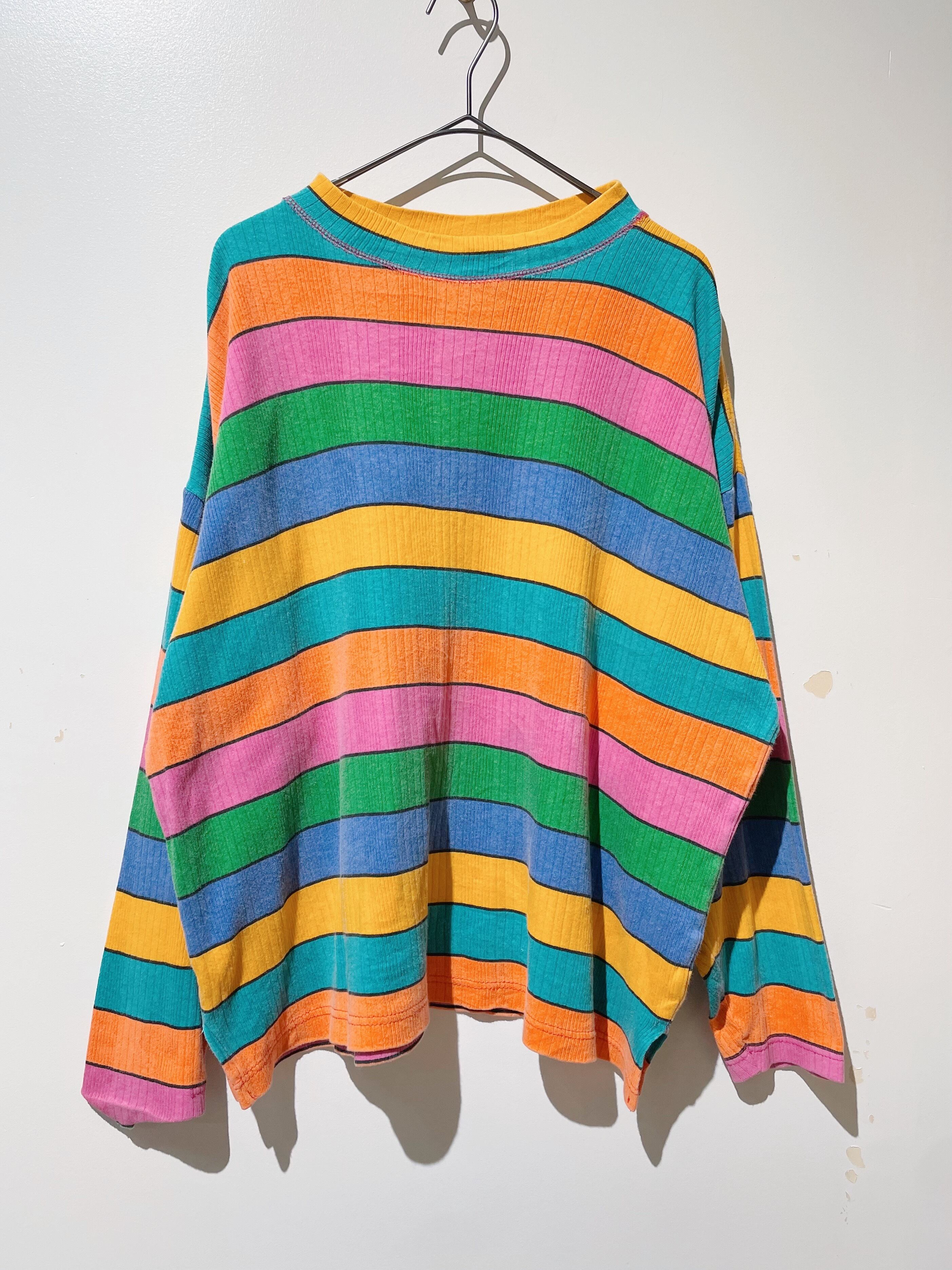 (CS1685)Multi border ribbed long sleeve T-shirts