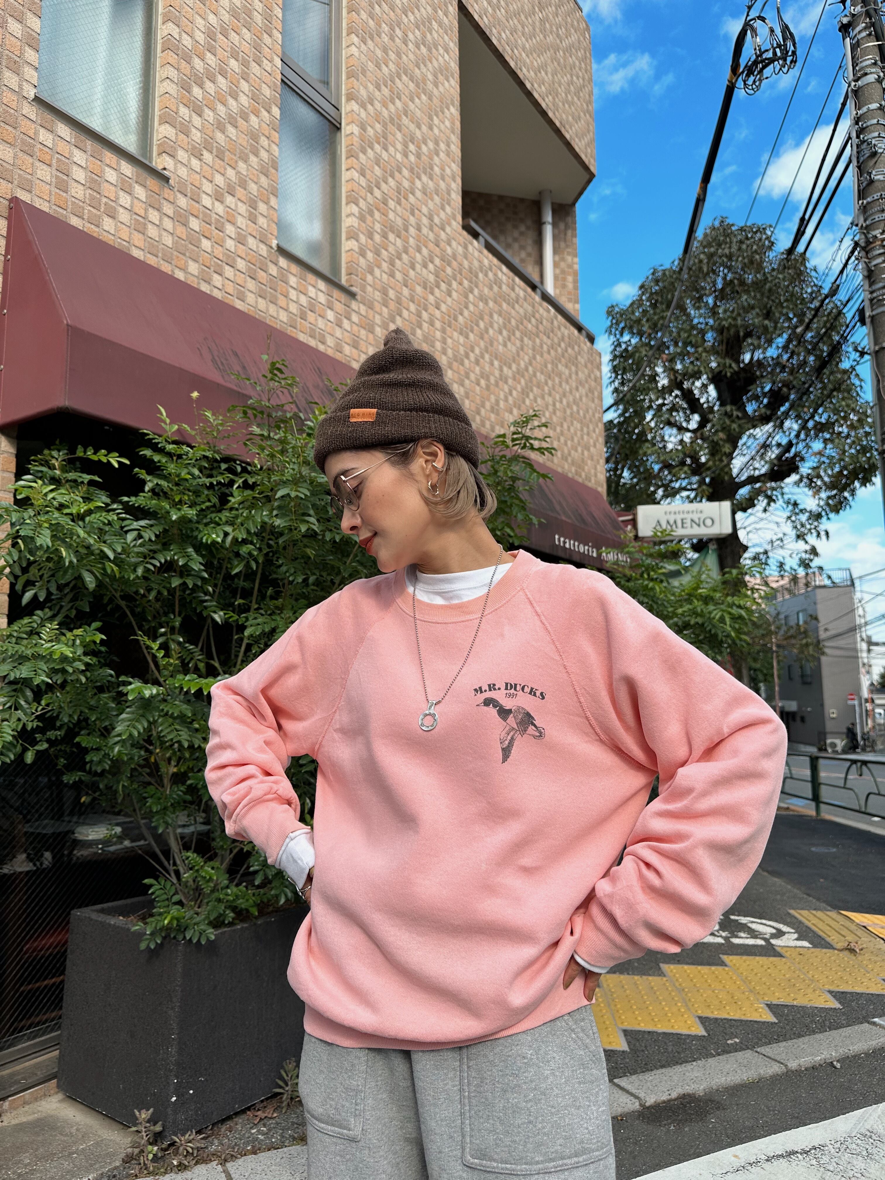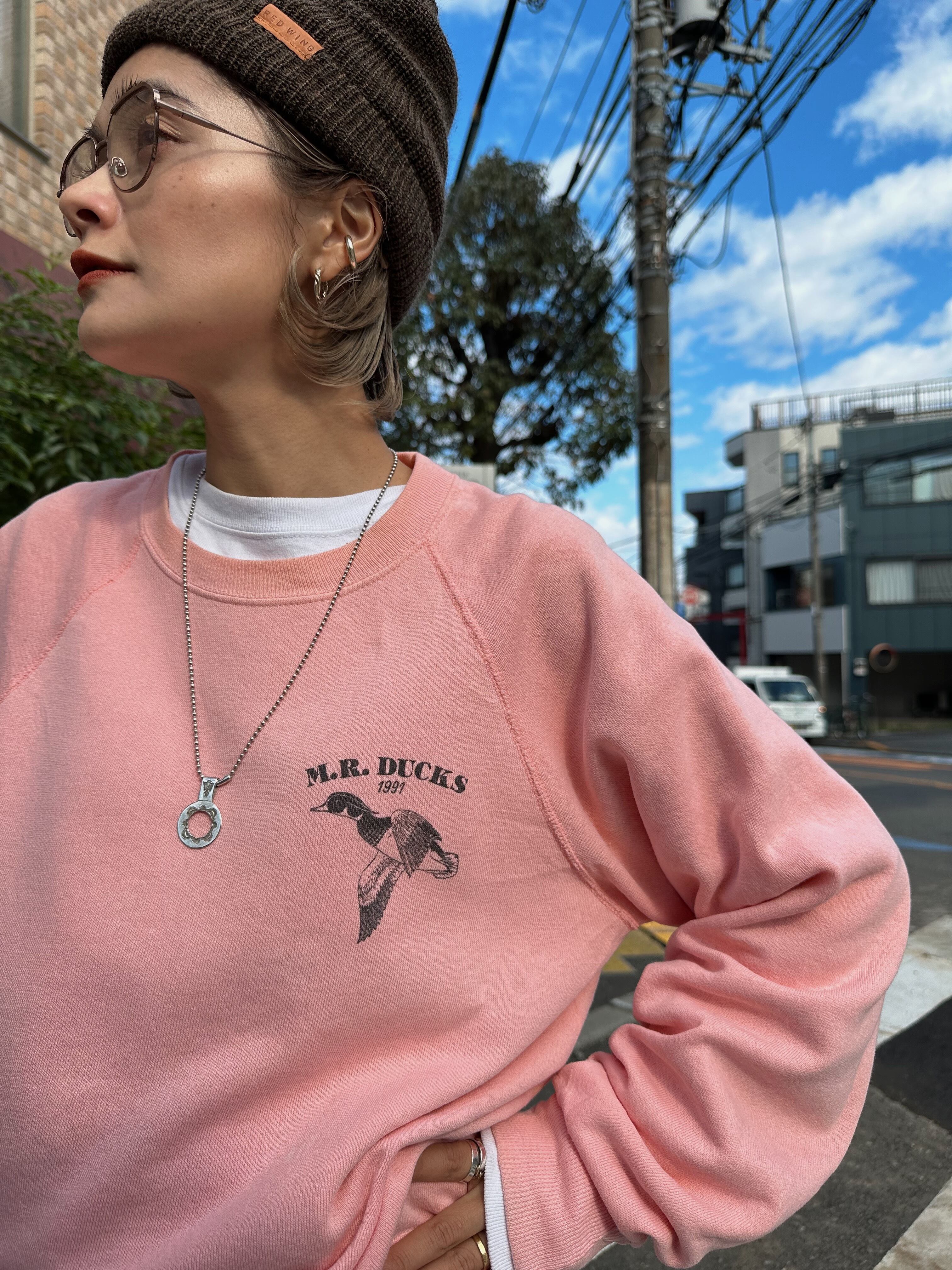 (CS1690)90's Lee M.R.DUCKS printed sweat made in USA (salmon pink)